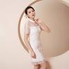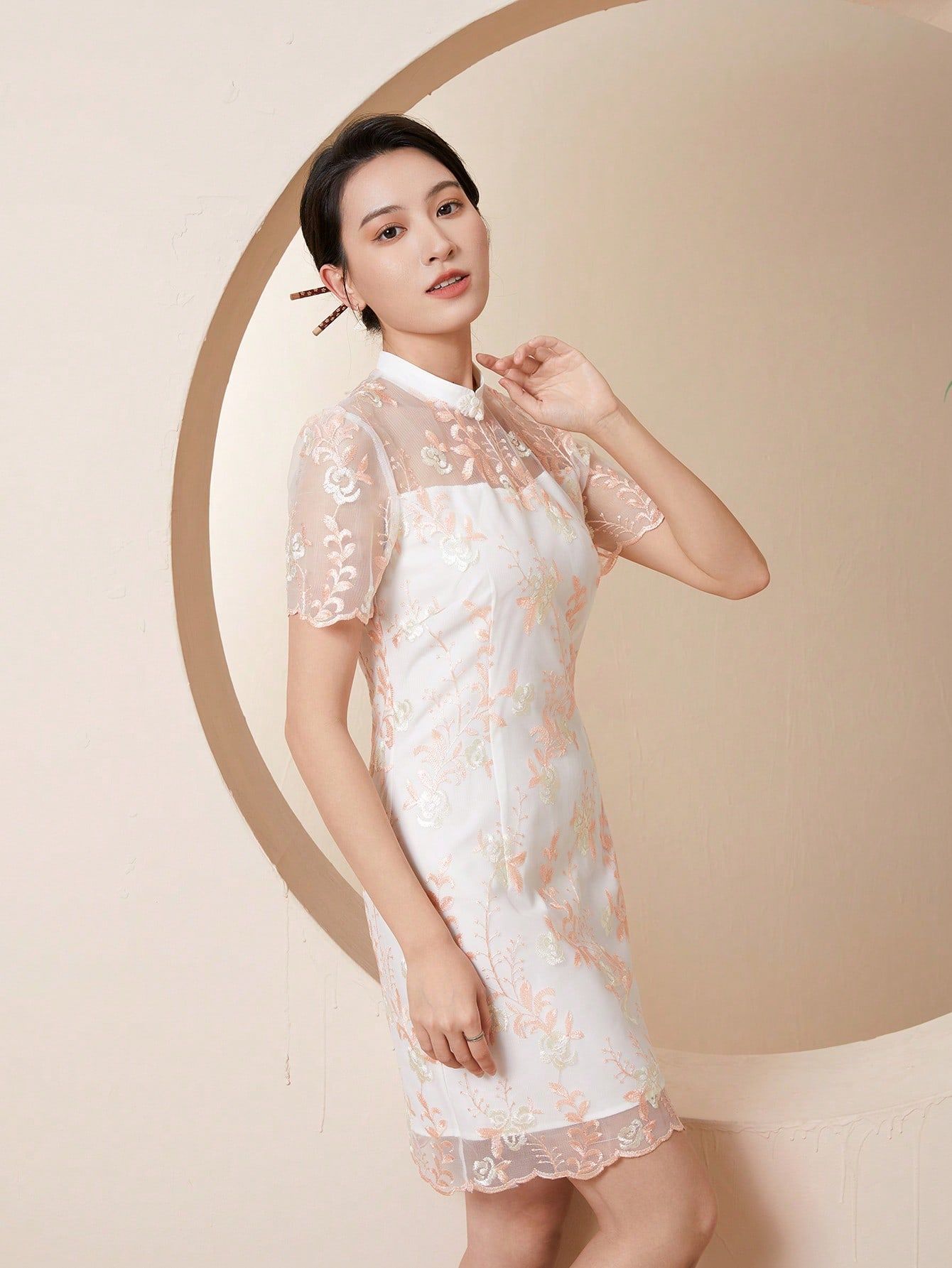 Nuevo Verano Diario Encaje Cheongsam Mejorado Vestido de Estilo Francés para Mujer Falda de Estilo Chino para Niña