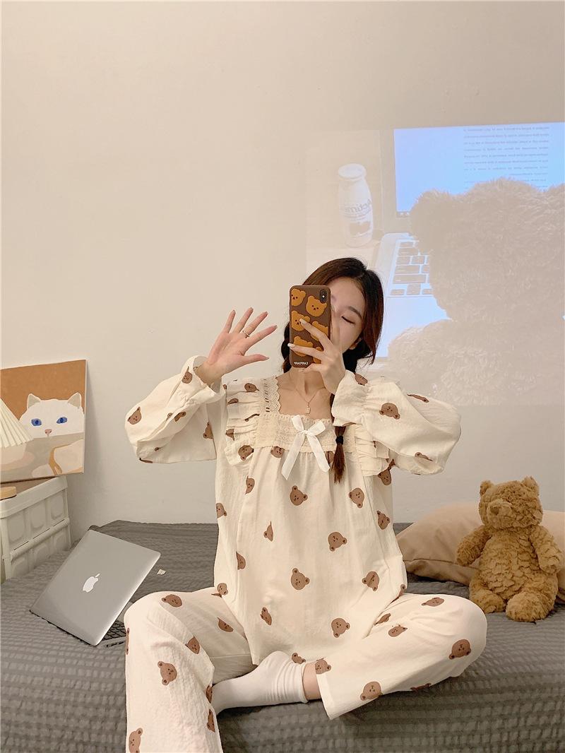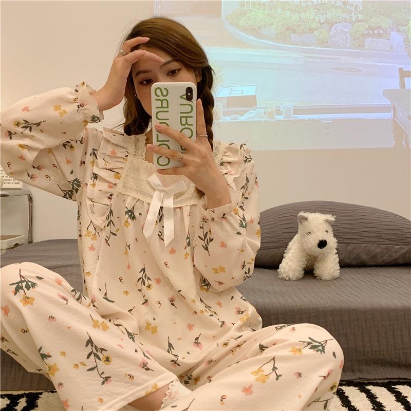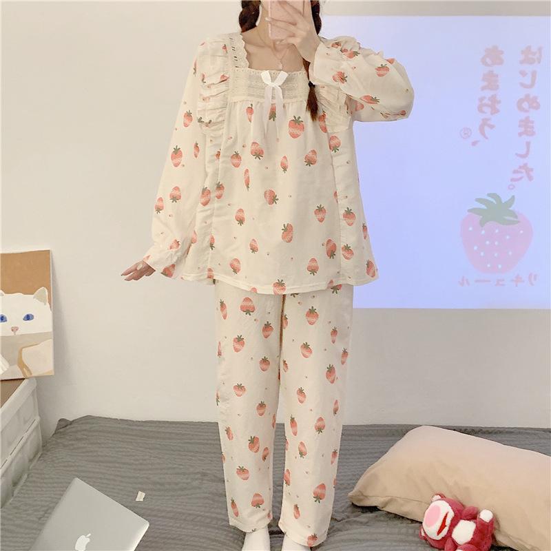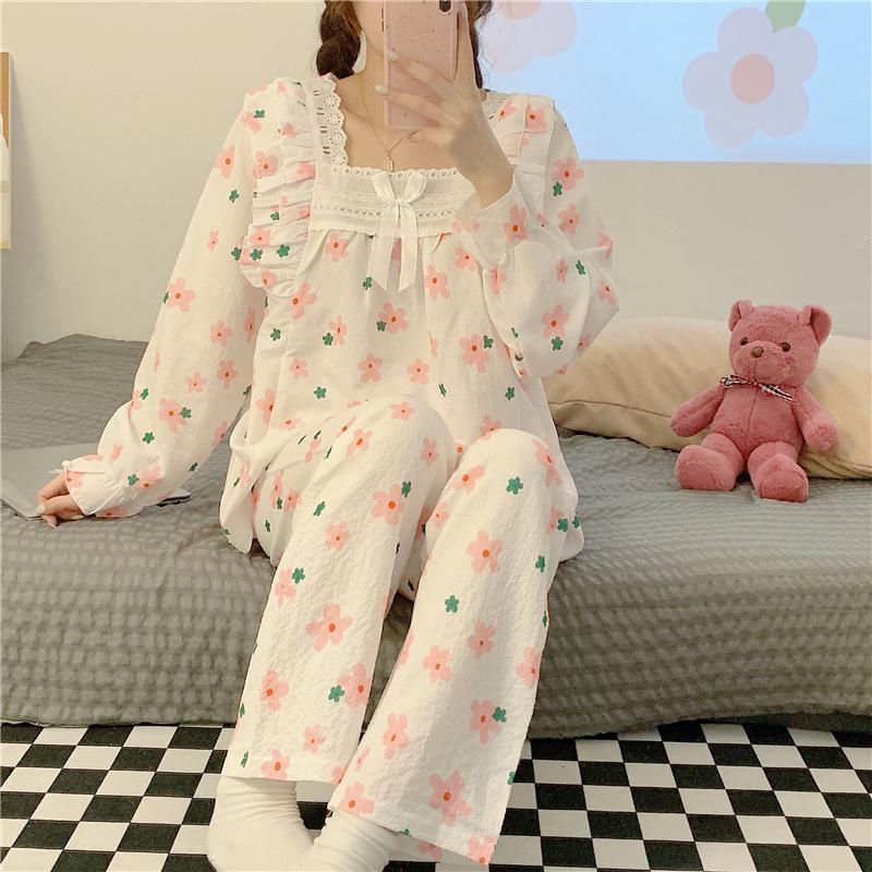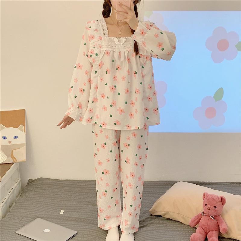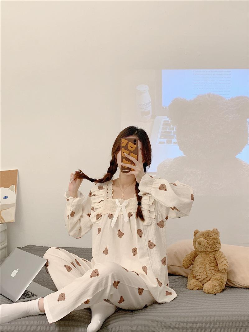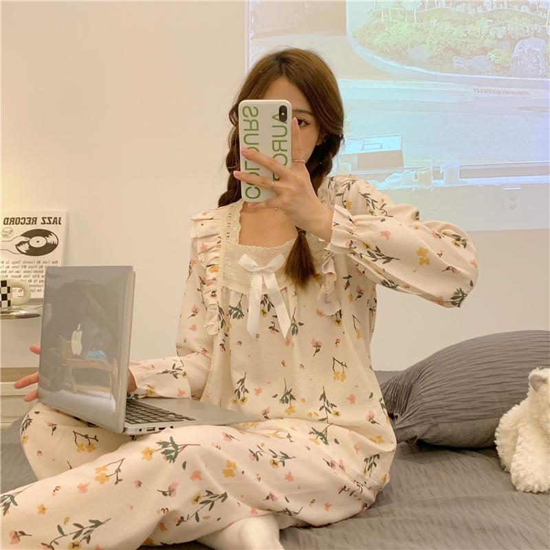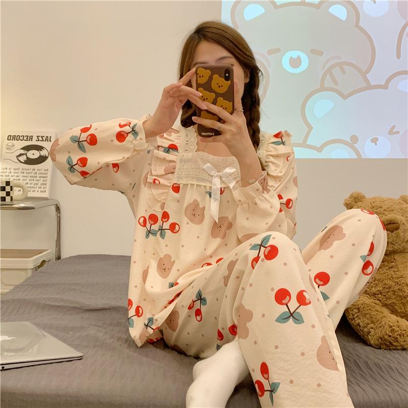 Pijamas a cuadros para mujer, estilo japonés, versión coreana, ropa de casa de manga larga, ropa para exteriores, venta al por mayor transfronteriza.