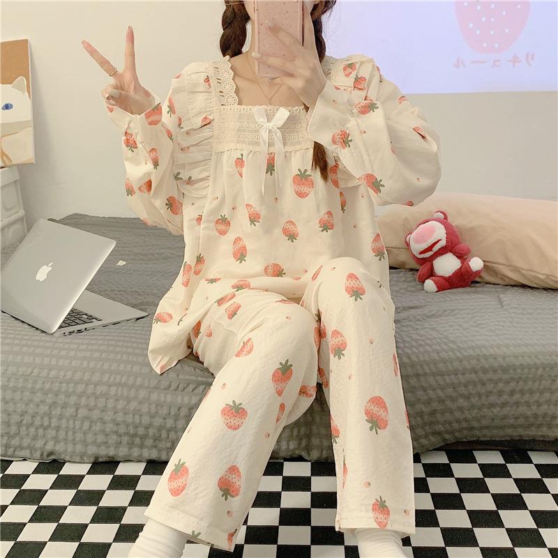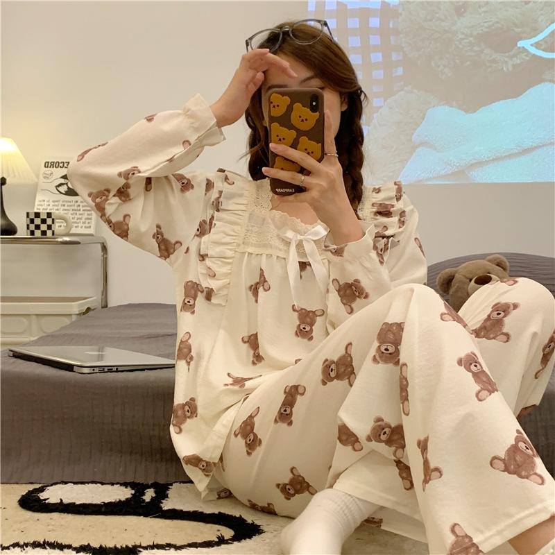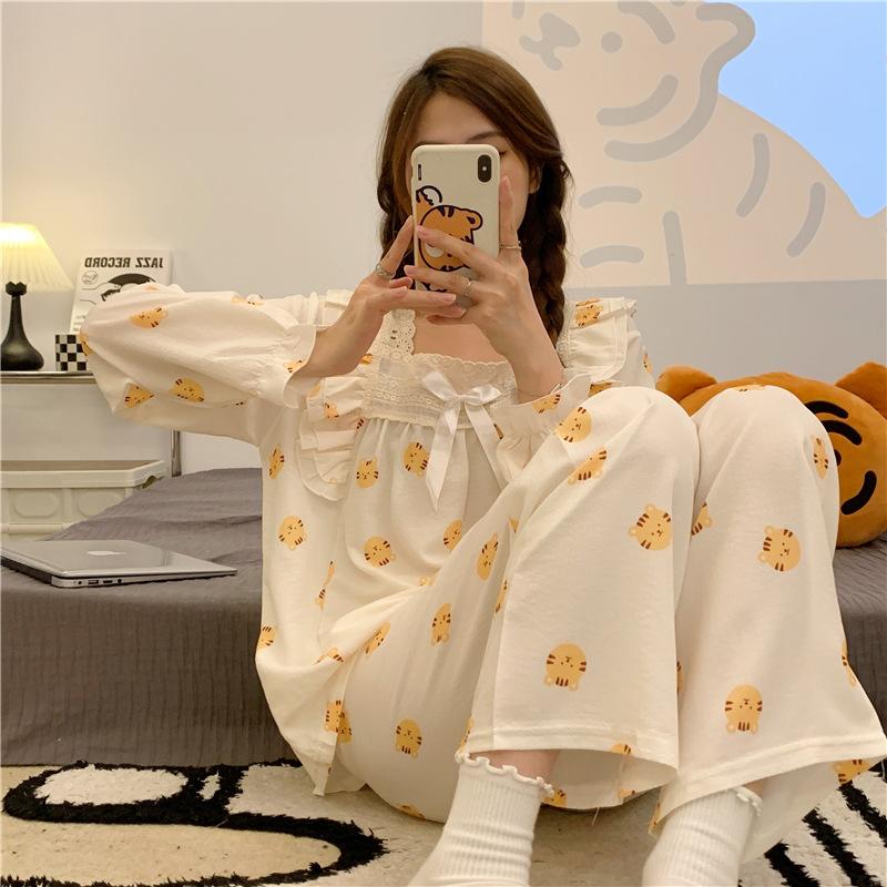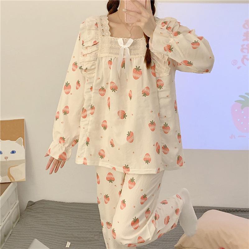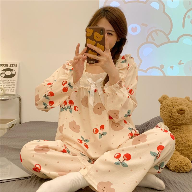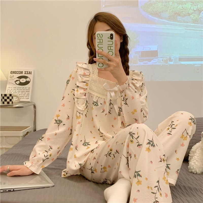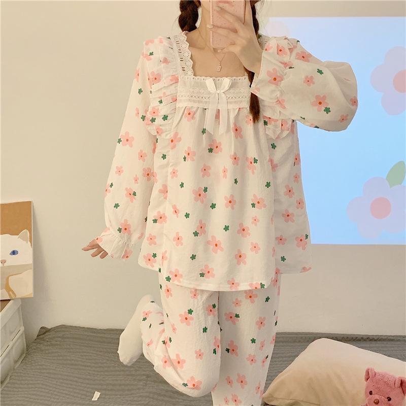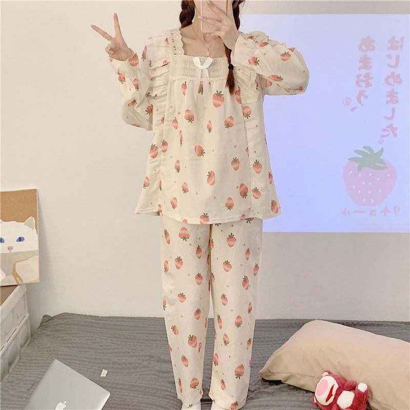 Pijamas a cuadros para mujer, estilo japonés, versión coreana, ropa de casa de manga larga, ropa para exteriores, venta al por mayor transfronteriza.