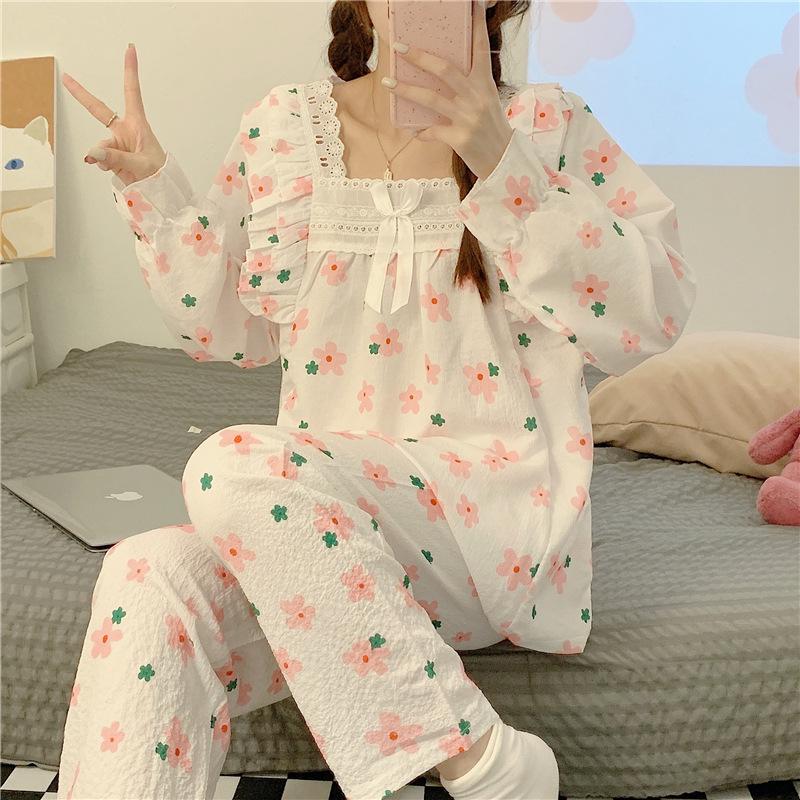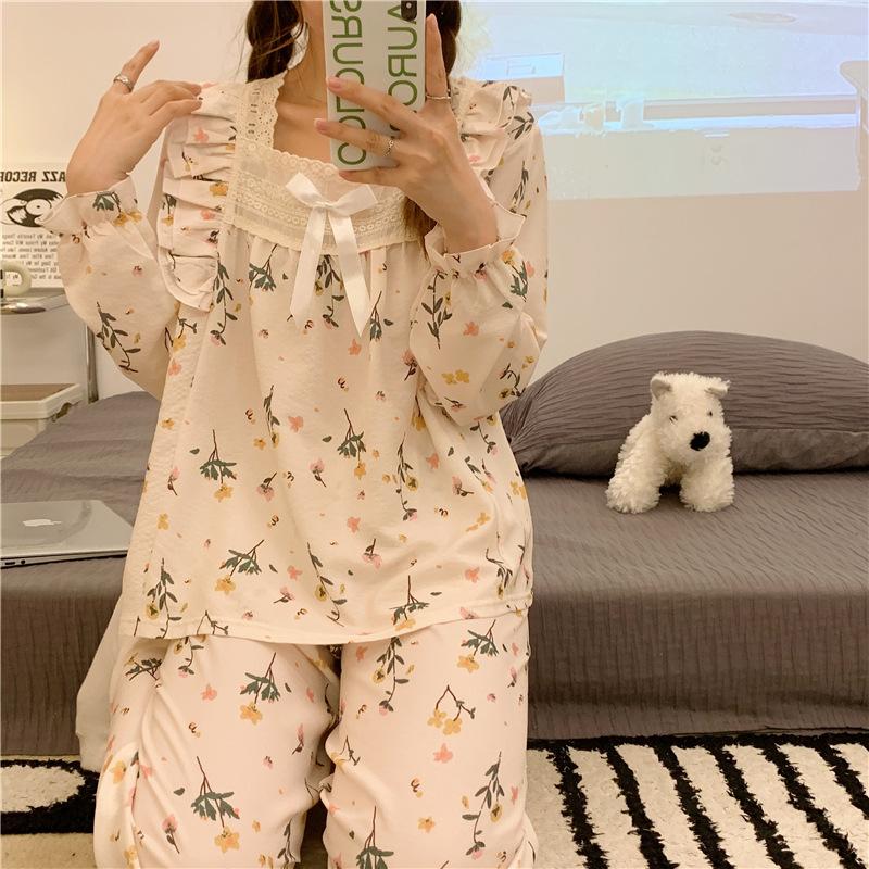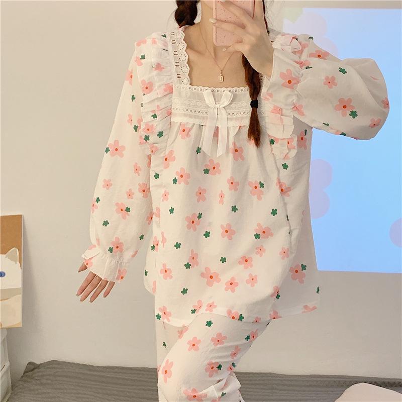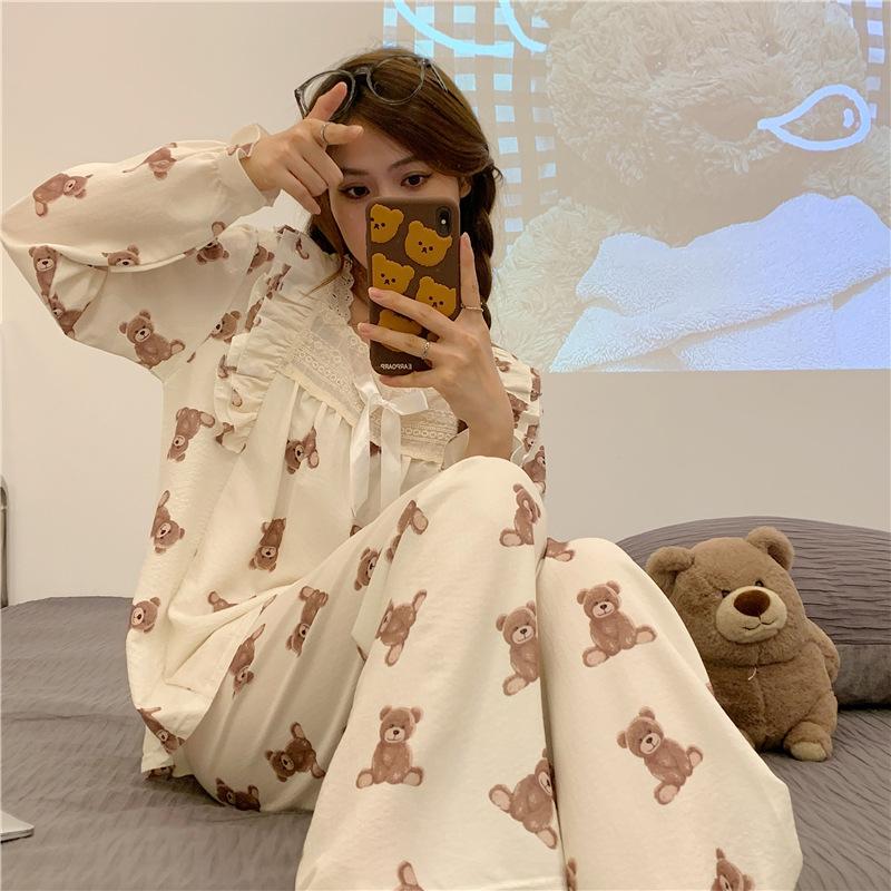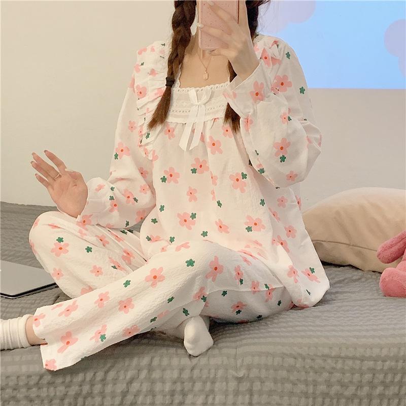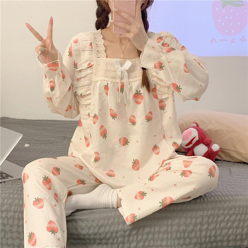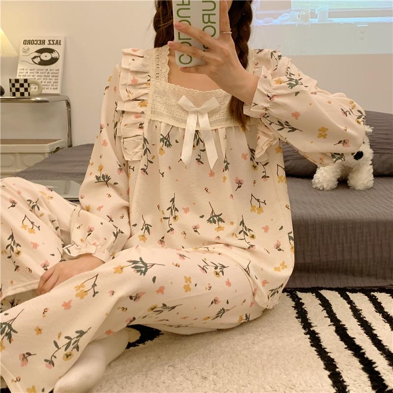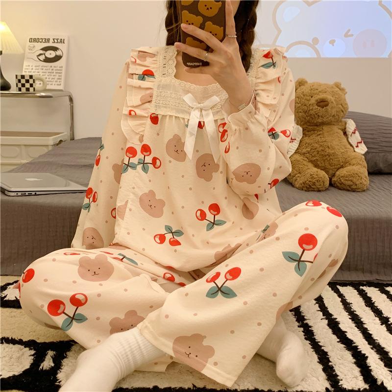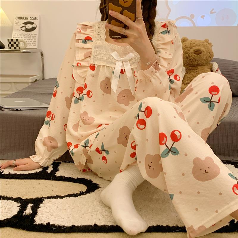 Pijamas a cuadros para mujer, estilo japonés, versión coreana, ropa de casa de manga larga, ropa para exteriores, venta al por mayor transfronteriza.
