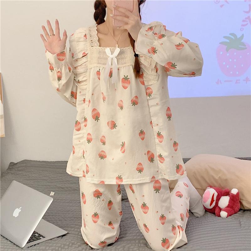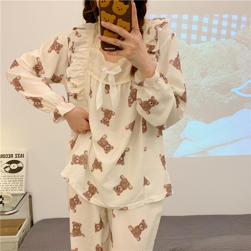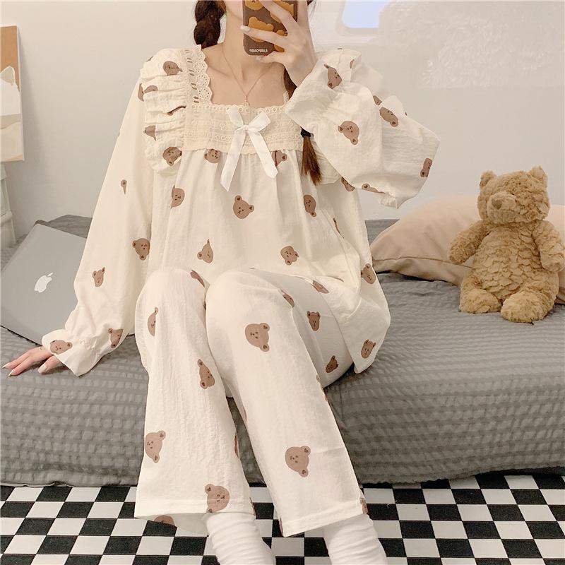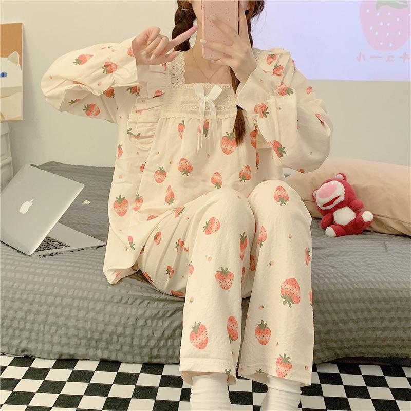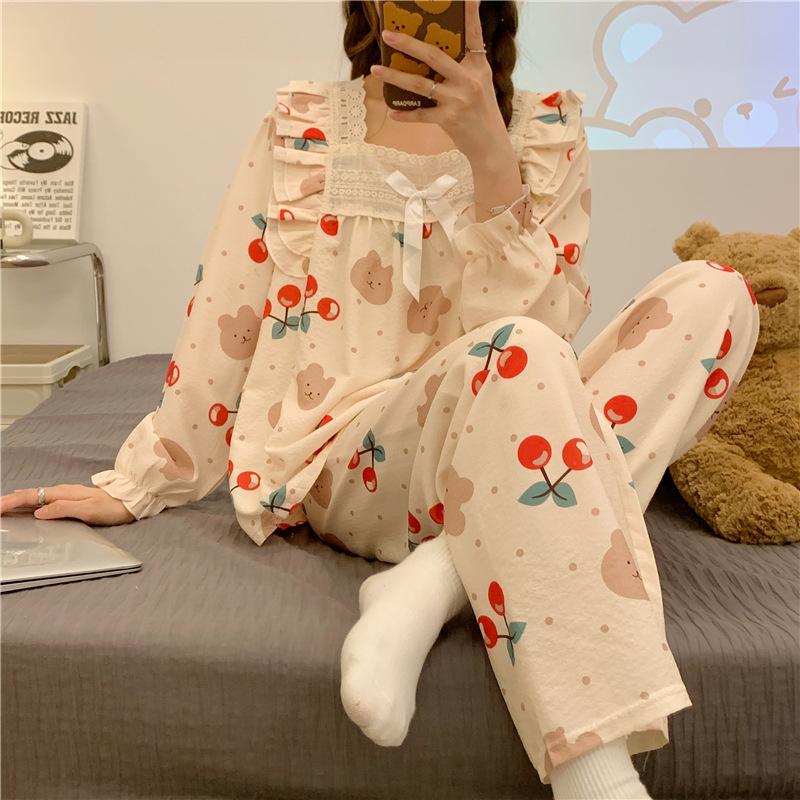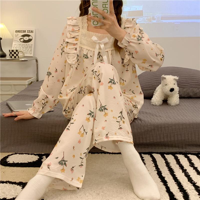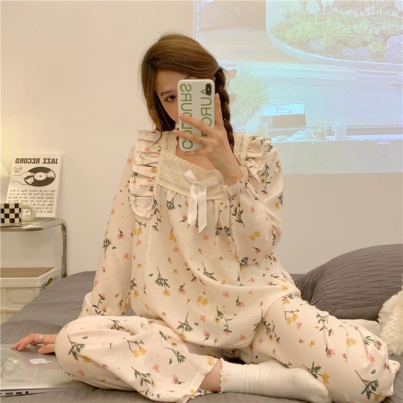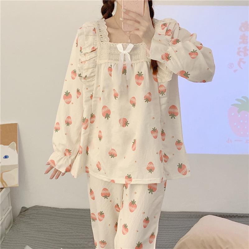 Pijamas a cuadros para mujer, estilo japonés, versión coreana, ropa de casa de manga larga, ropa para exteriores, venta al por mayor transfronteriza.