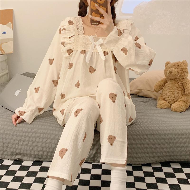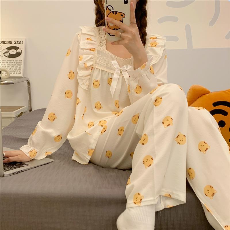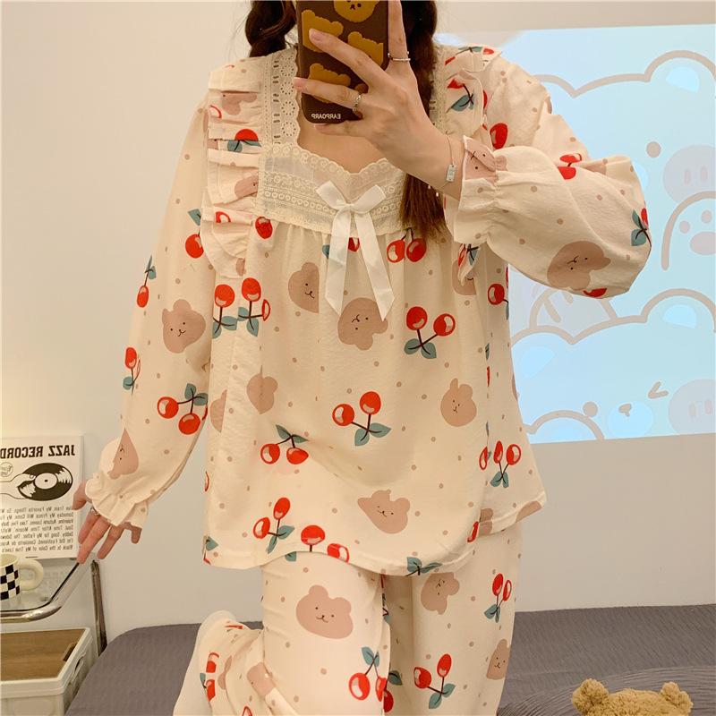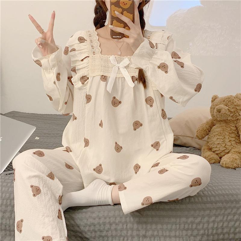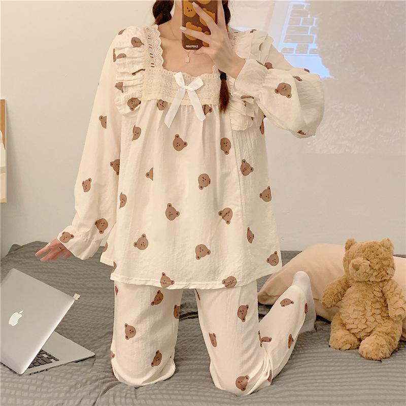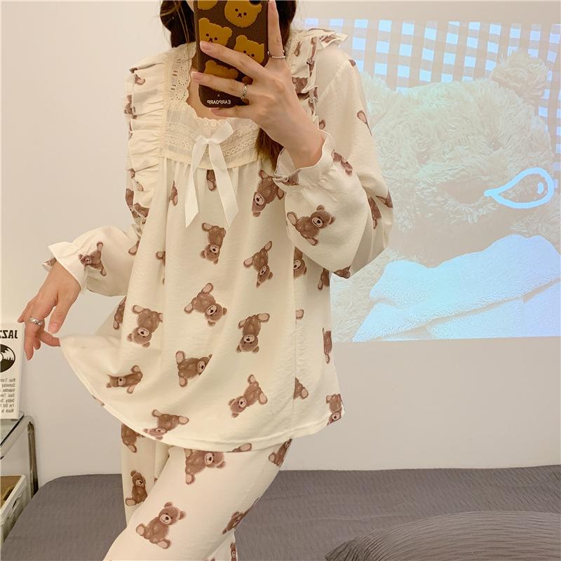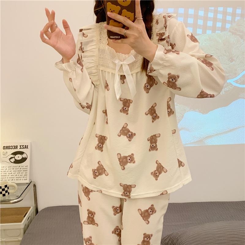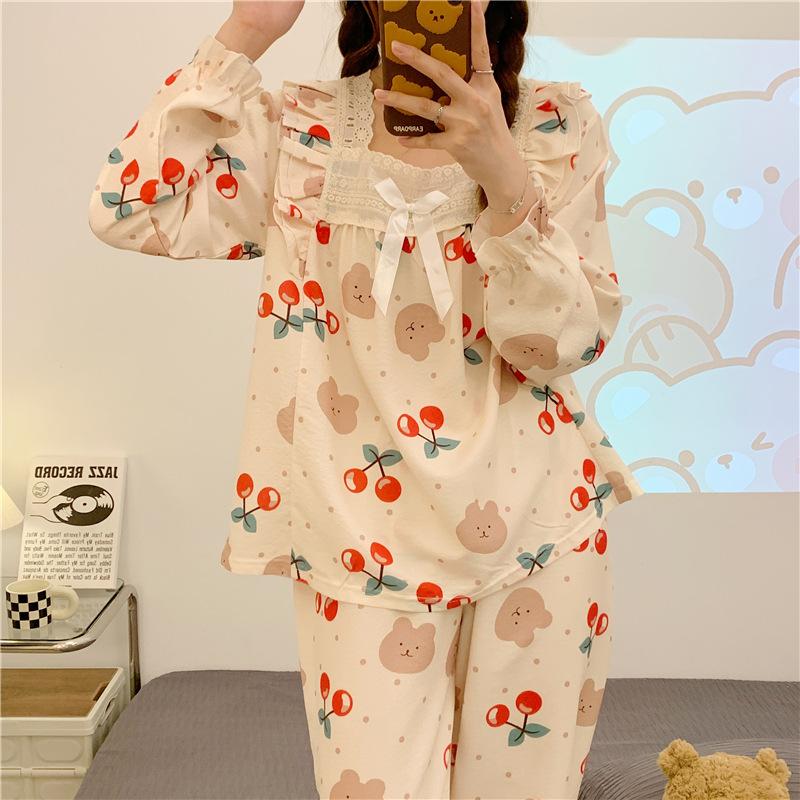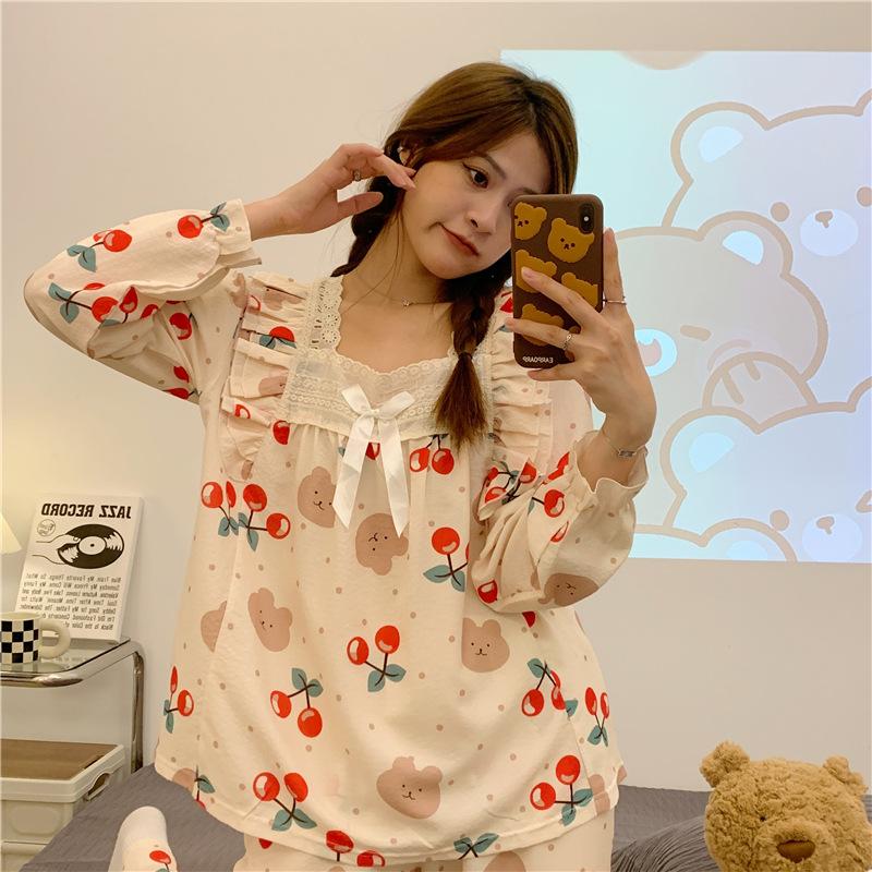 Pijamas a cuadros para mujer, estilo japonés, versión coreana, ropa de casa de manga larga, ropa para exteriores, venta al por mayor transfronteriza.