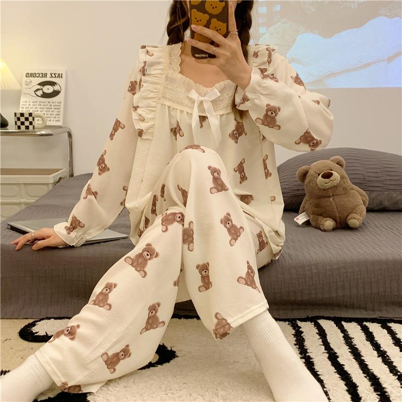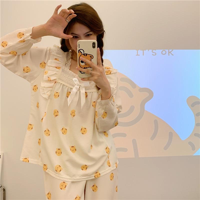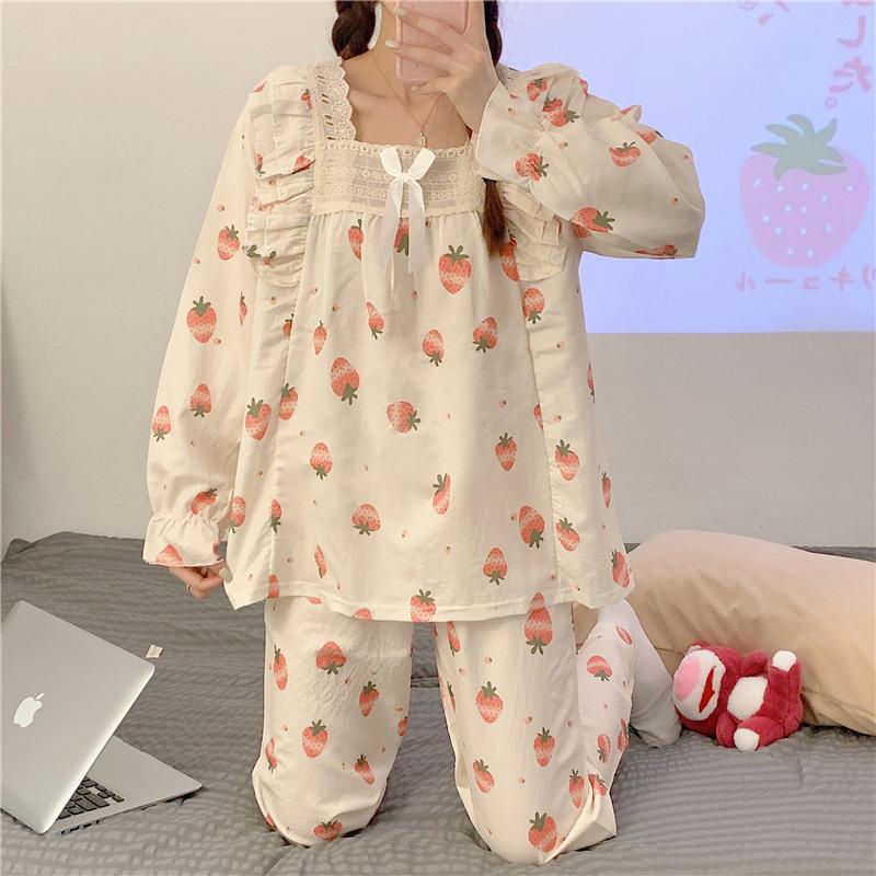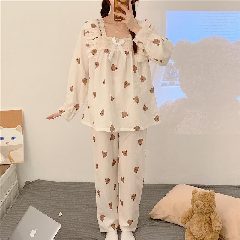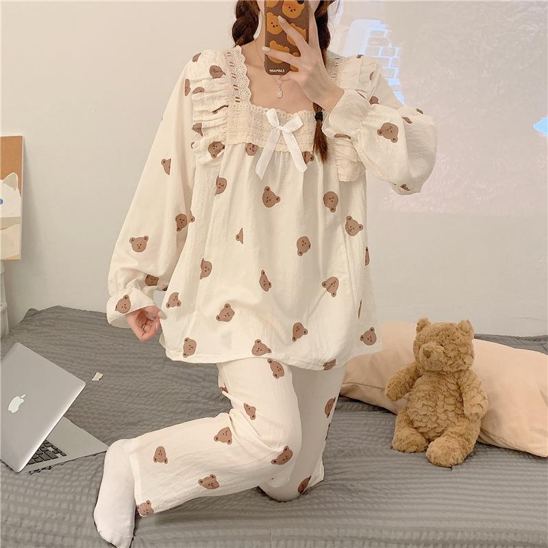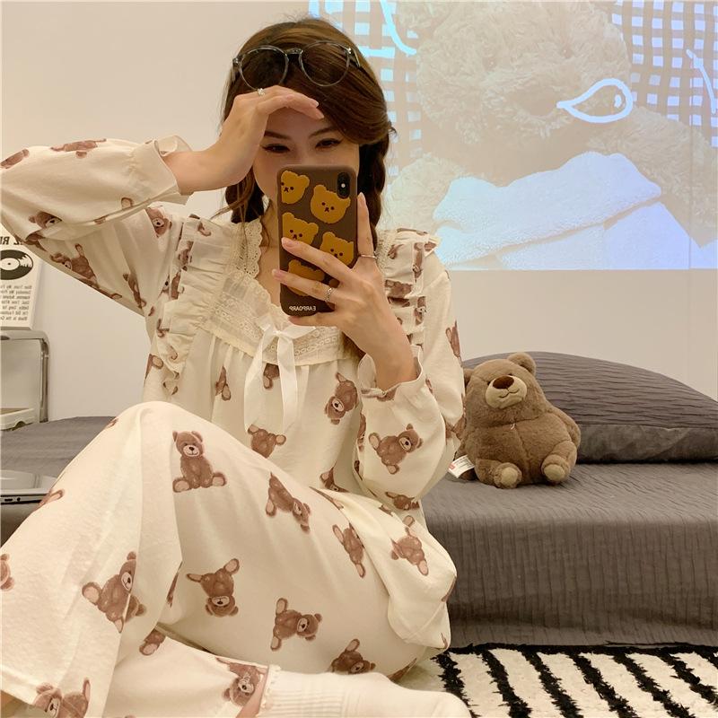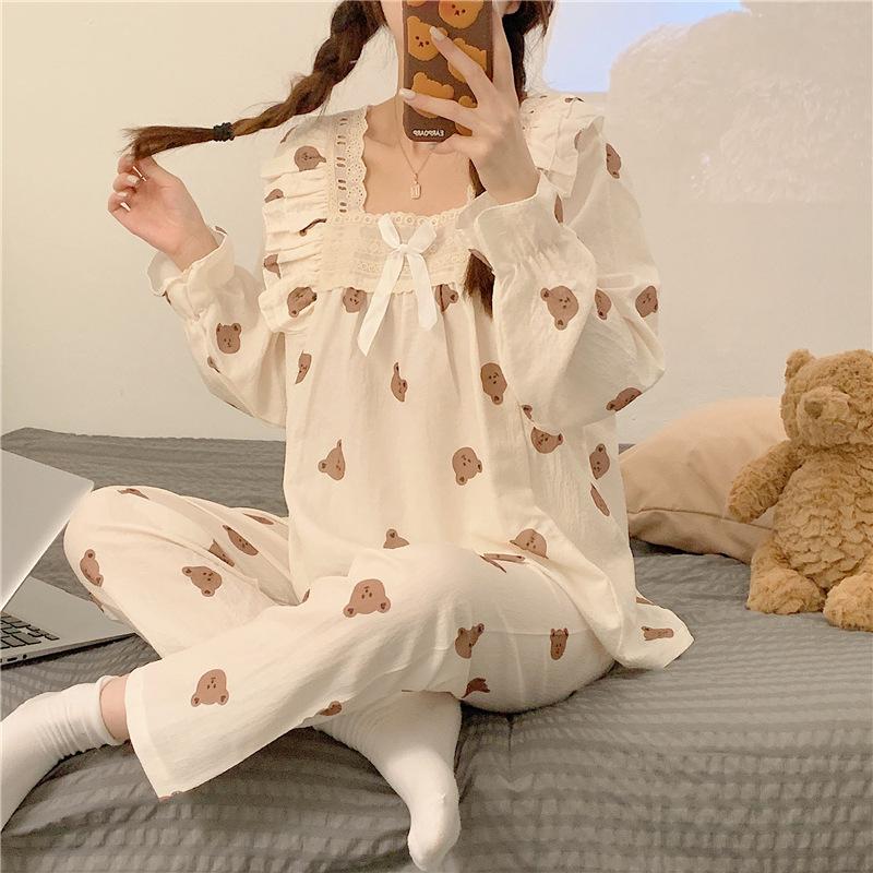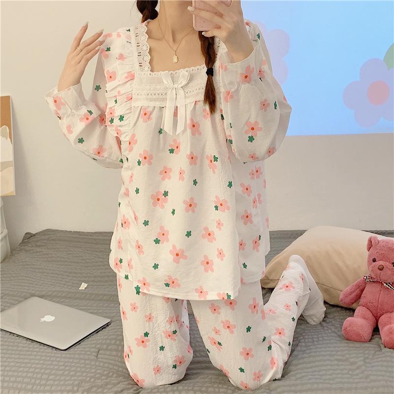 Pijamas a cuadros para mujer, estilo japonés, versión coreana, ropa de casa de manga larga, ropa para exteriores, venta al por mayor transfronteriza.