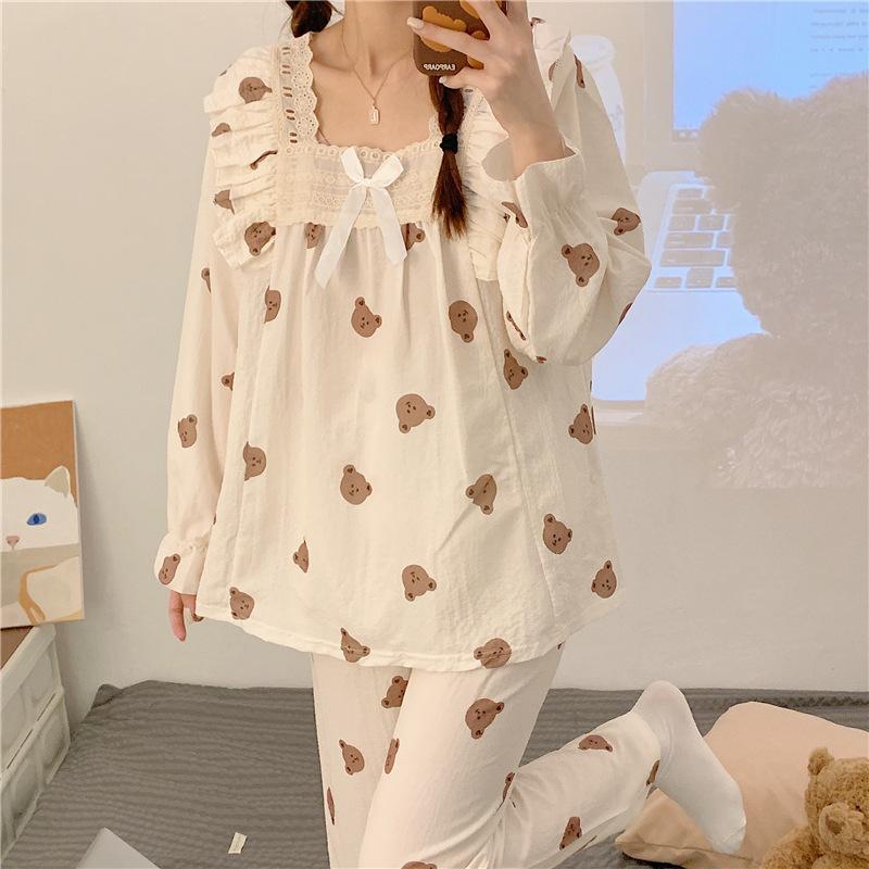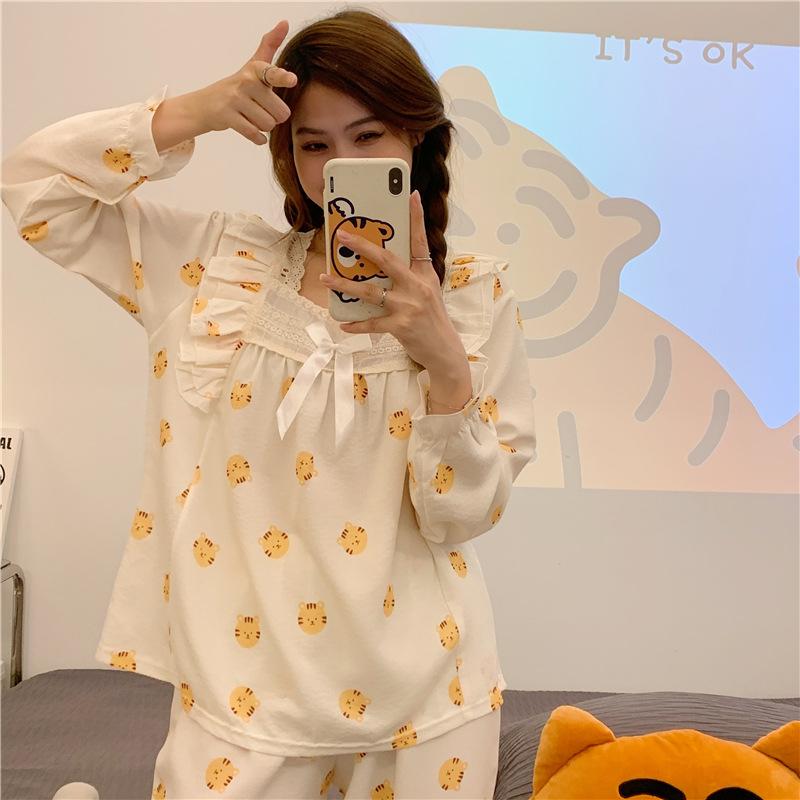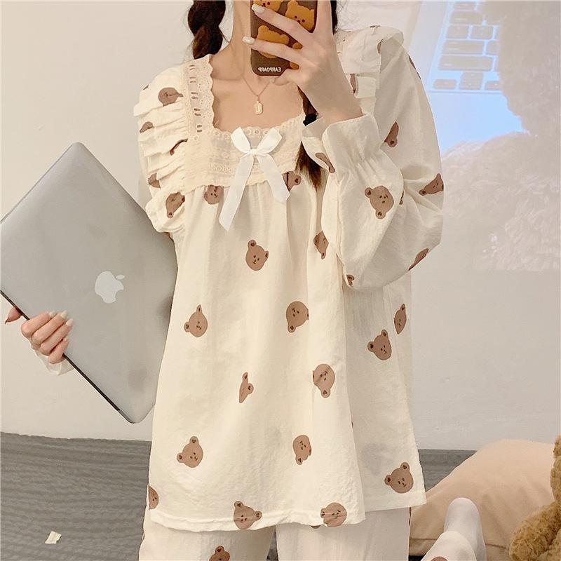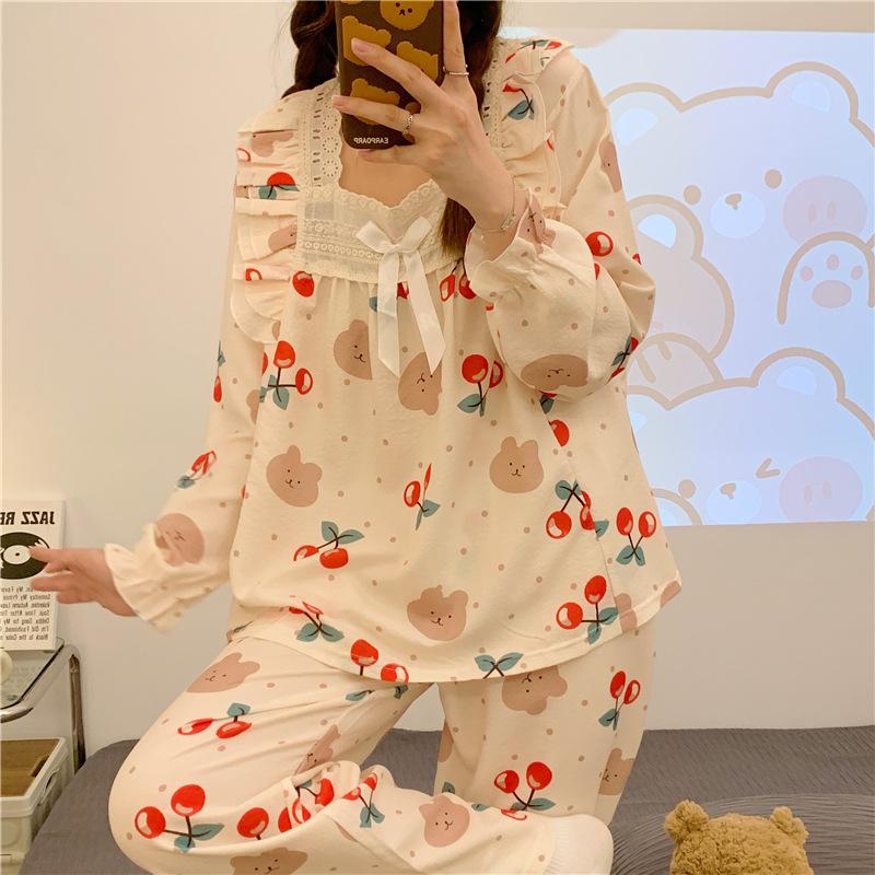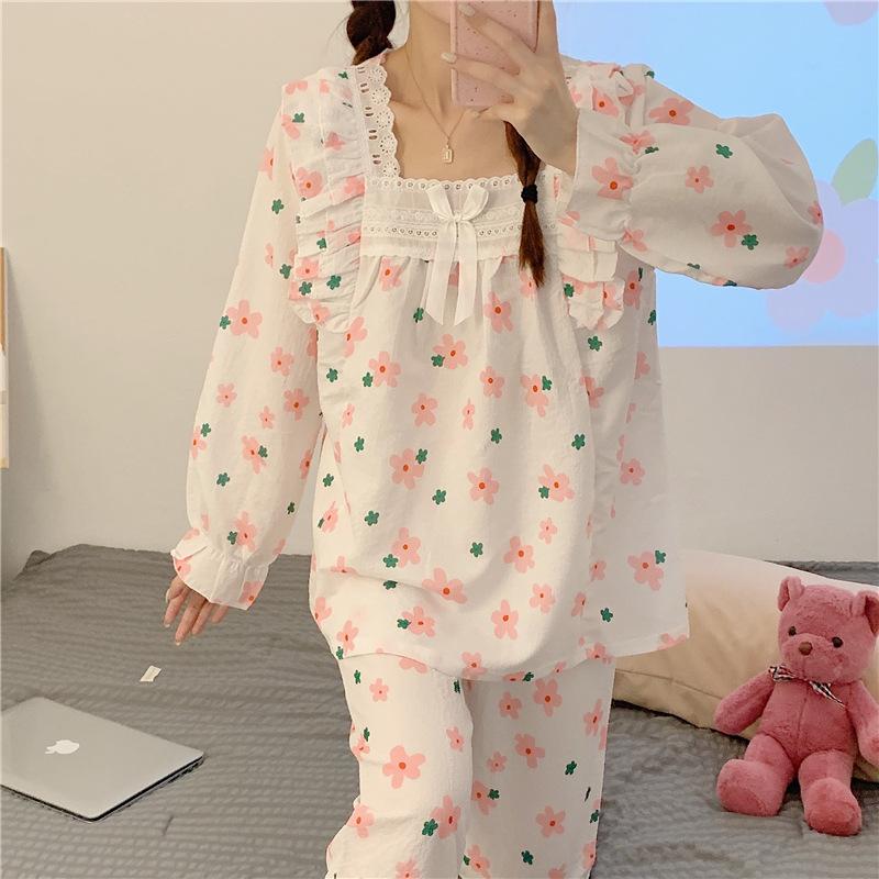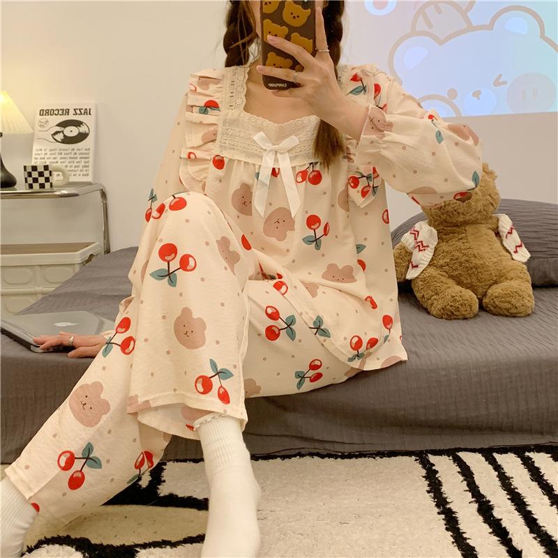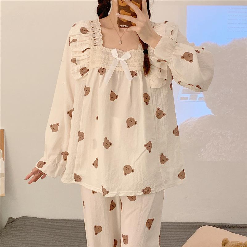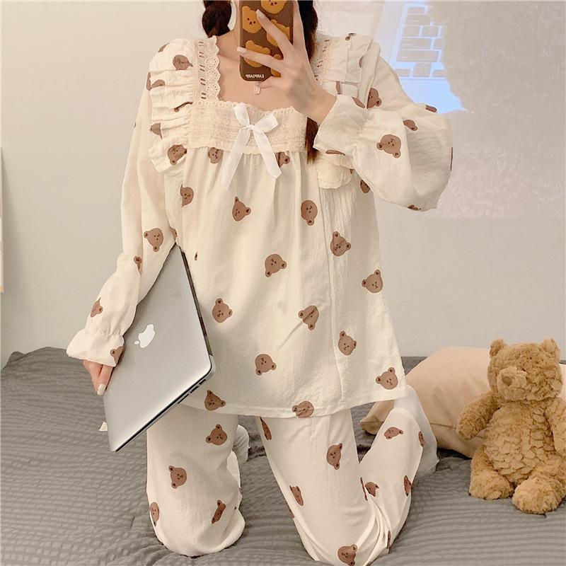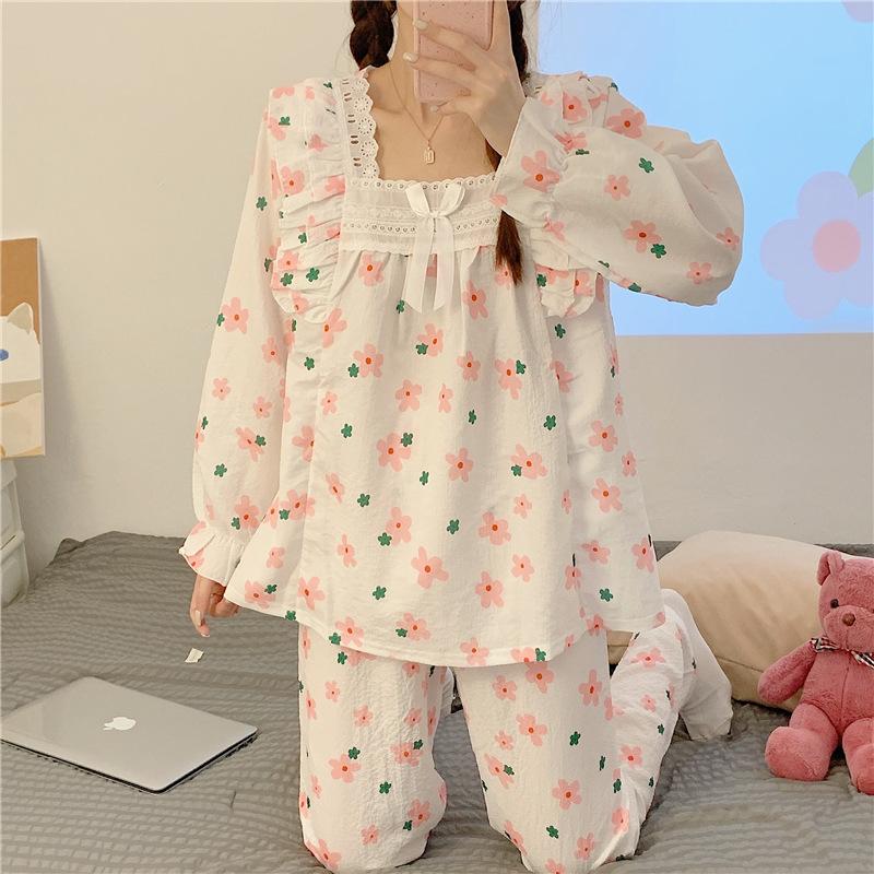 Pijamas a cuadros para mujer, estilo japonés, versión coreana, ropa de casa de manga larga, ropa para exteriores, venta al por mayor transfronteriza.