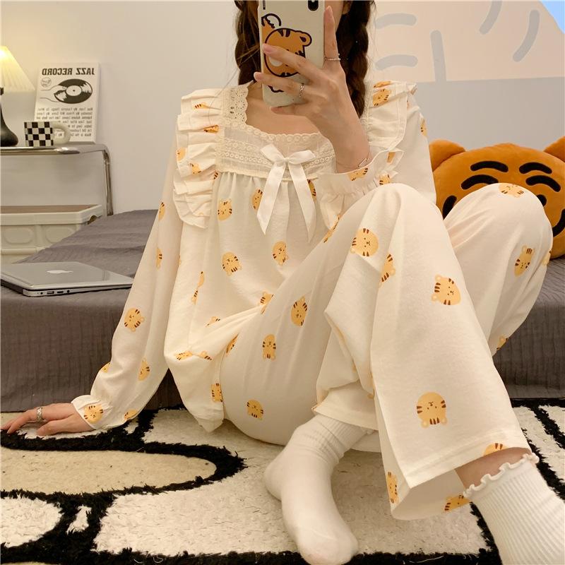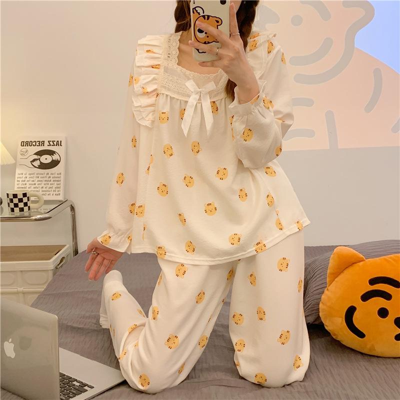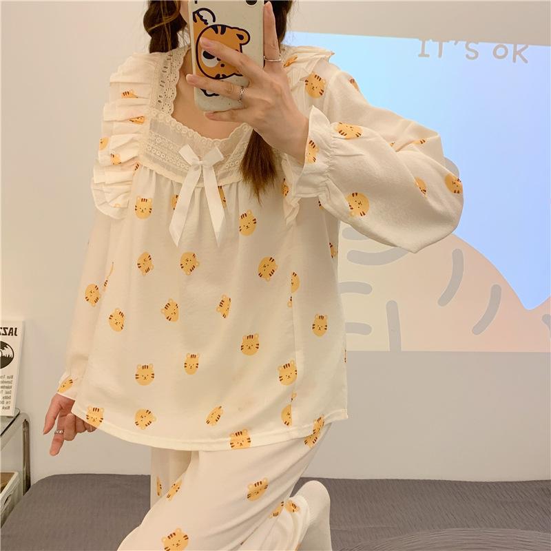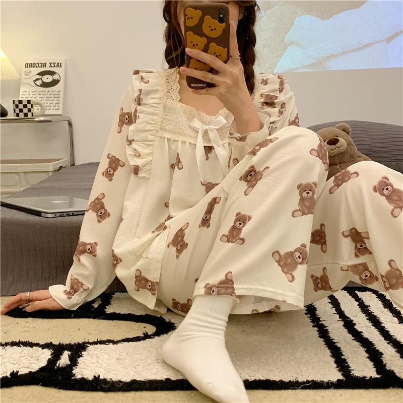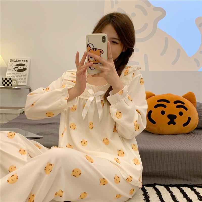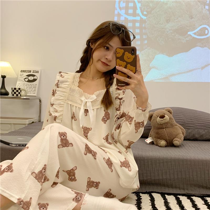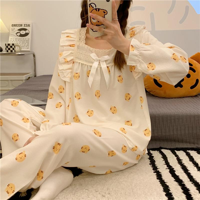 Camisón de mujer 2024, nuevo estilo palacio, manga larga, estilo princesa, encaje, estilo coreano, holgado, talla grande, para el hogar, transmisión en vivo