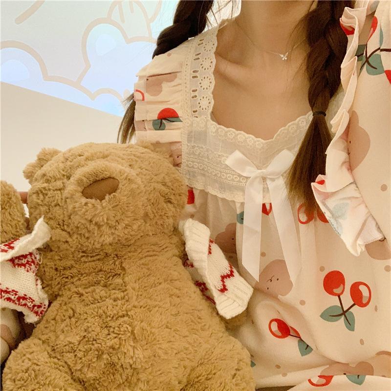 Camisón de verano de manga corta para mujer, novedad de 2024, bonito camisón de princesa estilo palacio para niña, ropa holgada para el hogar, se puede usar al aire libre