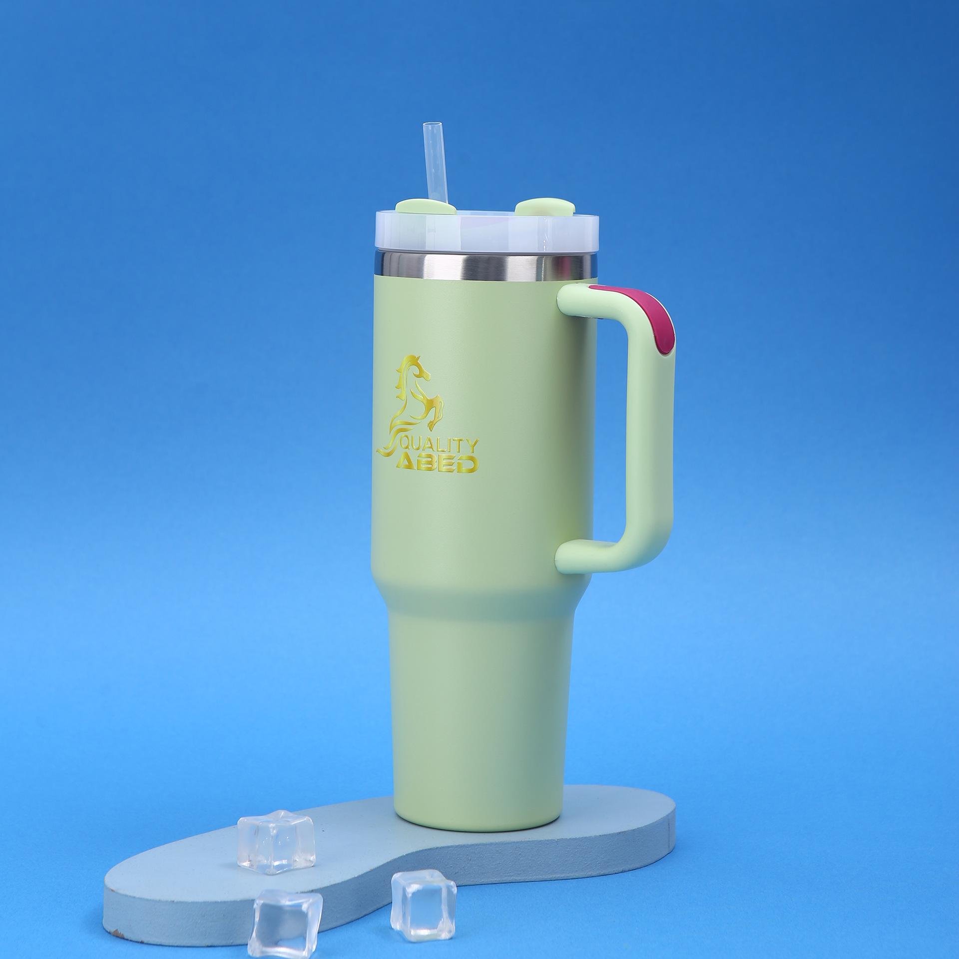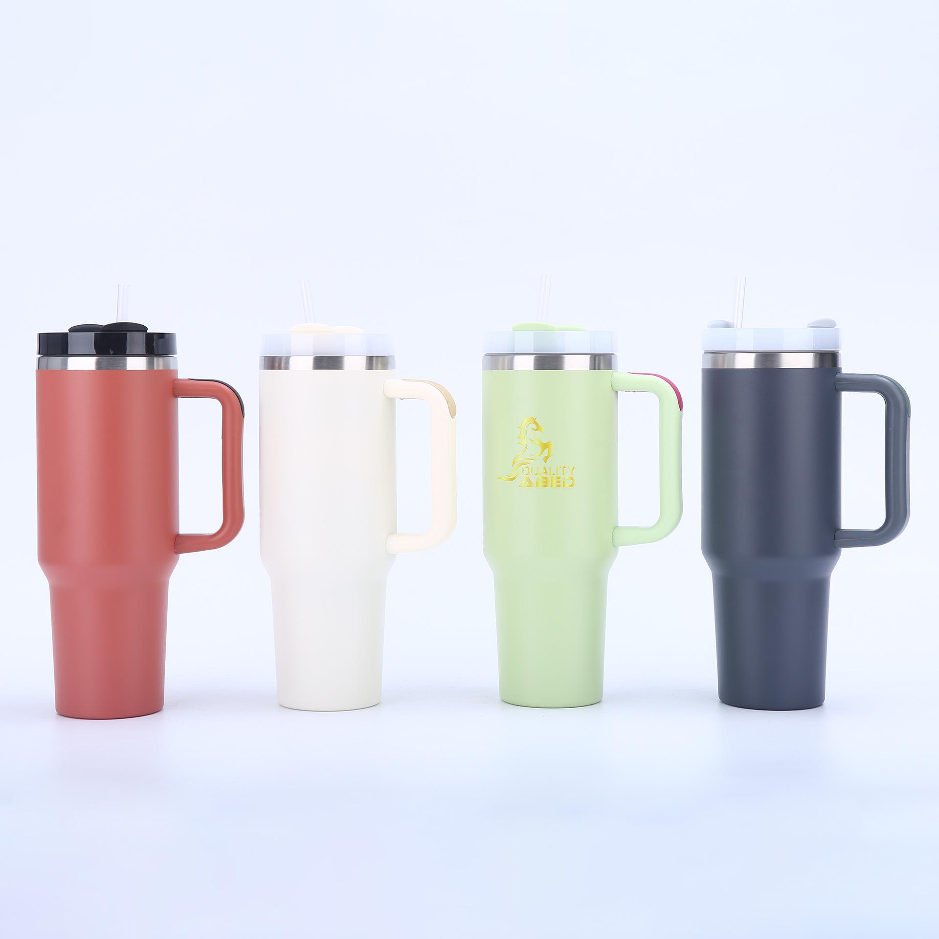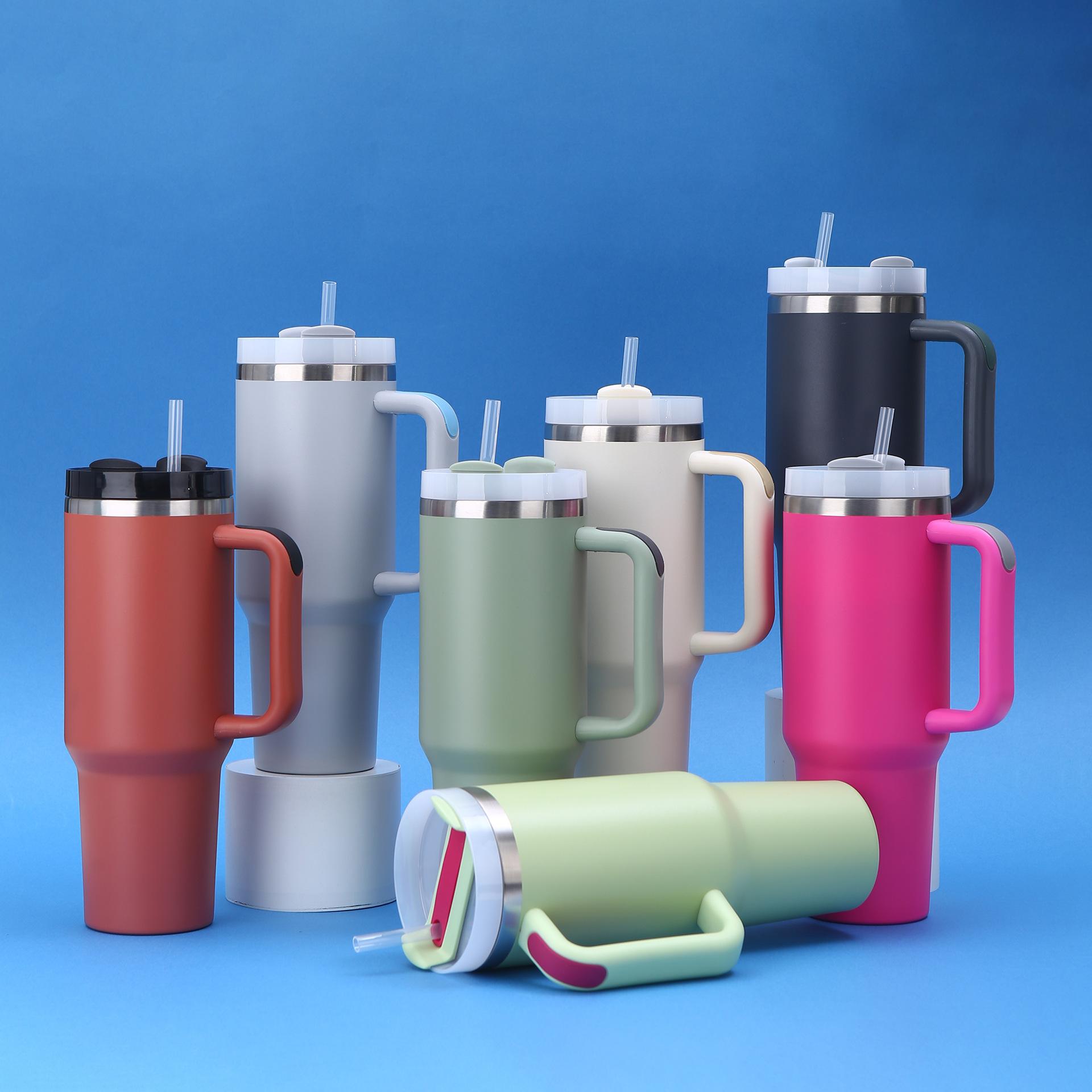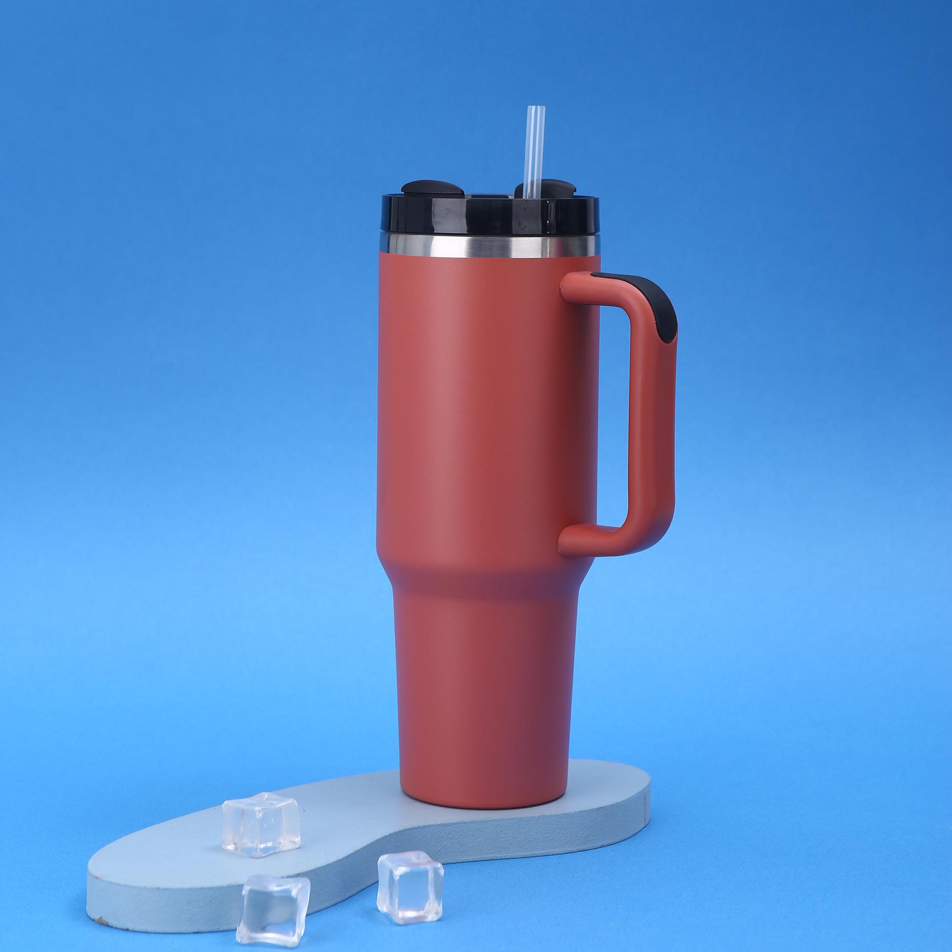 Vaso para coche Amazon 40oz de gran capacidad, termo de acero inoxidable 304, doble vacío con pajita, taza con asa