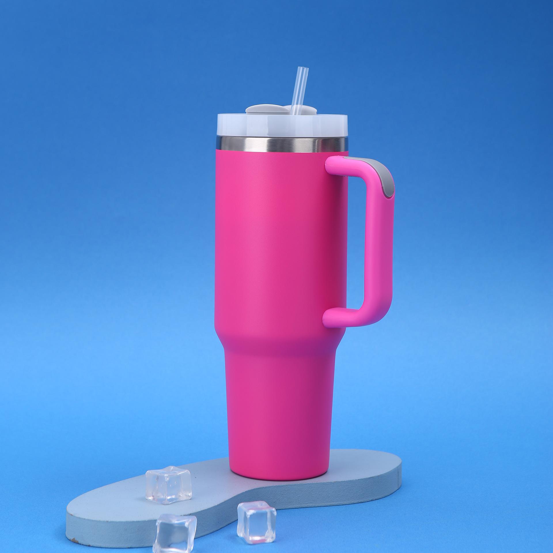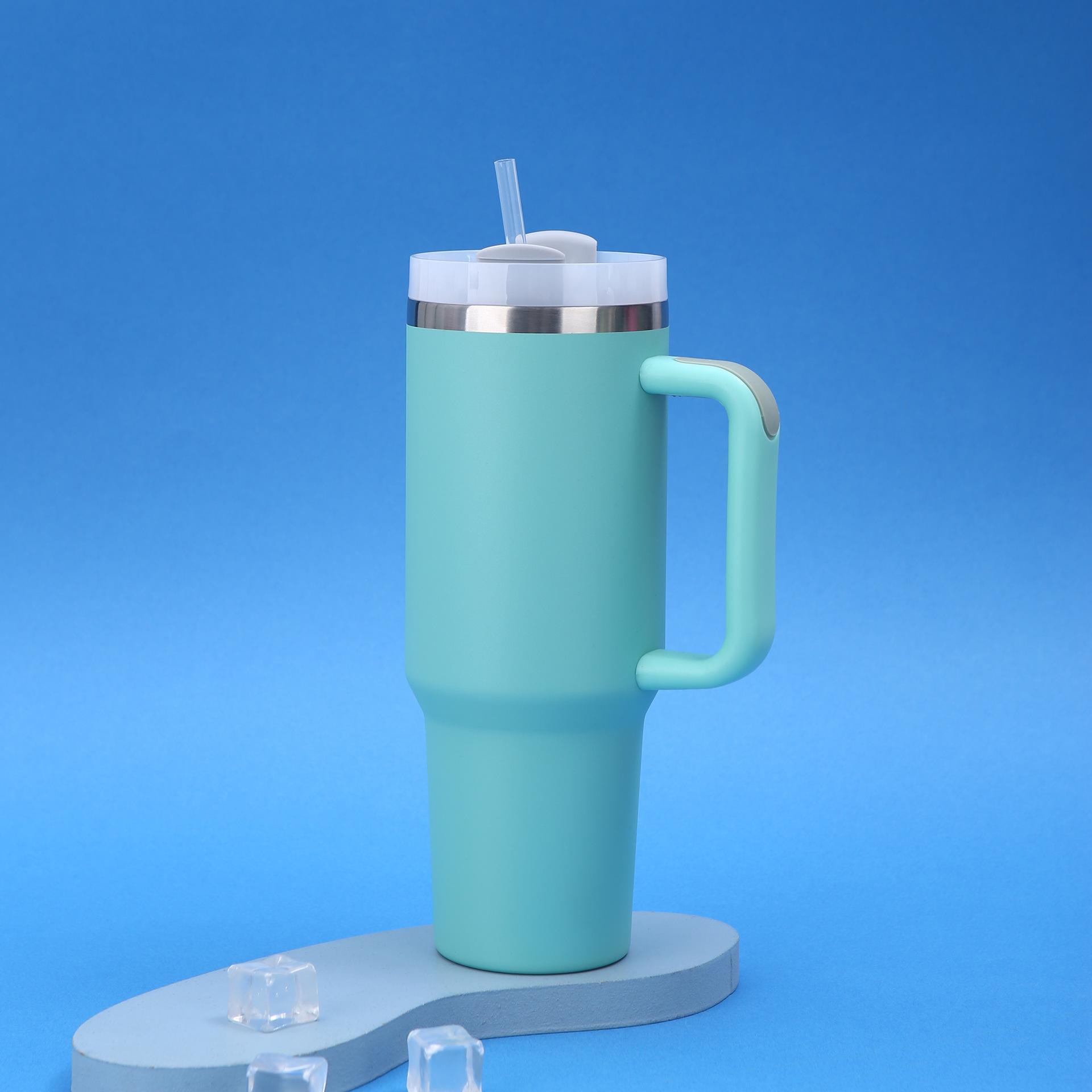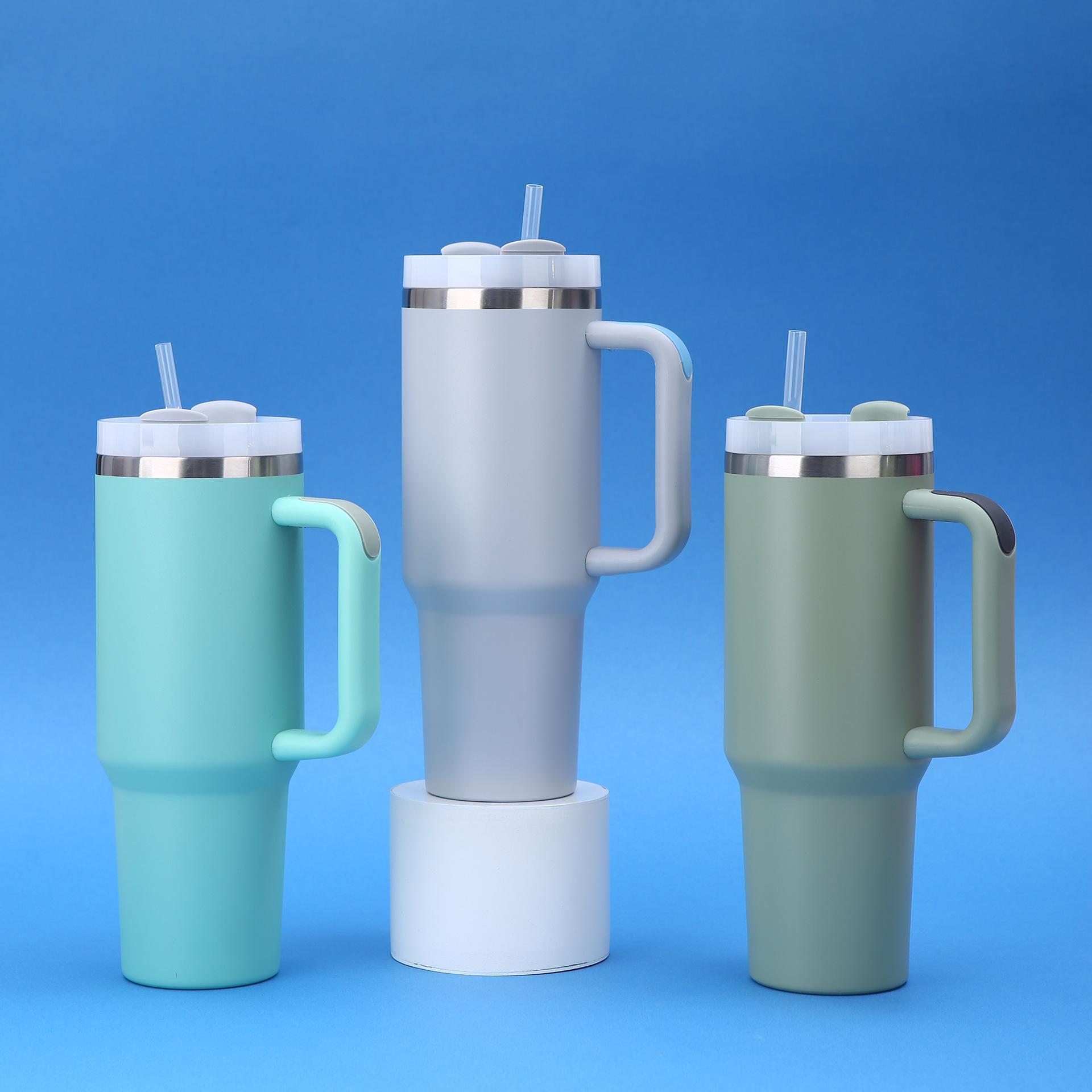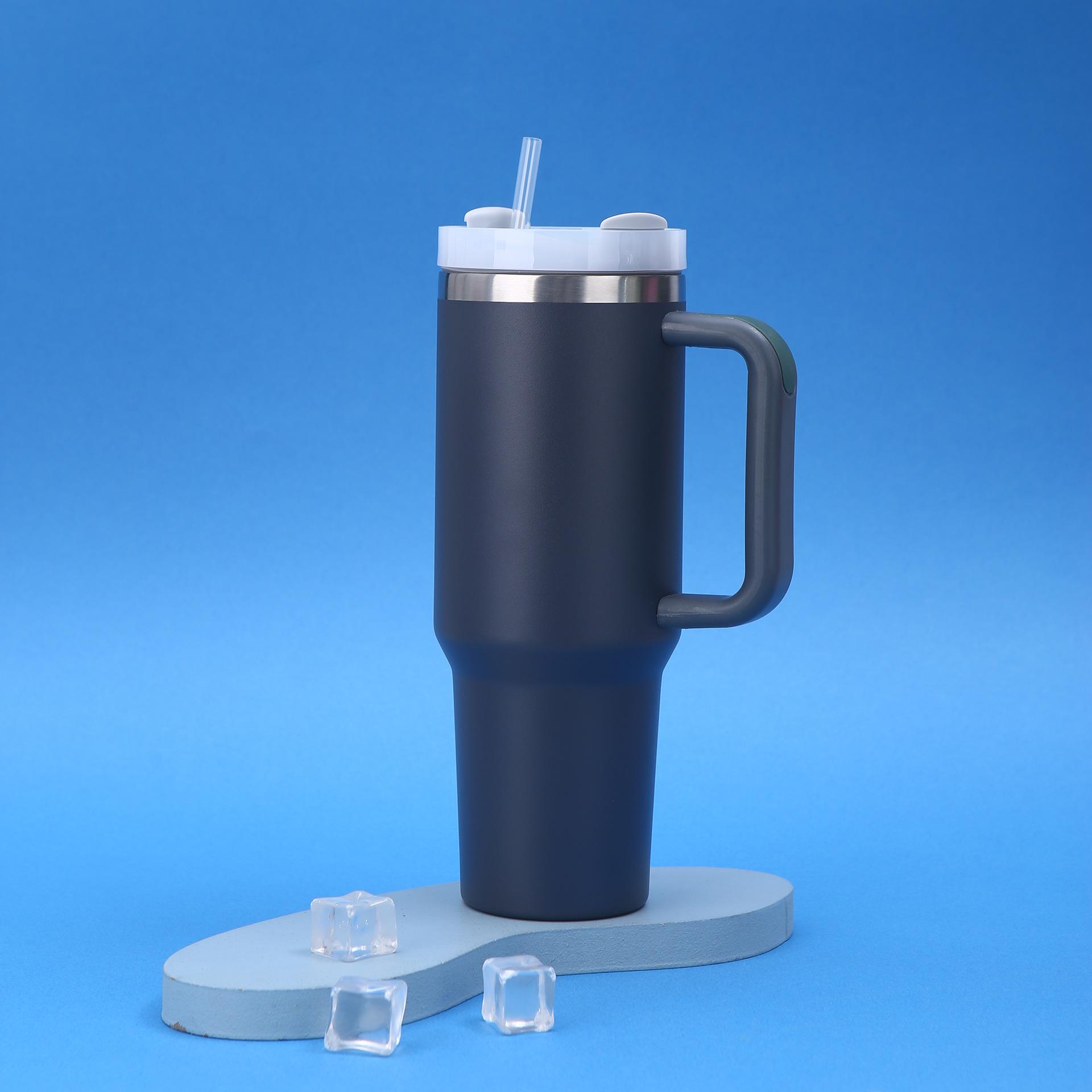 Vaso para coche Amazon 40oz de gran capacidad, termo de acero inoxidable 304, doble vacío con pajita, taza con asa