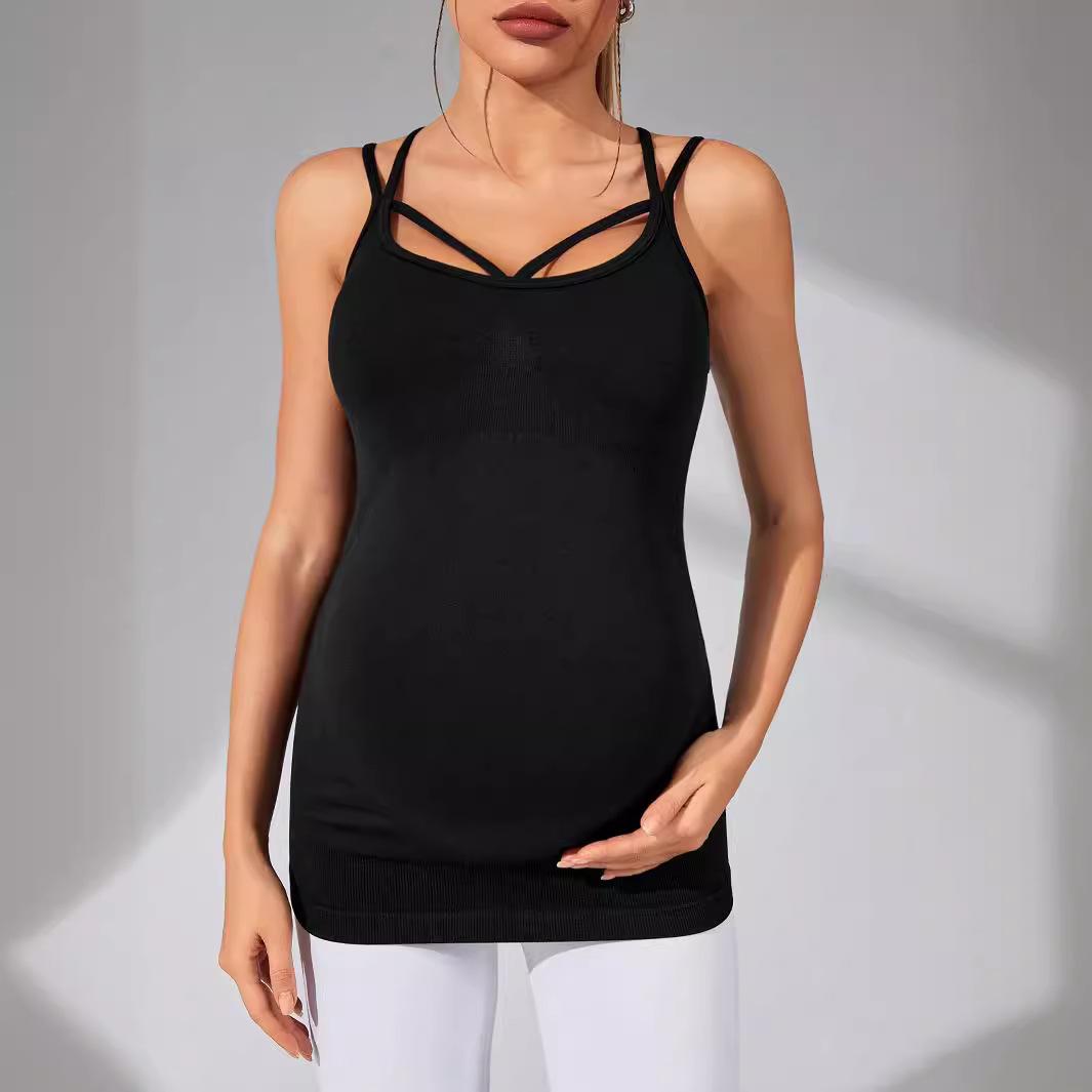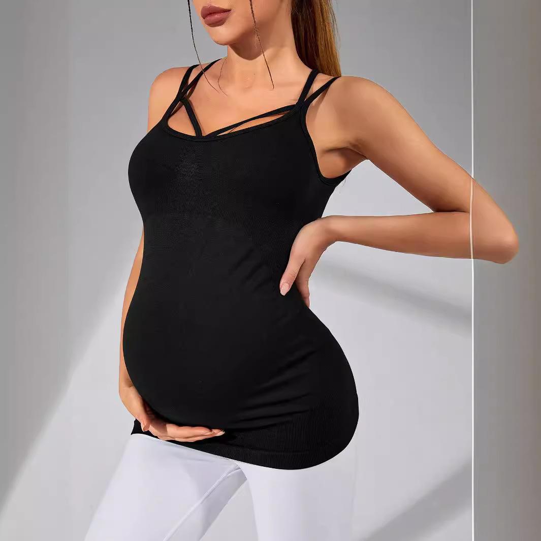Nuevas Explosiones Transfronterizas Ropa de Yoga de Alta Elasticidad para Mujeres Embarazadas Camisola Humedecimiento Absorbente de Sudor Secado Rápido Fitness Deportivo Chaleco para Embarazadas
