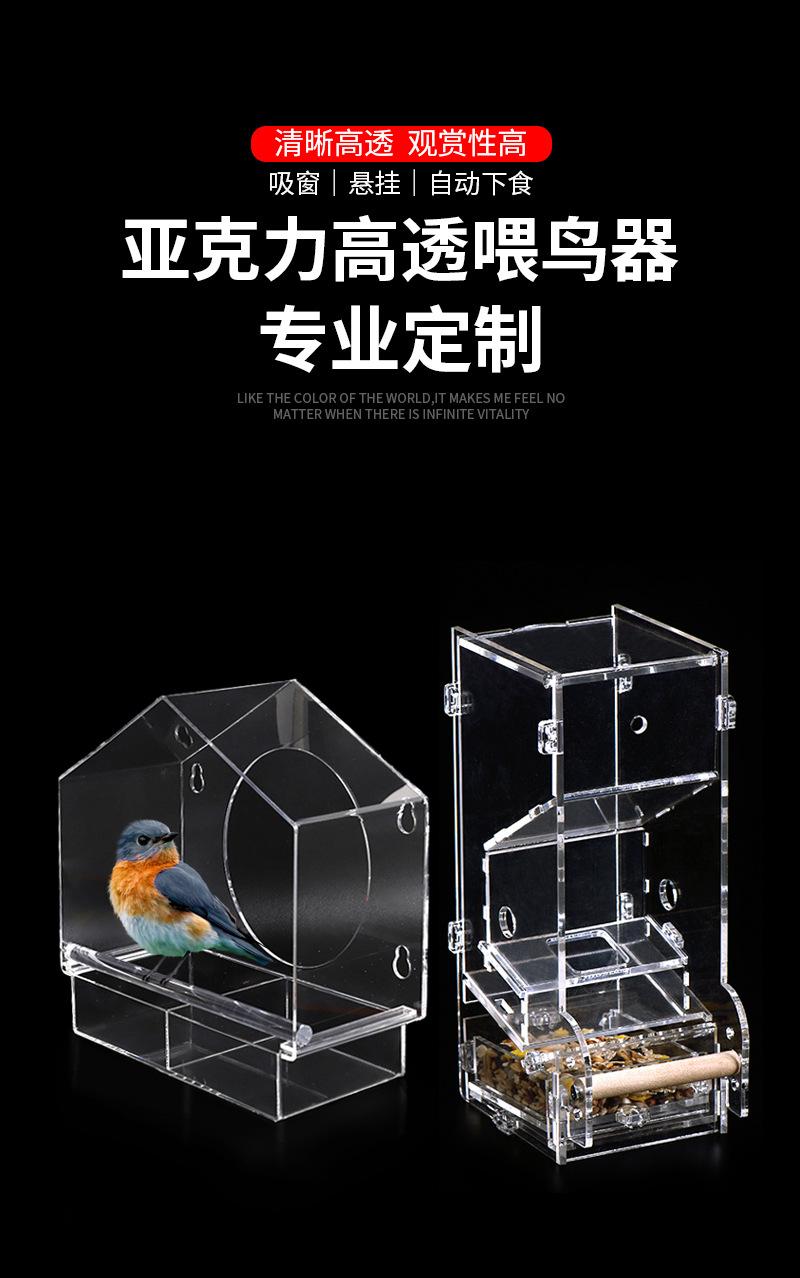 Comedero Acrílico para Pájaros Comedero para Aves Mascota con Canaleta Colgante para Exterior Transparente Creativo Jaula para Pájaros Transfronterizo