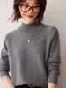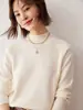 Suéter de cachemira 100% pura para otoño e invierno, suéter de cuello alto medio para mujer, suéter de cuello alto, camisa de punto grueso de manga larga para mujer, top holgado