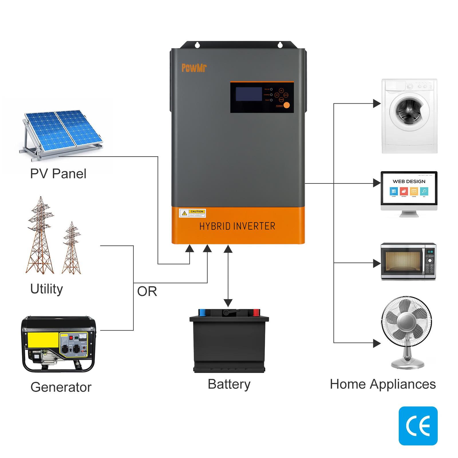 PowMr 6.2KW 6.2KV Inversor Solar Híbrido MPPT 120A 500VDC Entrada FV 220VAC 48V 6200W Controlador Inversor Solar