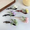 Horquilla de lazo elegante francesa para mujer, accesorio para el cabello rojo de alta gama, a la moda, combina con todo, con media diadema.