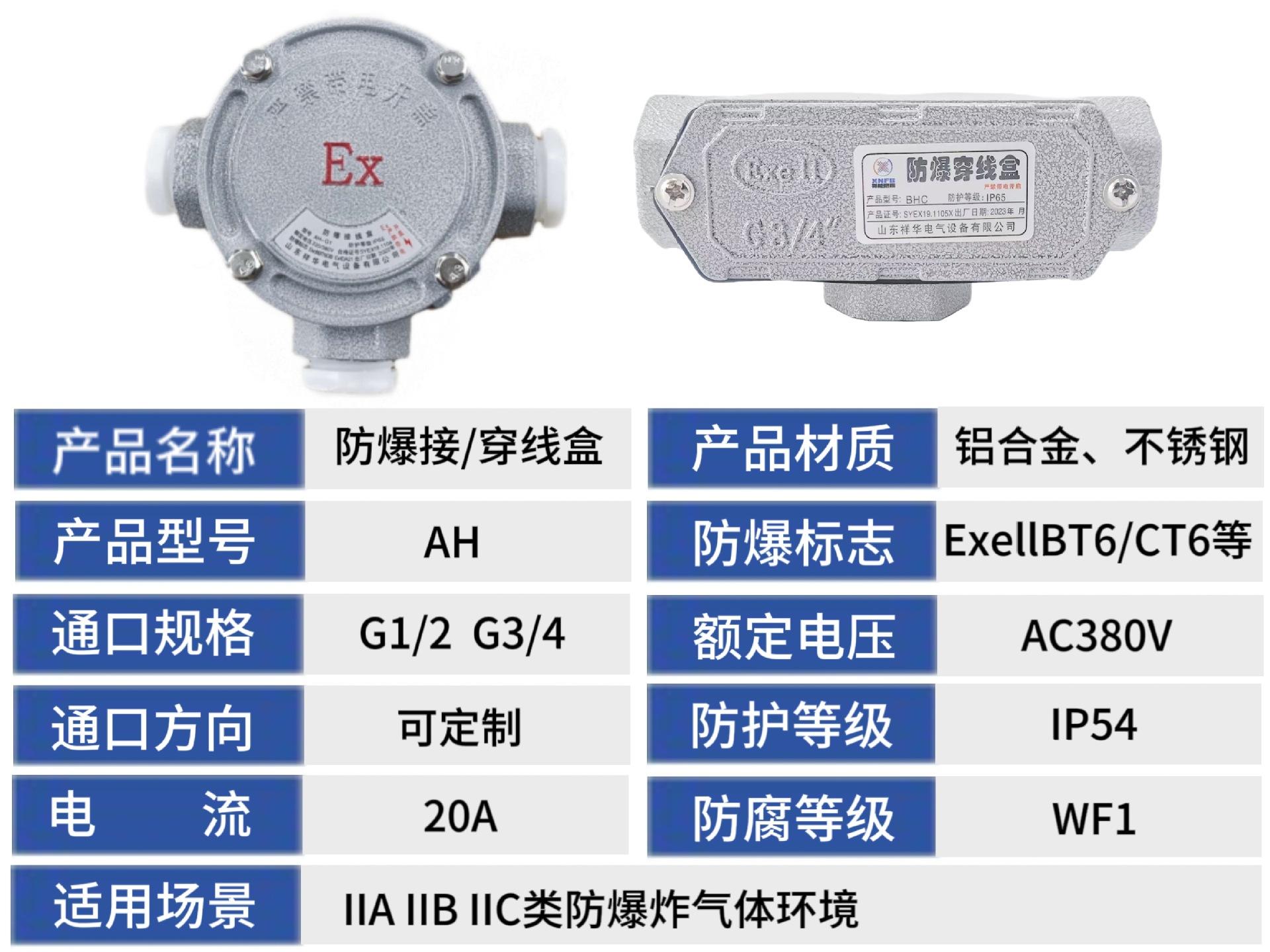 Caja de conexiones a prueba de explosiones Dn25 Caja de conexiones de aleación de aluminio Acero inoxidable Recta de tres y cuatro vías Codo Bhc Caja de roscado a prueba de explosiones