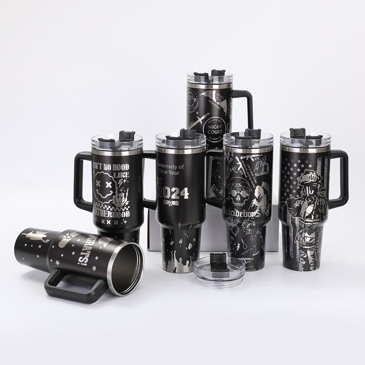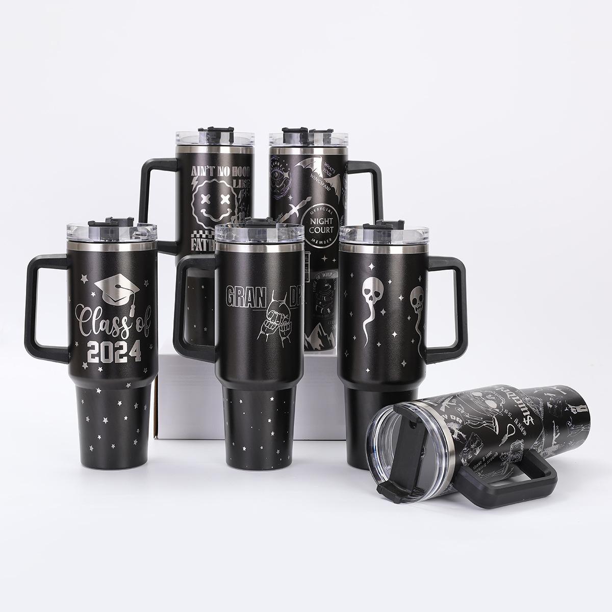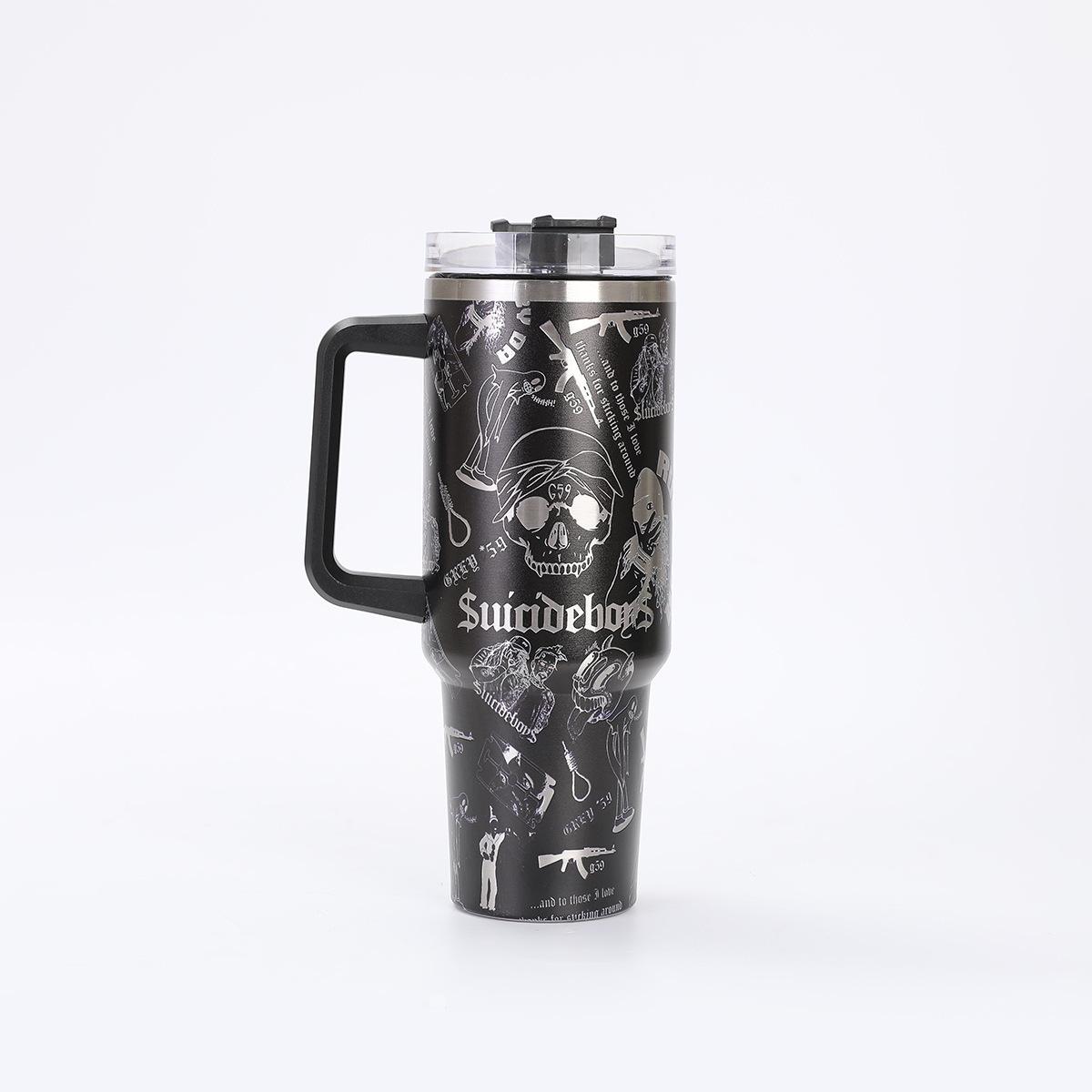 Impresión transfronteriza 40 oz taza para coche de generación gran capacidad con asa taza termo de acero inoxidable 304 vacío taza helada