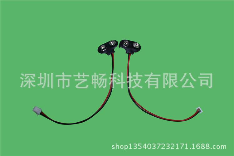 Producir varias especificaciones de clips de batería (clips de batería de 9 V),Estuche de cuero suave con cables electrónicos rojos y negros. El tipo y la longitud del cable se pueden personalizar.Hay varios modelos y estilos, adecuados para instrumentos, juguetes y diversos productos electrónicos.