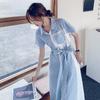 Foto Real de Otoño e Invierno 2025 Nuevo Estilo Vestido Estilo Maduro Ligero Vestido Camisero para Mujer Diseño de Aspecto Adelgazante en la Cintura Falda Elegante
