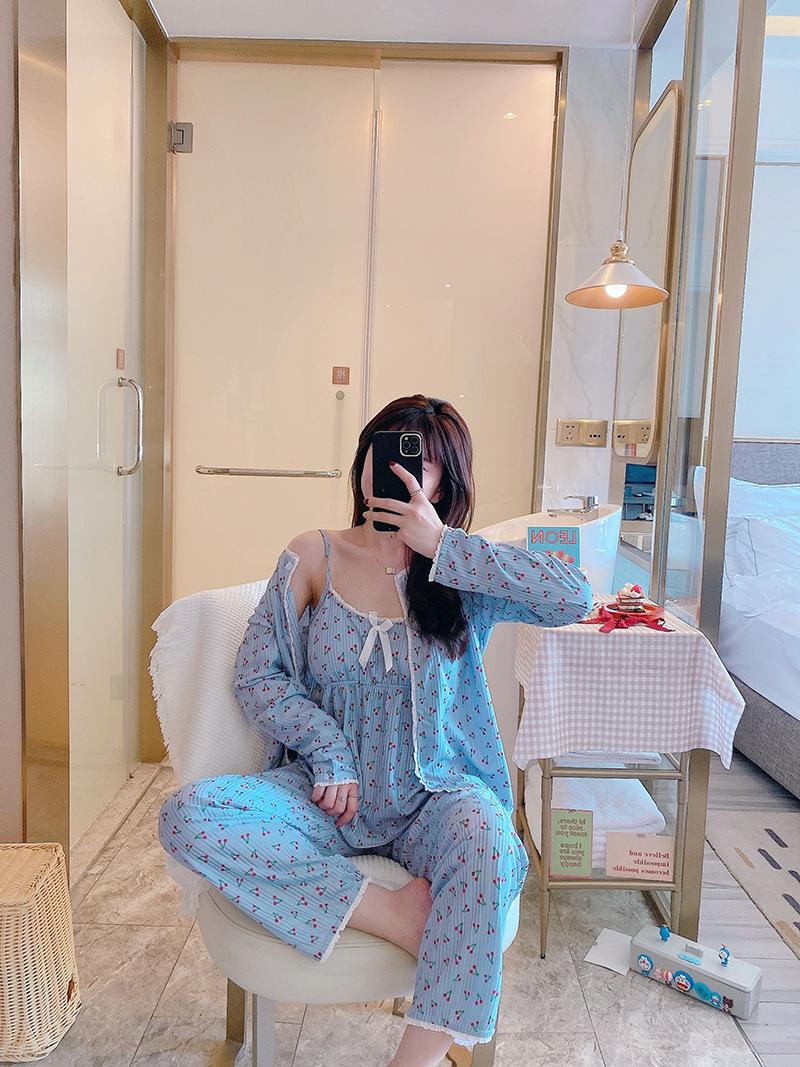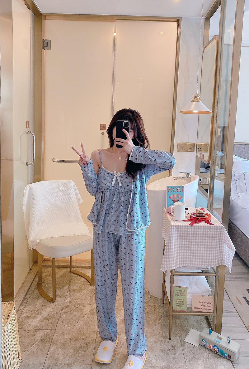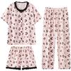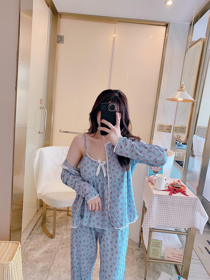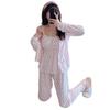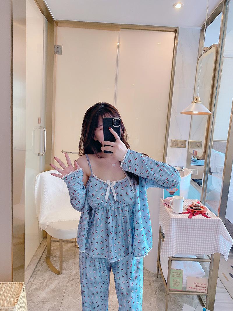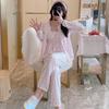 Pijama de tres piezas para niña linda, para mujer, rosa, con lazo, holgado, talla grande, ins, ropa de casa para mujer, pijama de mujer al por mayor