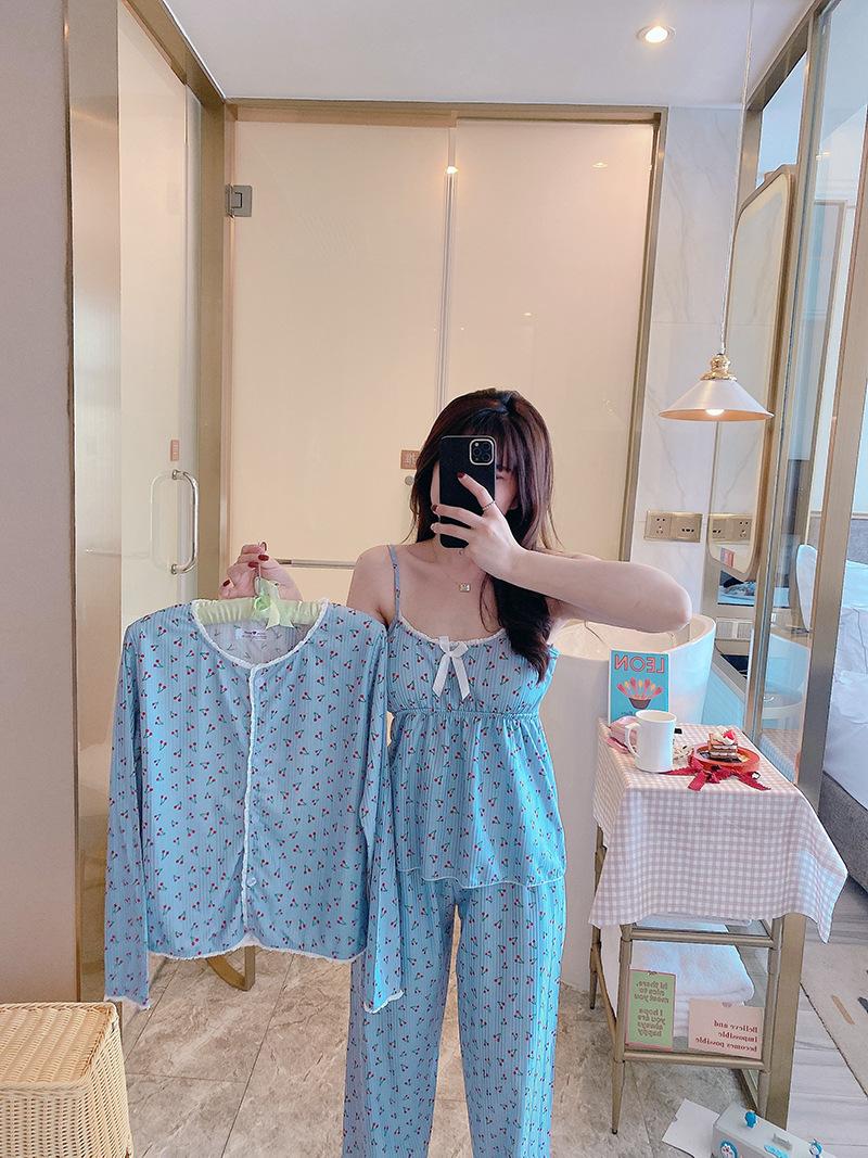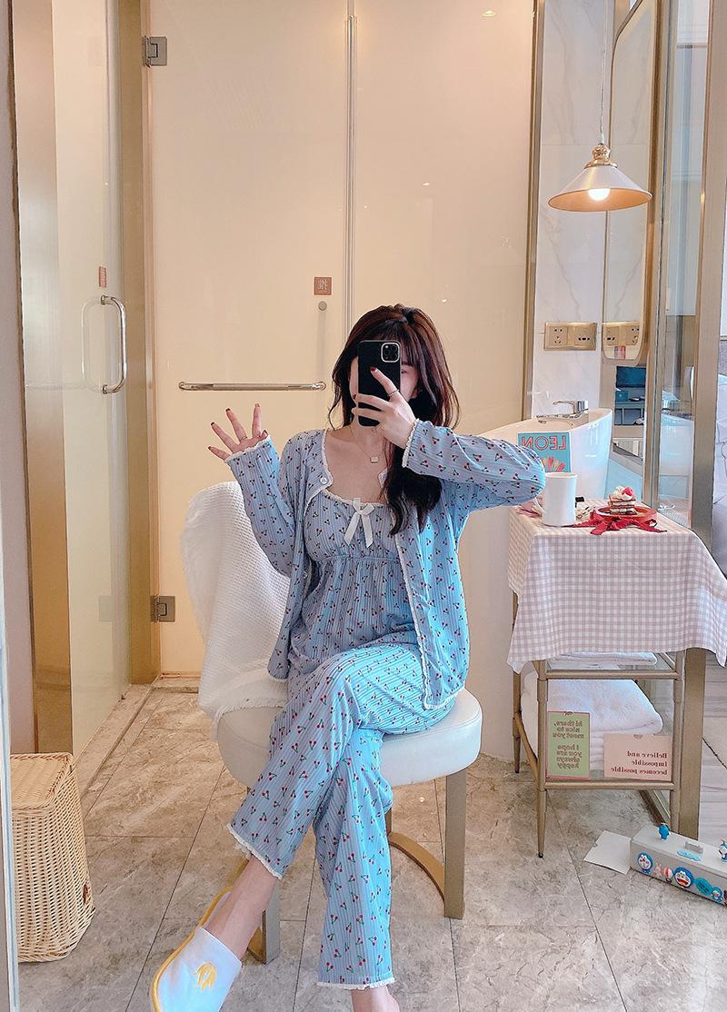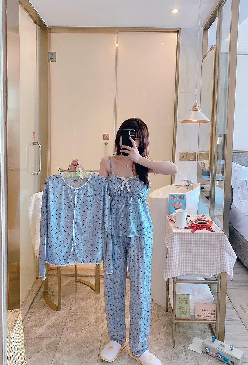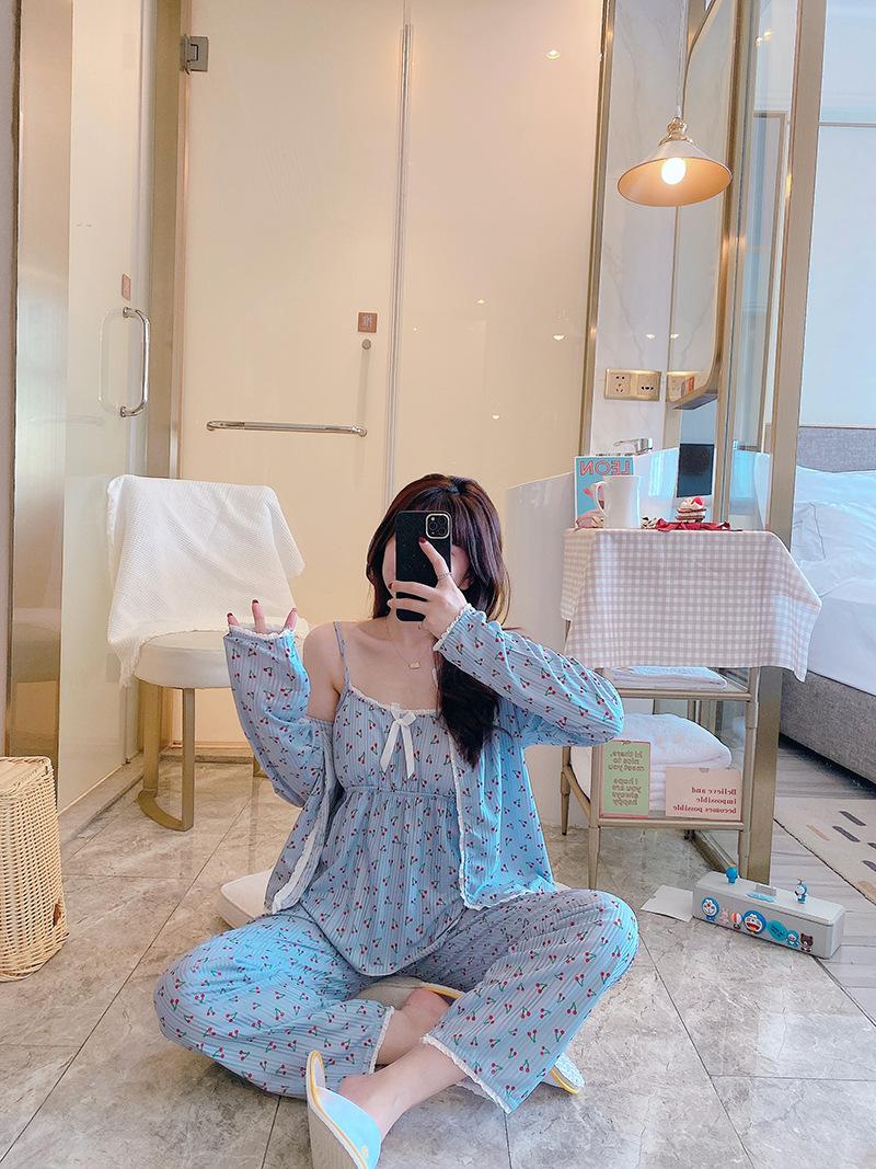 Pijama de tres piezas para niña linda, para mujer, rosa, con lazo, holgado, talla grande, ins, ropa de casa para mujer, pijama de mujer al por mayor