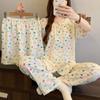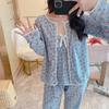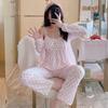 Pijamas a cuadros para mujer, estilo japonés, versión coreana, ropa de casa de manga larga, ropa para exteriores, venta al por mayor transfronteriza.