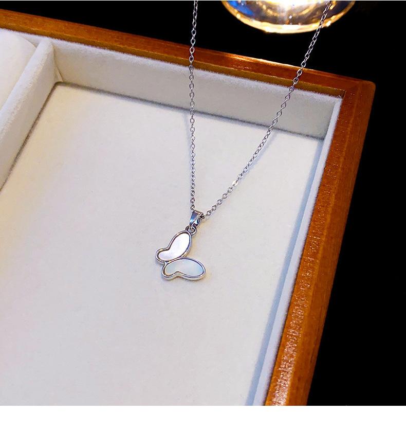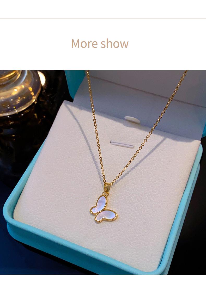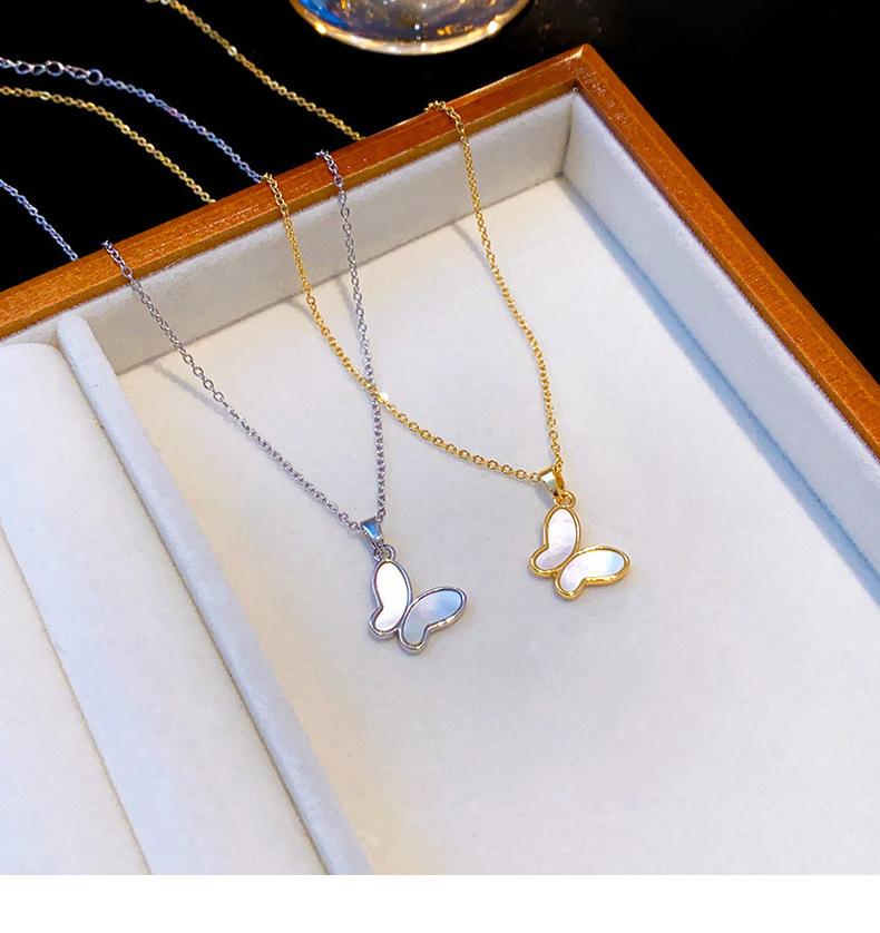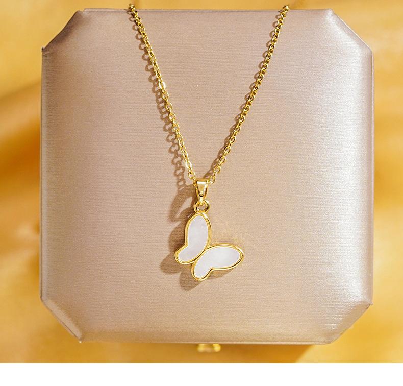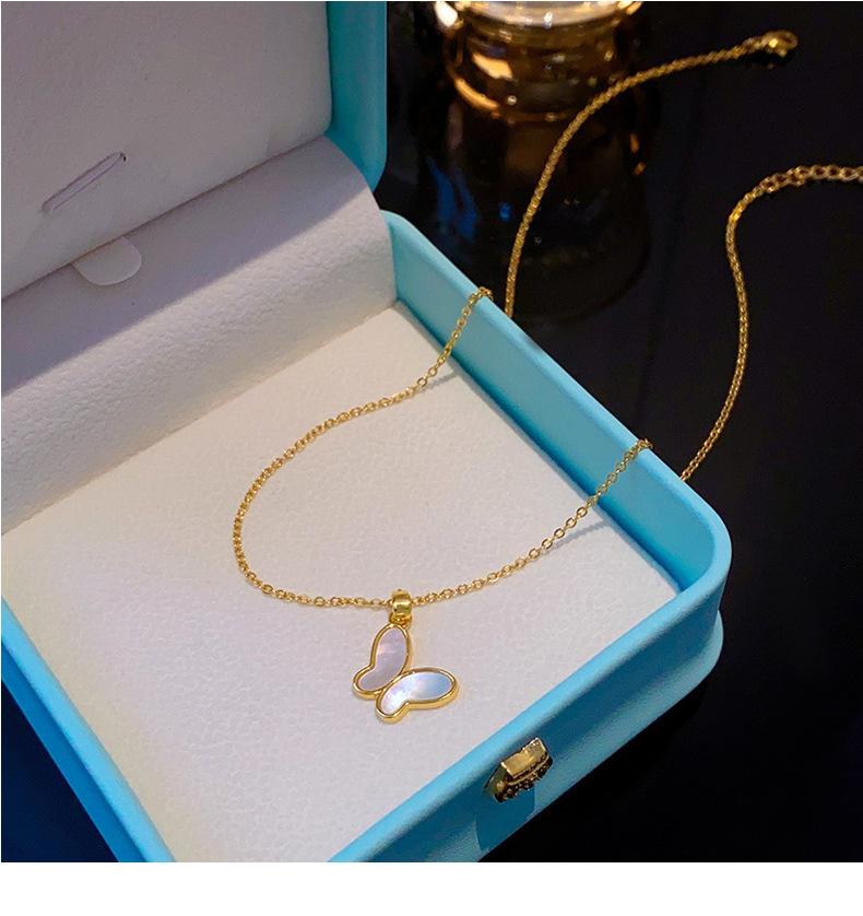 Concha Natural Chapado en Oro Real Concha Blanca Collar Mariposa para Mujer Nicho Lujo Ligero Avanzado Ciber Celebridad Acero Titanio Cadena Clavícula Venta al por Mayor