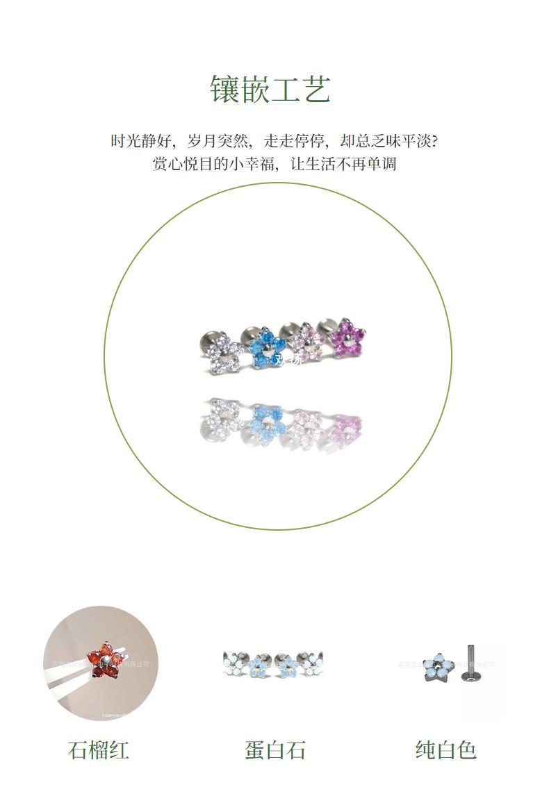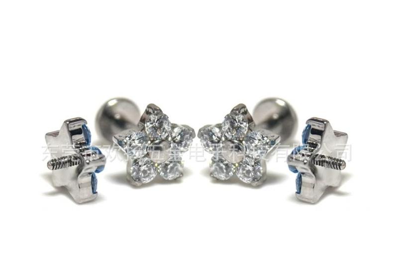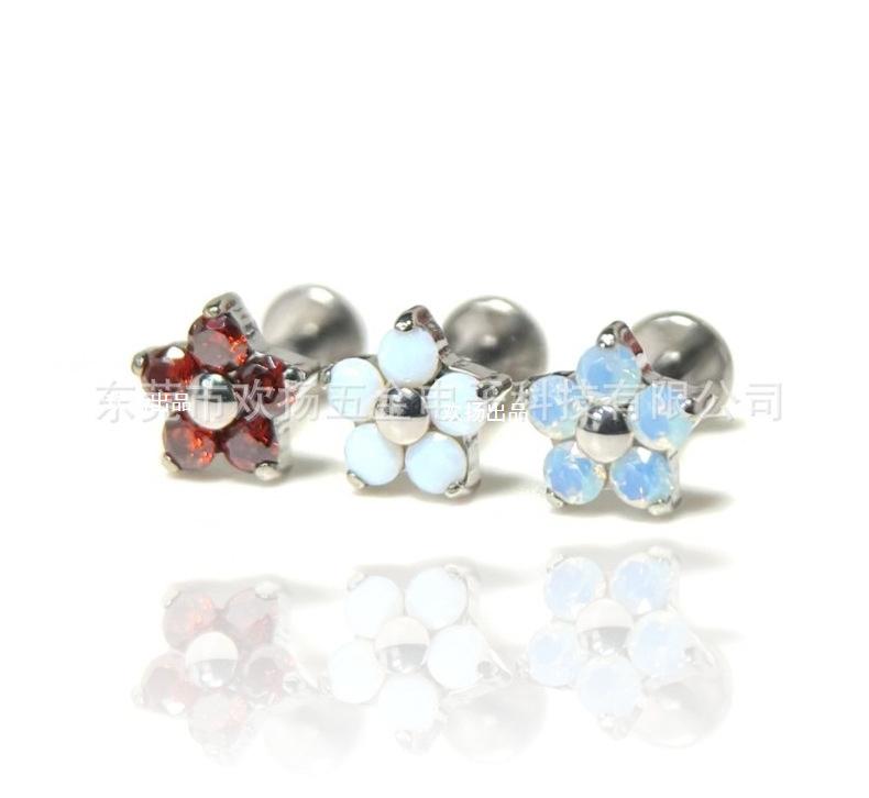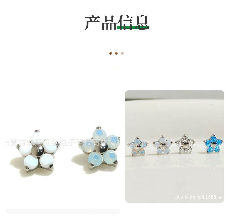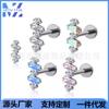 Aretes de Flor de Aleación de Titanio F136 con Zircón de Proteína Incrustado a Mano, Aretes de Alta Gama para Hueso de la Oreja, Joyería de Moda para Perforaciones