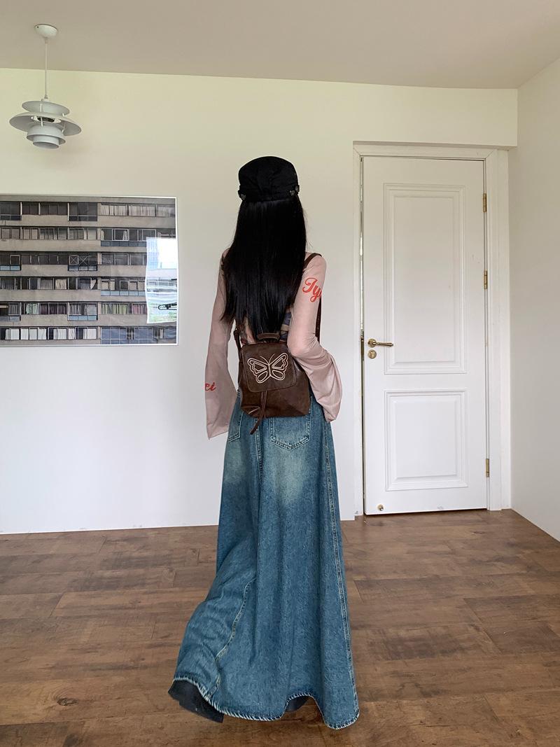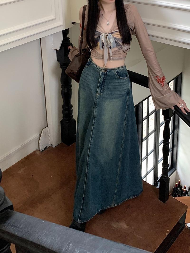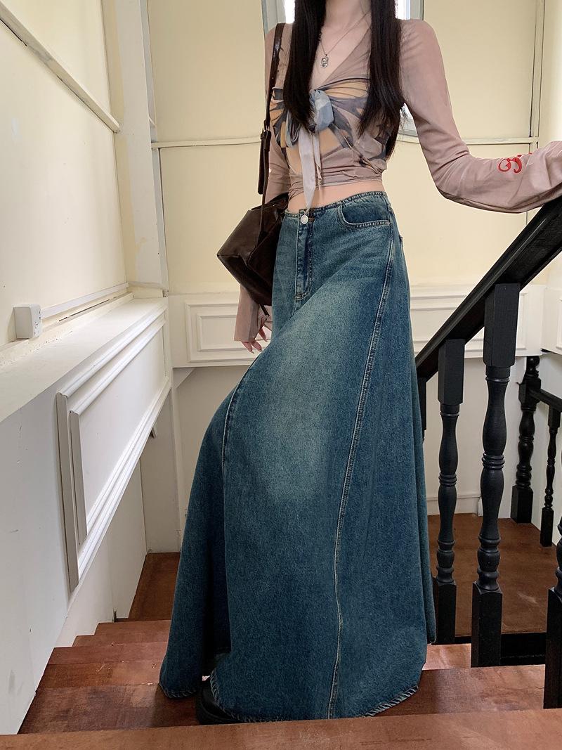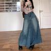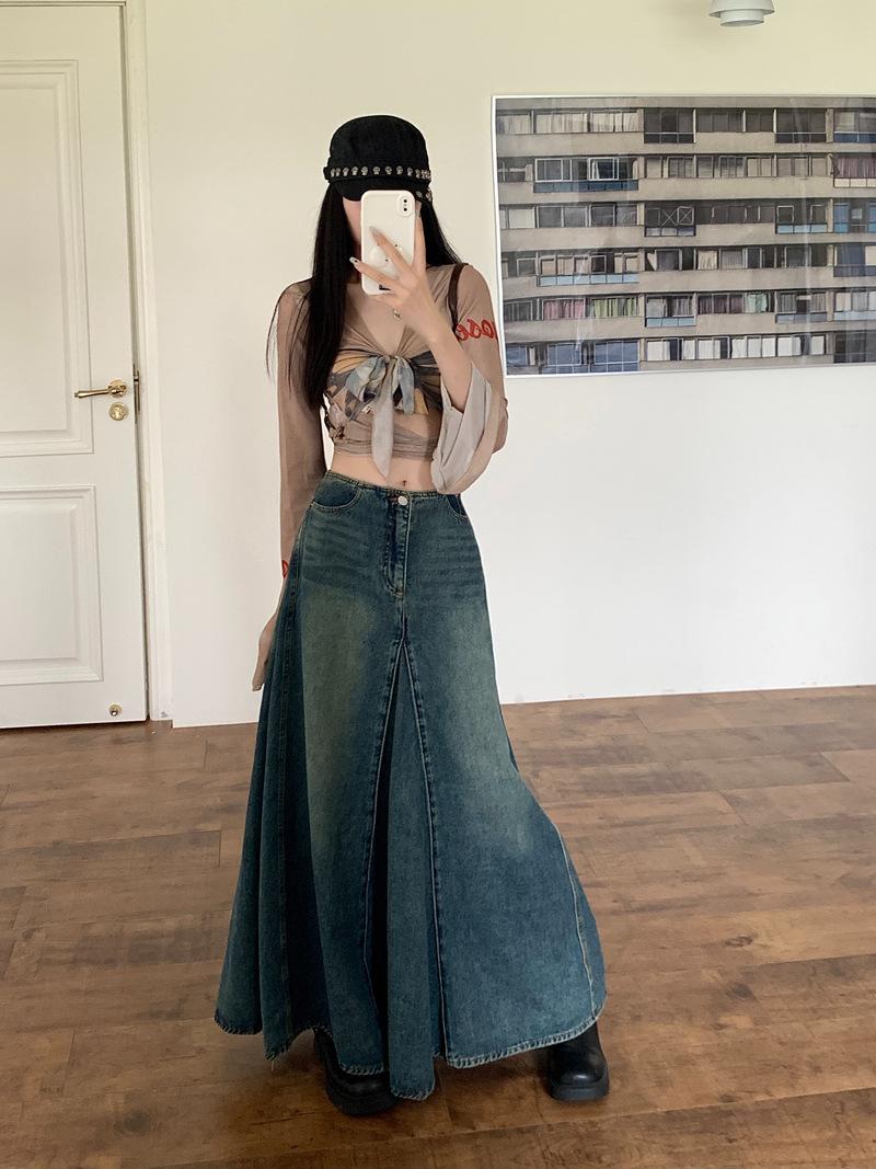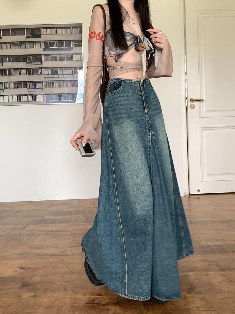 Falda vaquera retro de verano, talla grande, cintura alta, línea A, para mujer, mediana, larga, ajustada, con paraguas
