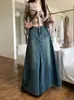 Falda de mezclilla de cintura alta para mujer Primavera y Verano 2025 Nuevo Retro Americano Talla Grande mm Gordo Nicho Línea A Falda Larga