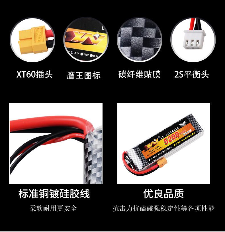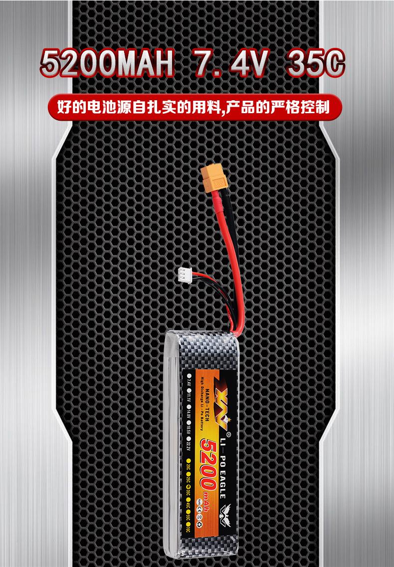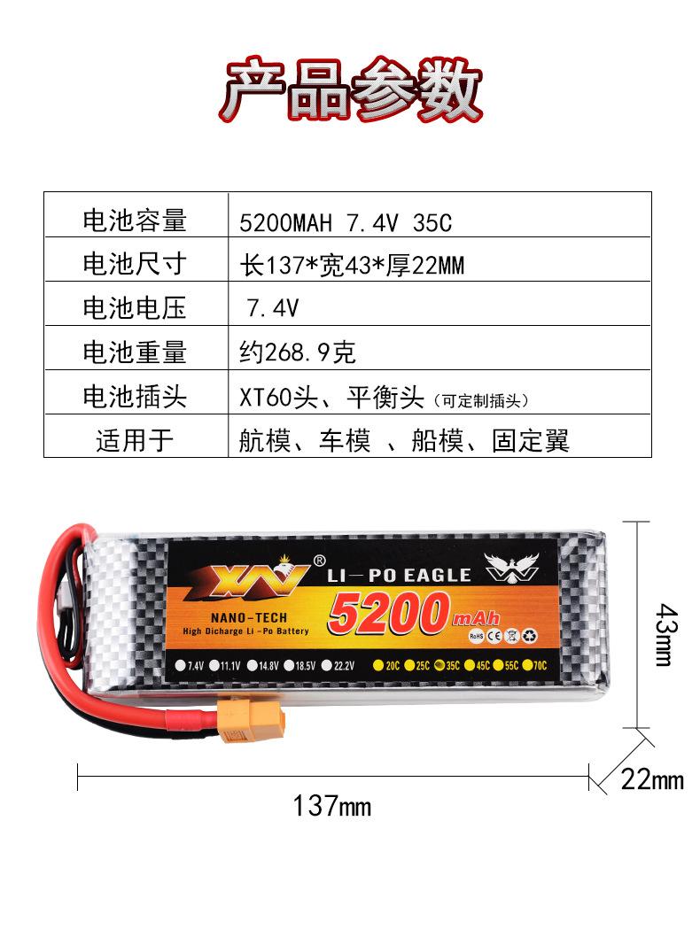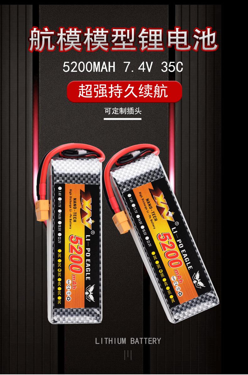 Batería modelo de avión 7.4V 5200MAH 35C 2S polímero RC coche de escalada modelo de barco potencia batería de litio