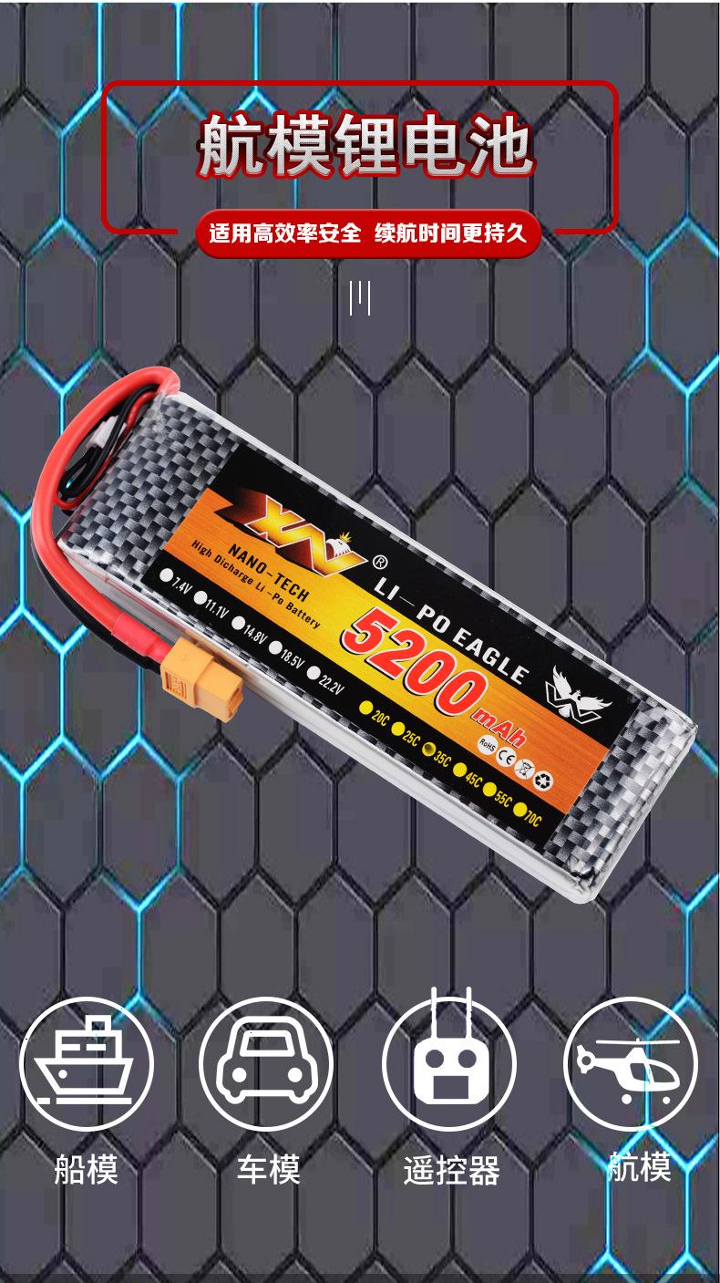 Parámetros de la batería: 2S-7.4V 5200mAh 35C