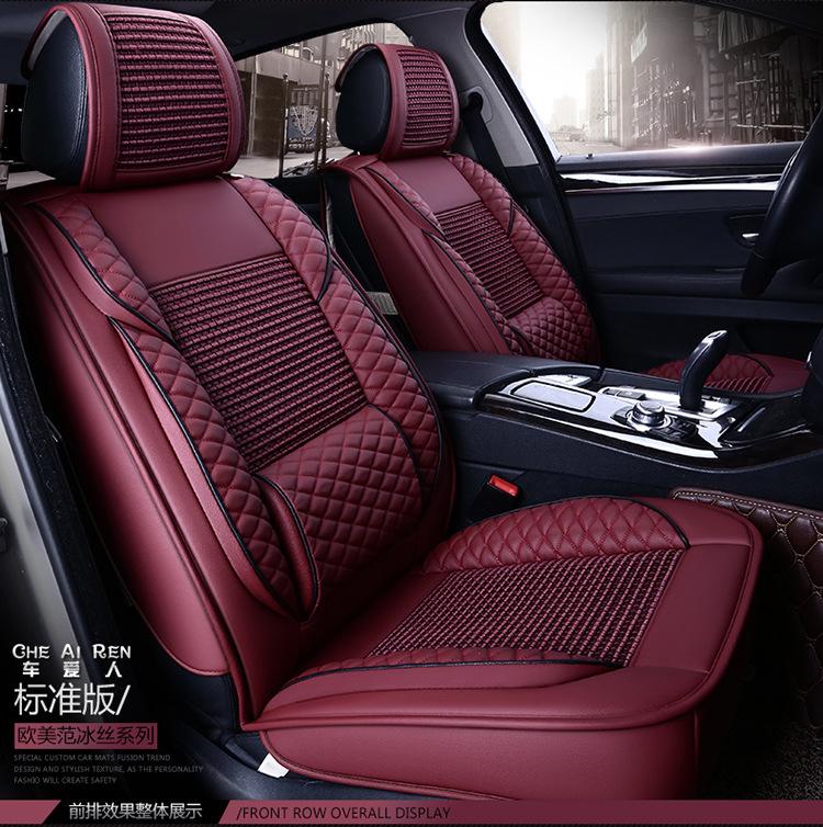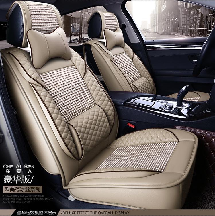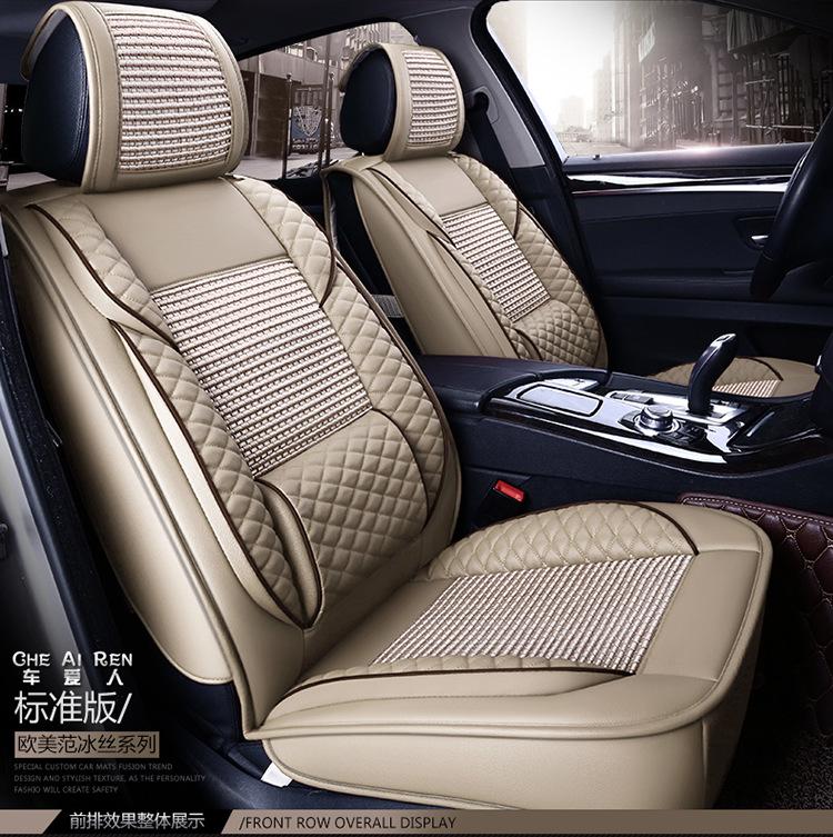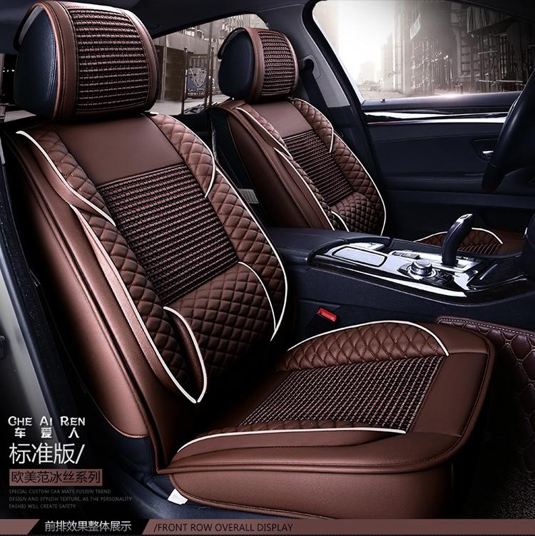 Venta al por mayor CAR estilo europeo y americano cuero seda de hielo cojín de asiento de coche nuevo verano cuatro estaciones funda de cojín de asiento funda de asiento suministros para interiores moda clásico diseño de cintura fija {{{{{{{{{{{