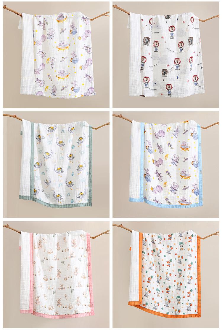 Toalla de Baño para Bebé de Algodón Puro, Algodón Tipo A, Hilo de Seis Capas, Manta Absorbente para Recién Nacido, Suave Impresa para Bebé Playa