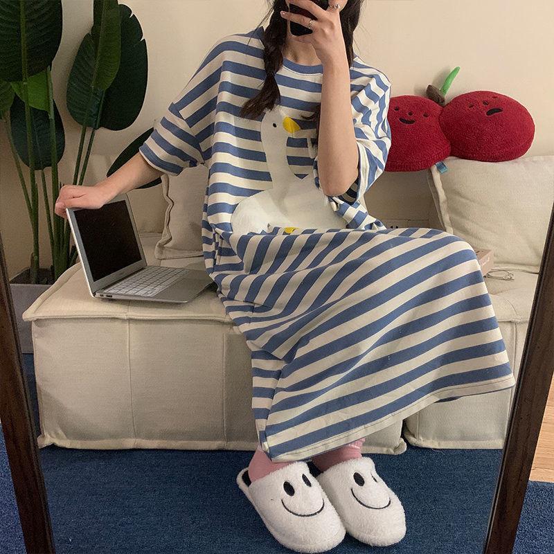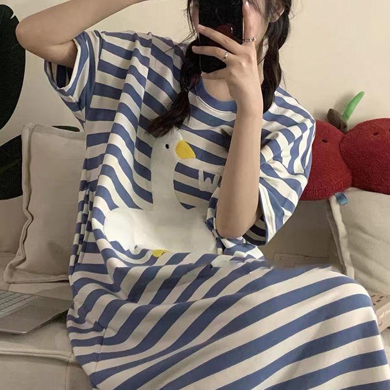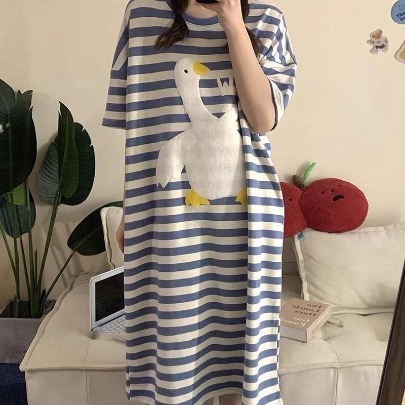 Versión coreana de camisón de ganso blanco grande de dibujos animados para mujer 2023 primavera y verano cuello redondo holgado talla grande pijama ropa de casa venta al por mayor generación