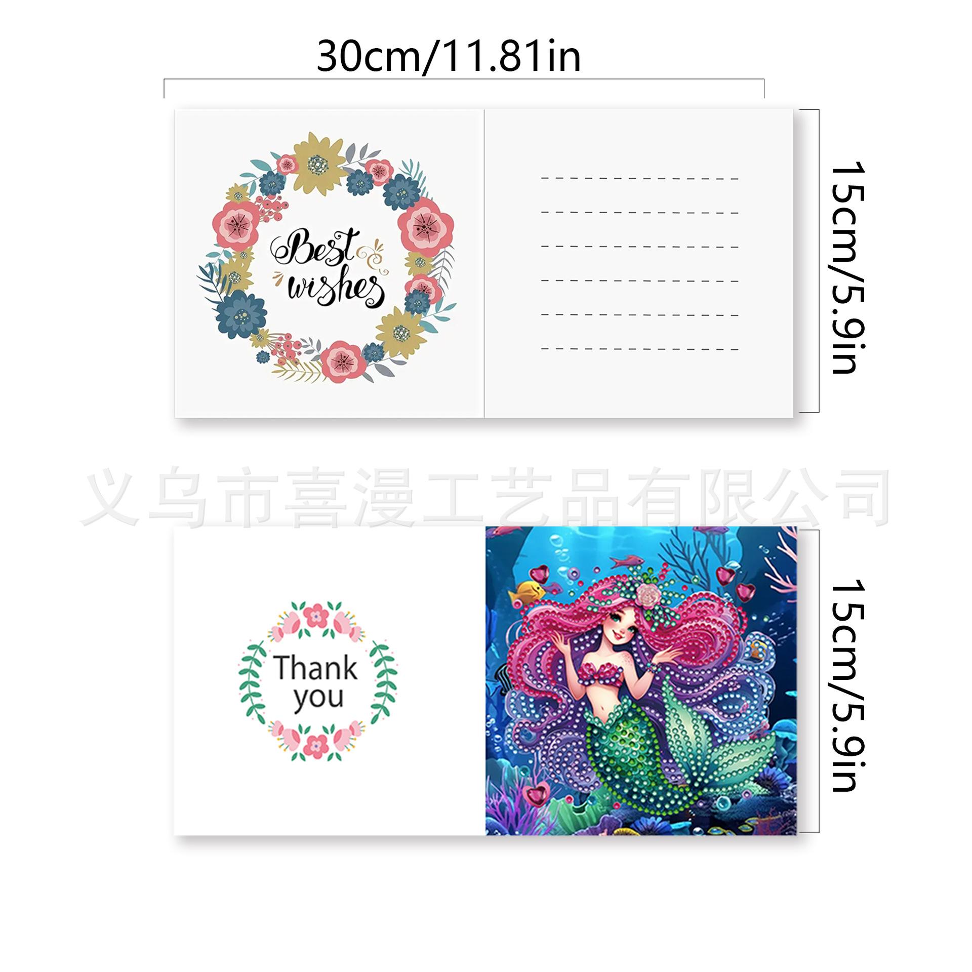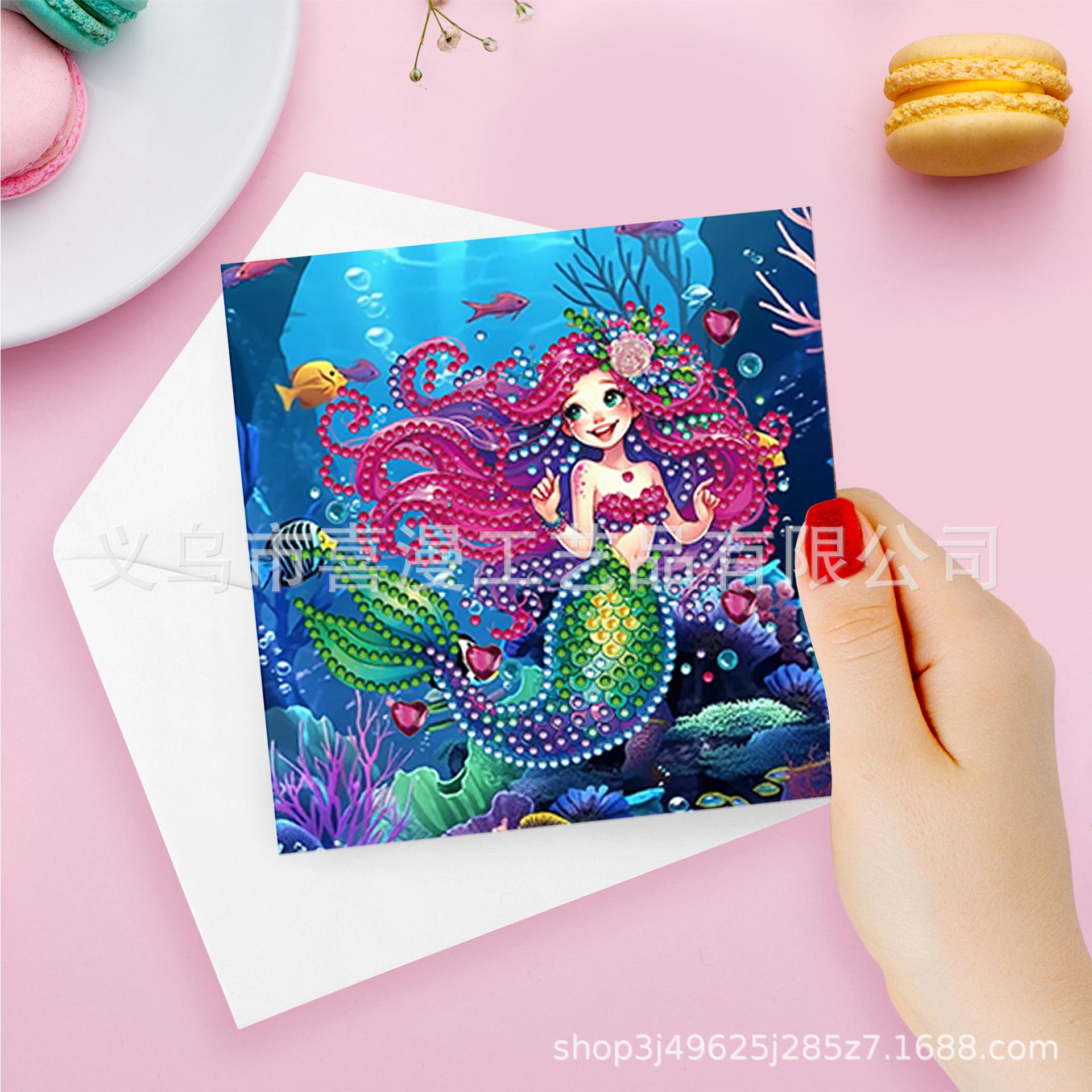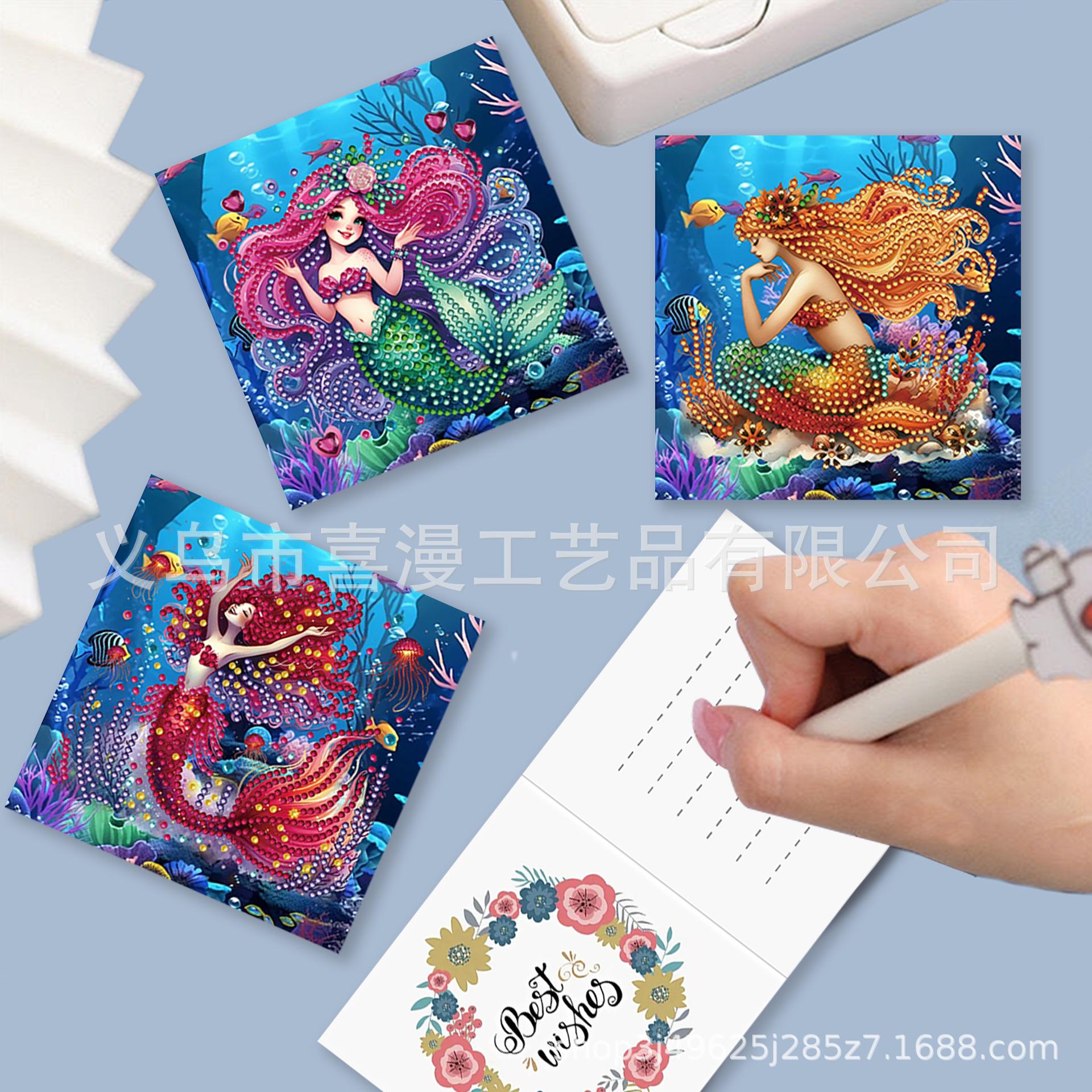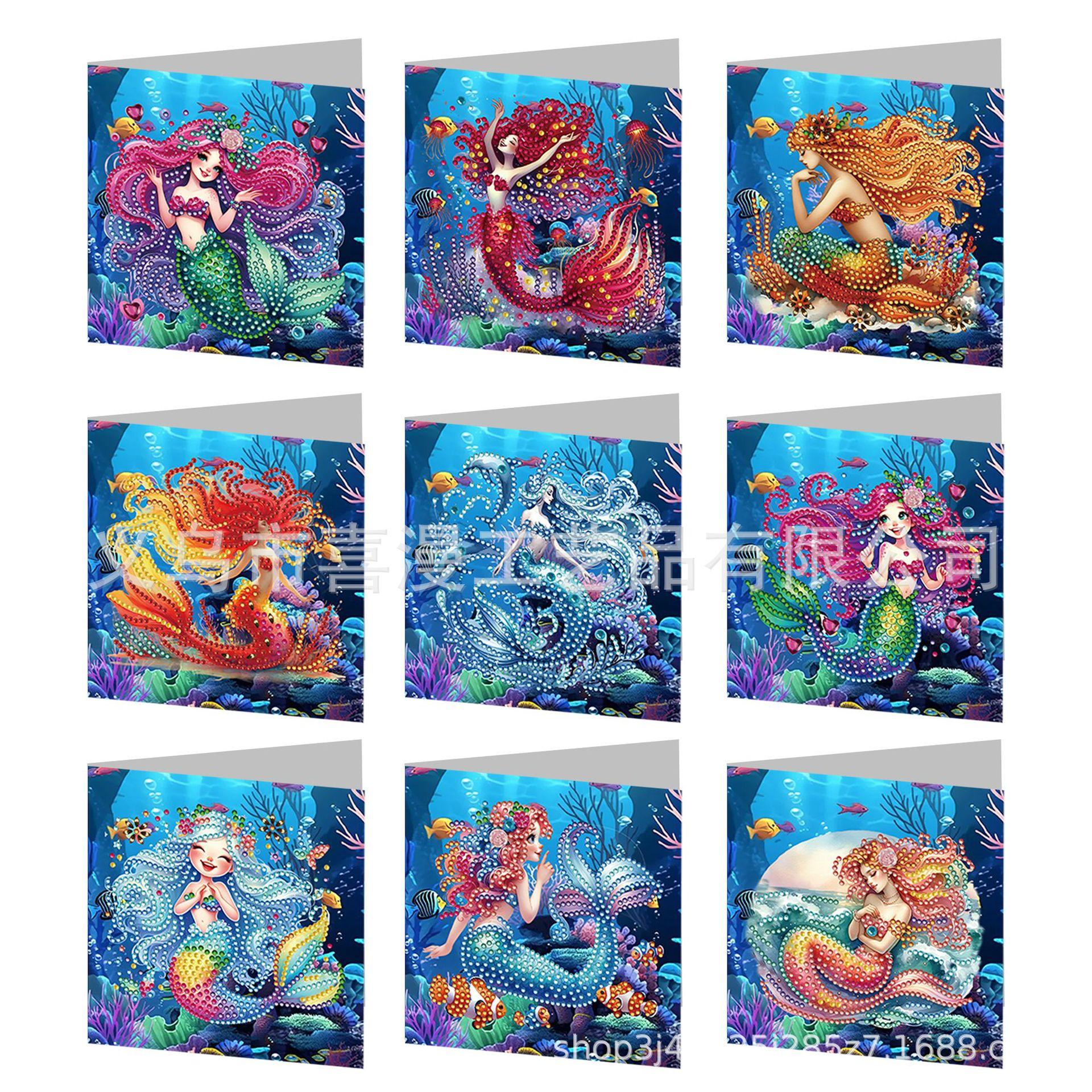 9 Piezas Transfronterizas Creativas Serie Mundo Marino Sirena Estilo Tarjeta de Felicitación Pintura de Diamantes DIY Alienígena Calcomanías Hechas a Mano