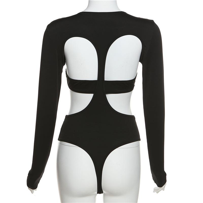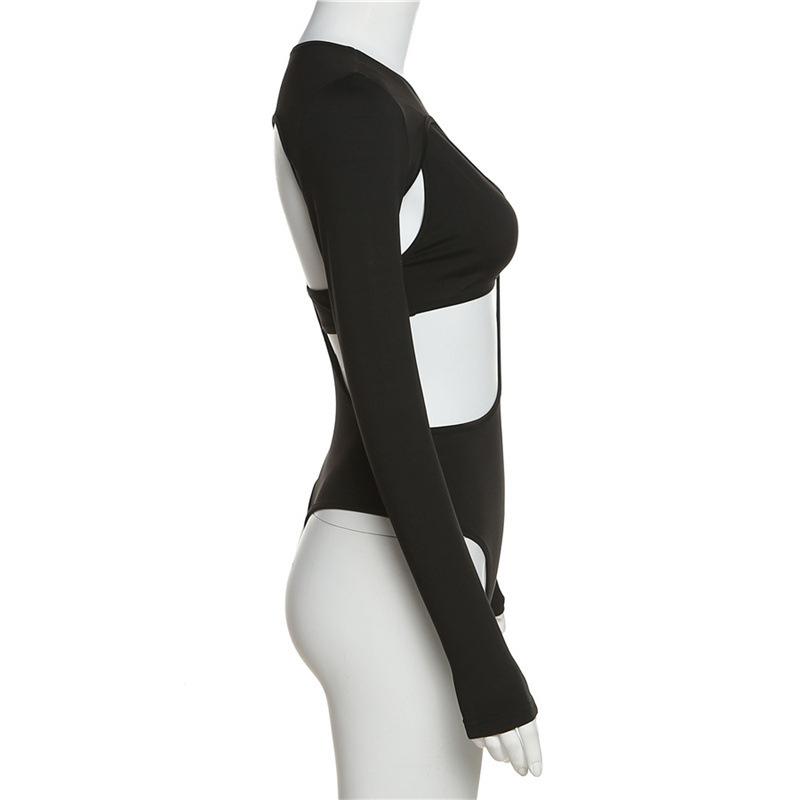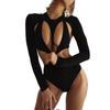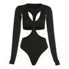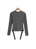 Estilo europeo y americano 2023 primavera nuevo diseño de moda para mujer sexy sin espalda cuello redondo manga larga camiseta ajustada ropa exterior para mujer
