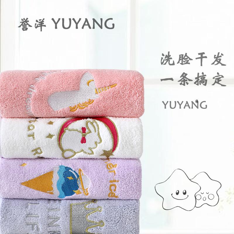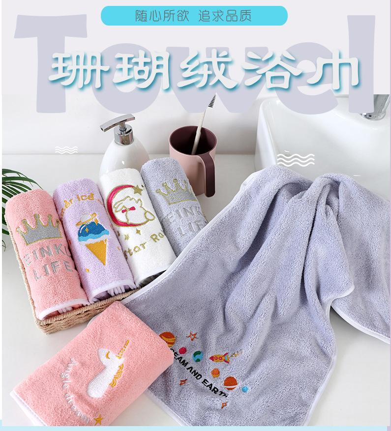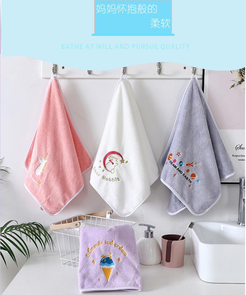 Toalla infantil de forro polar coral, toalla facial para el hogar, pareja de dibujos animados, suave, absorbente, borde bordado, venta al por mayor