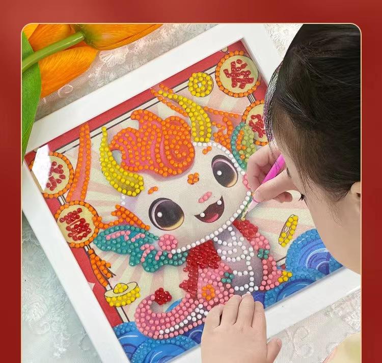 Pintura de diamantes DIY hecha a mano para niños, pintura de diamantes de dibujos animados Kulomi, pintura de pasta de diamantes con punta de diamante completa con marco, venta al por mayor
