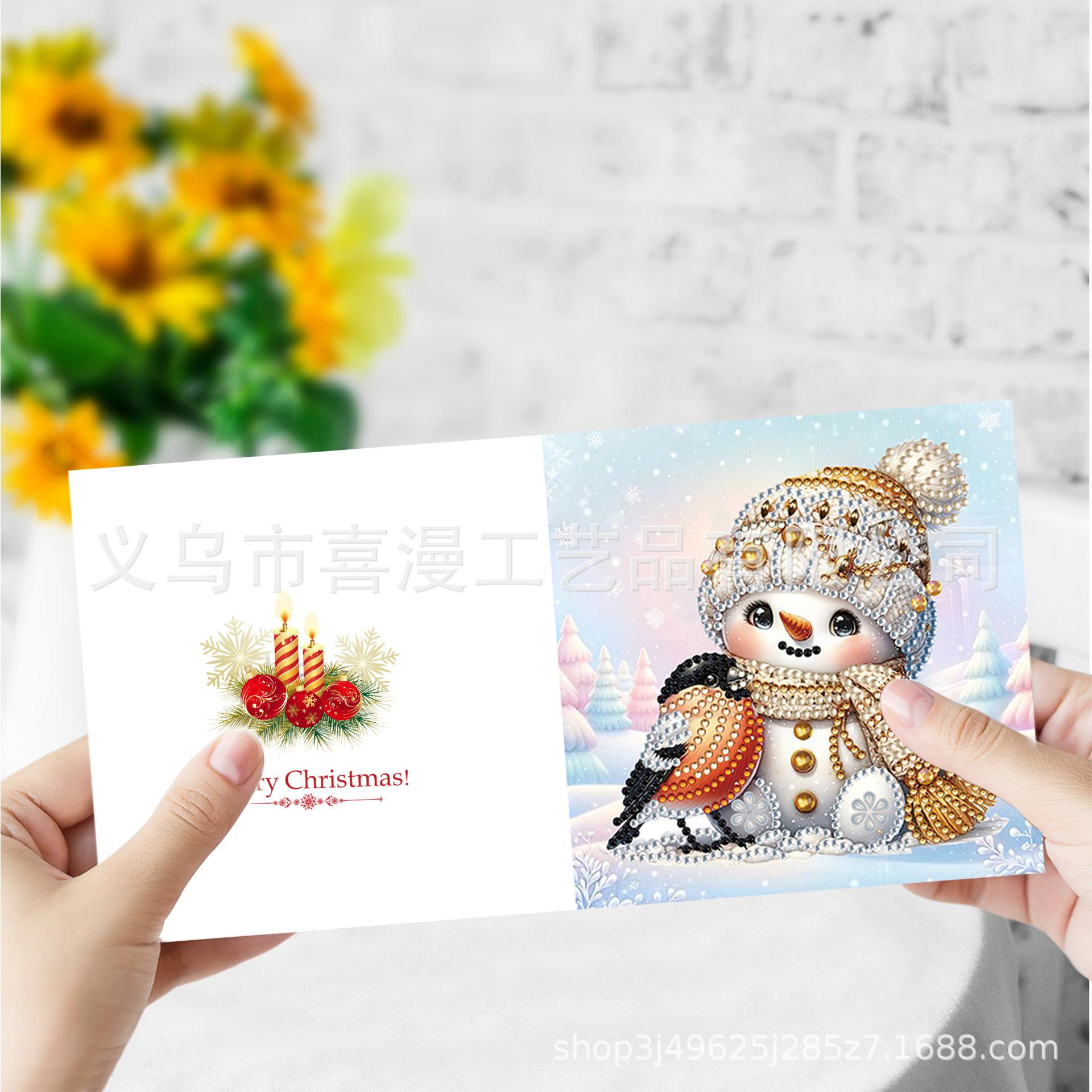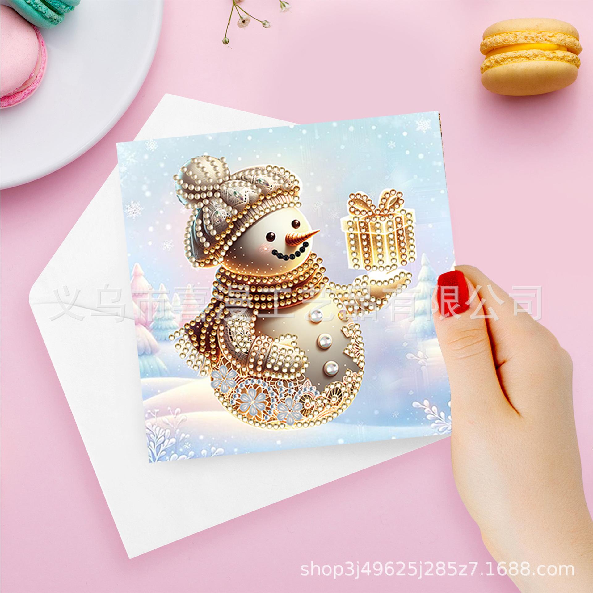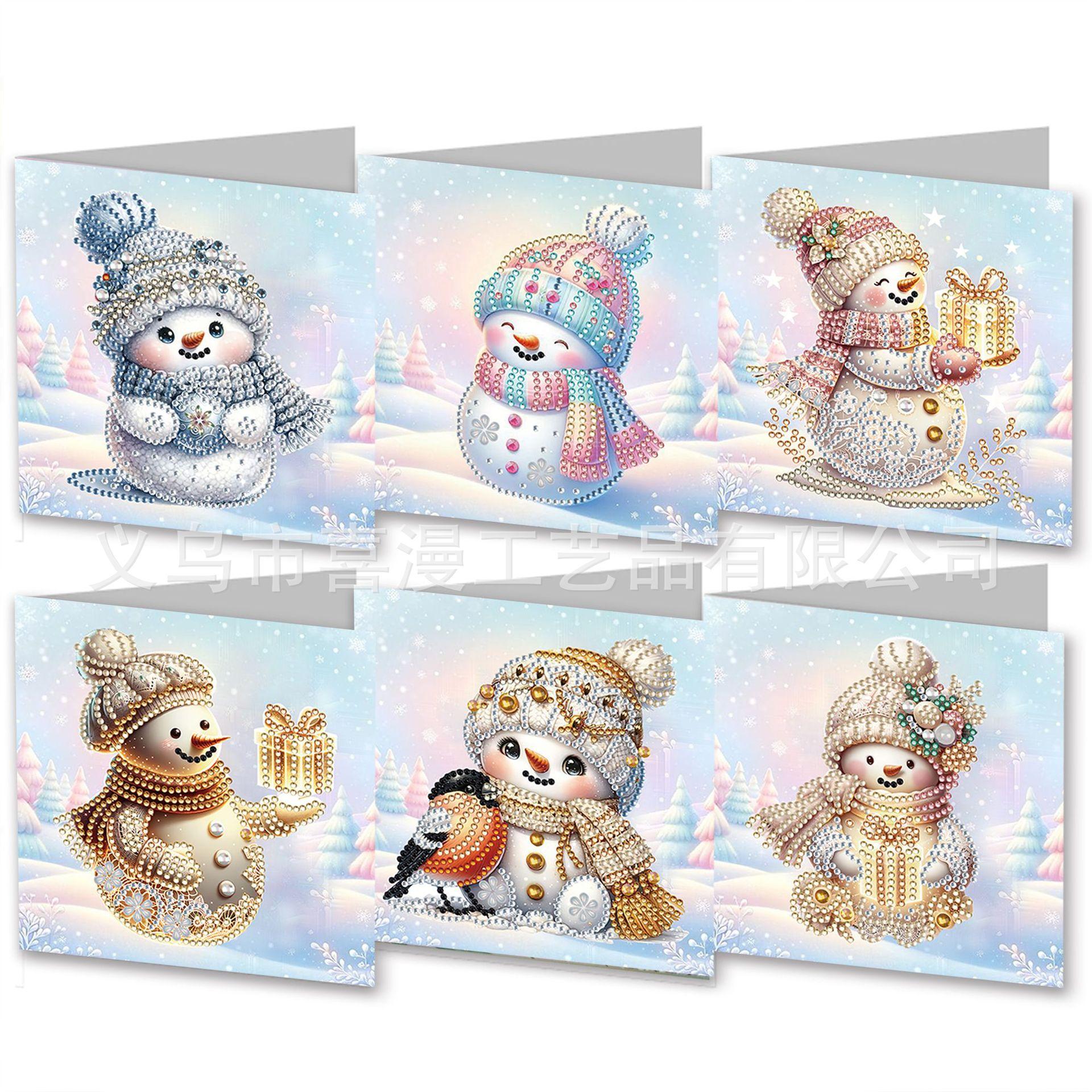 6 Piezas Pintura de Diamantes Muñeco de Nieve Transfronterizo Serie Navideña Tarjeta de Felicitación Bendición Festiva Creativa DIY Pegatinas Hechas a Mano con Forma Especial