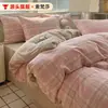 Juego de cama sencillo de algodón puro lavado de algodón, juego de cuatro piezas, 100% algodón, funda de edredón, cama de dormitorio, sábana bajera individual, ropa de cama de tres piezas 4