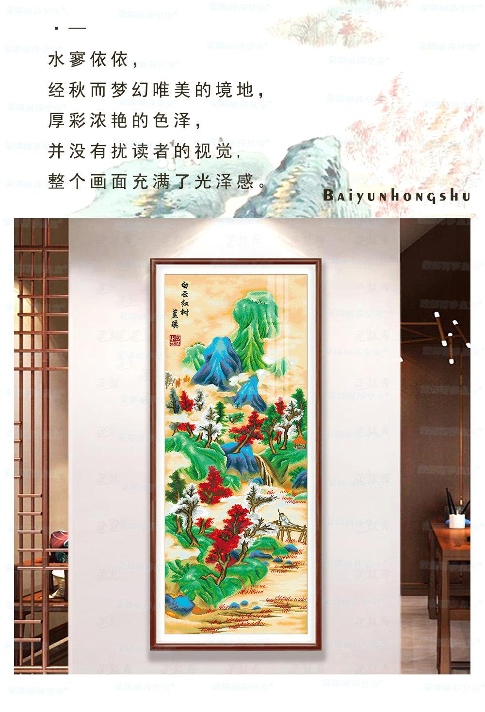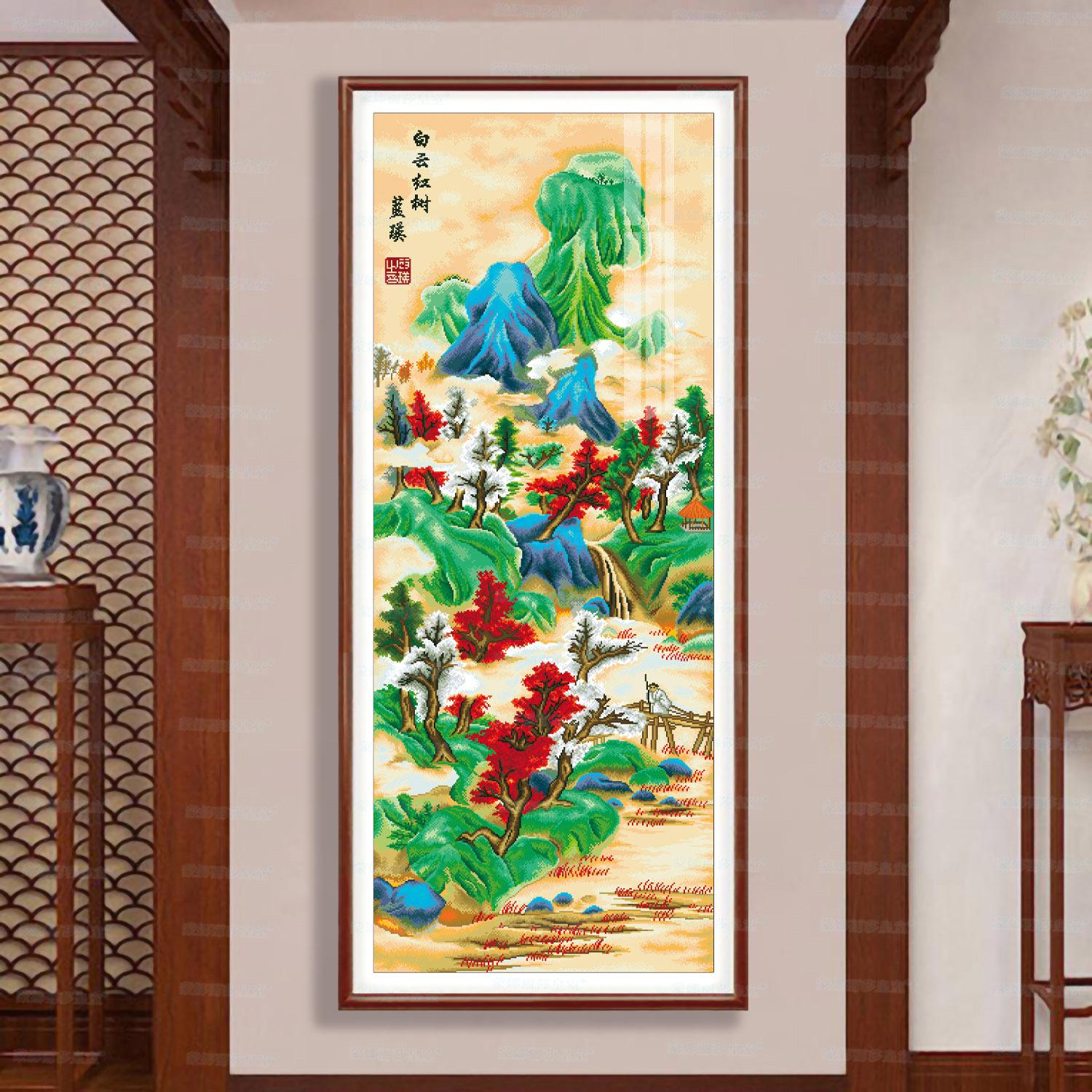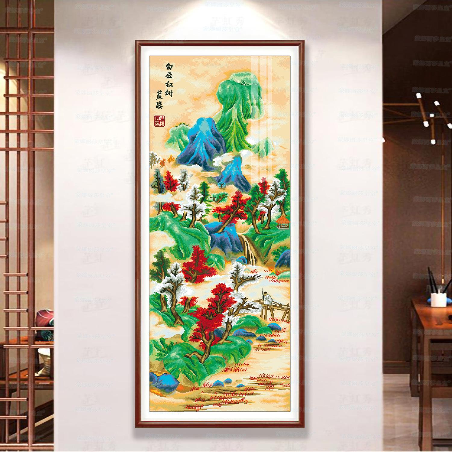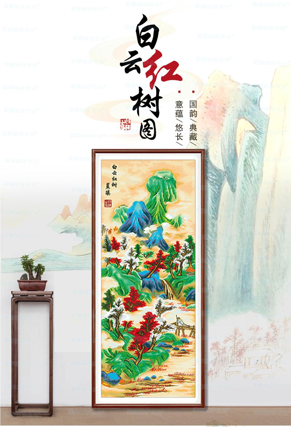 Monalisa Royal punto de cruz Nube Blanca Árbol Rojo Atmosférico Sala de estar Decoración de paisaje Bordado de hilo chino hecho a mano