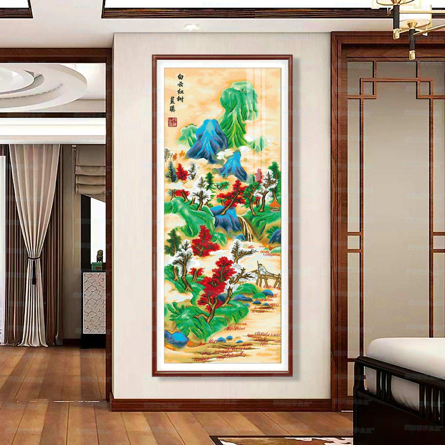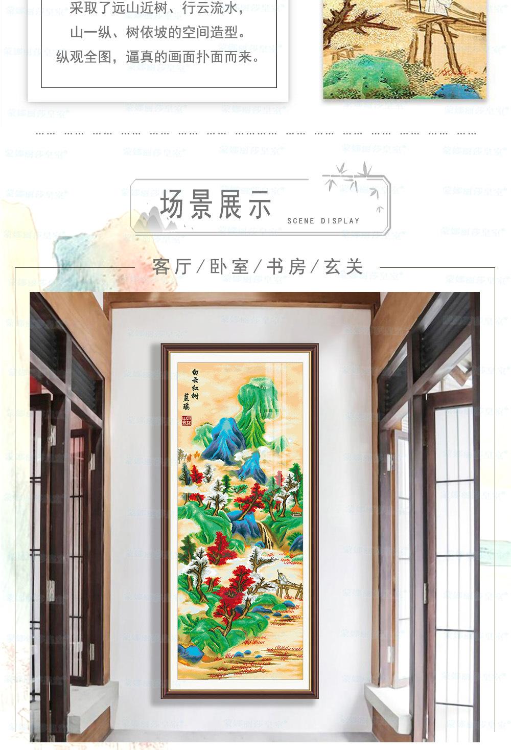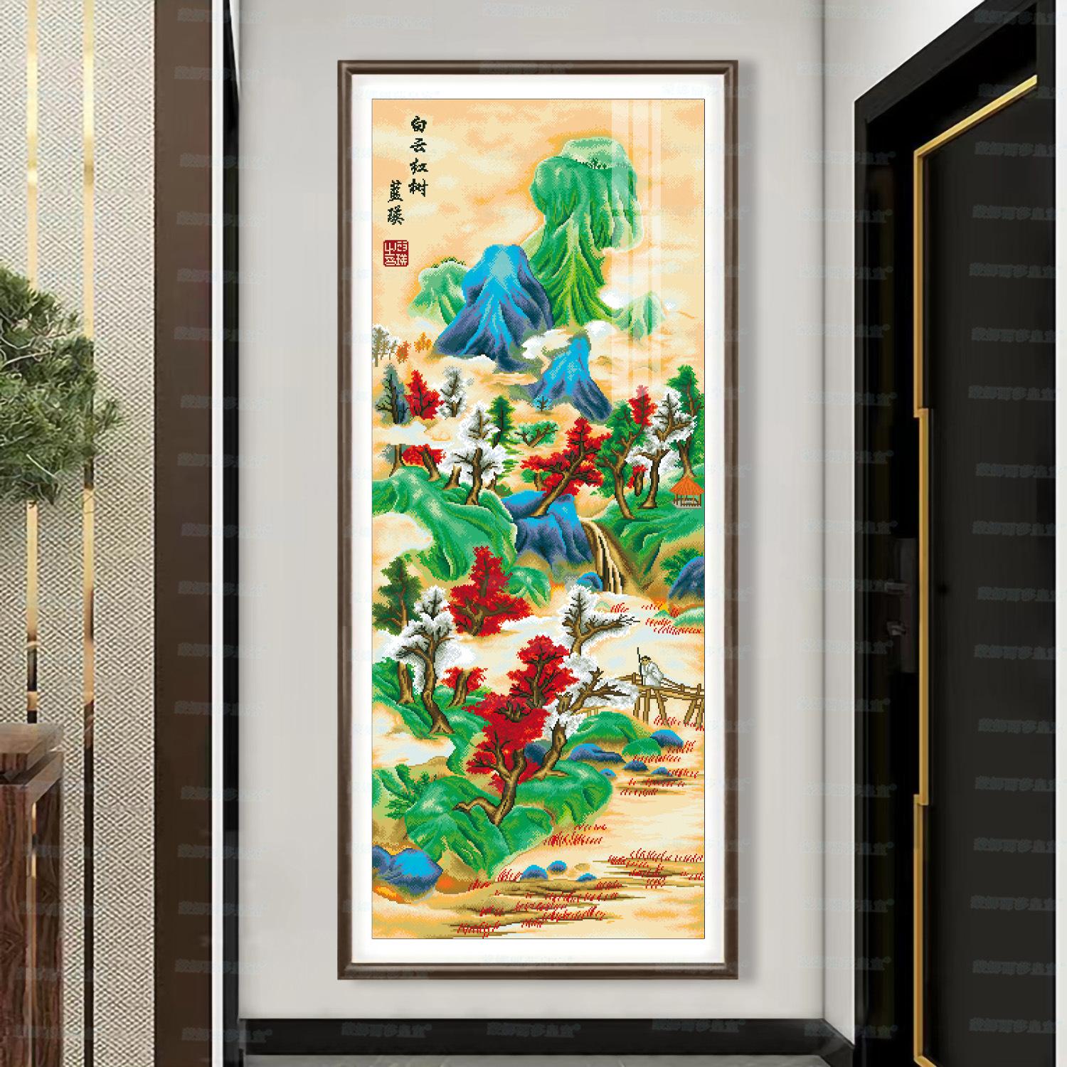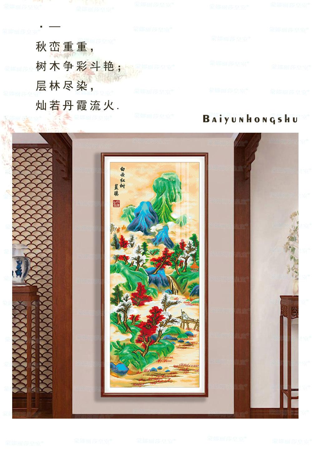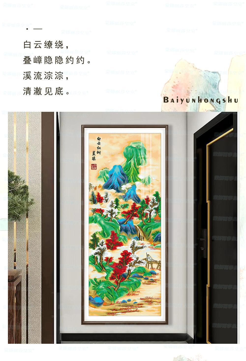 Monalisa Royal punto de cruz Nube Blanca Árbol Rojo Atmosférico Sala de estar Decoración de paisaje Bordado de hilo chino hecho a mano