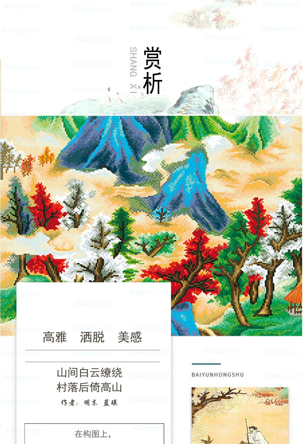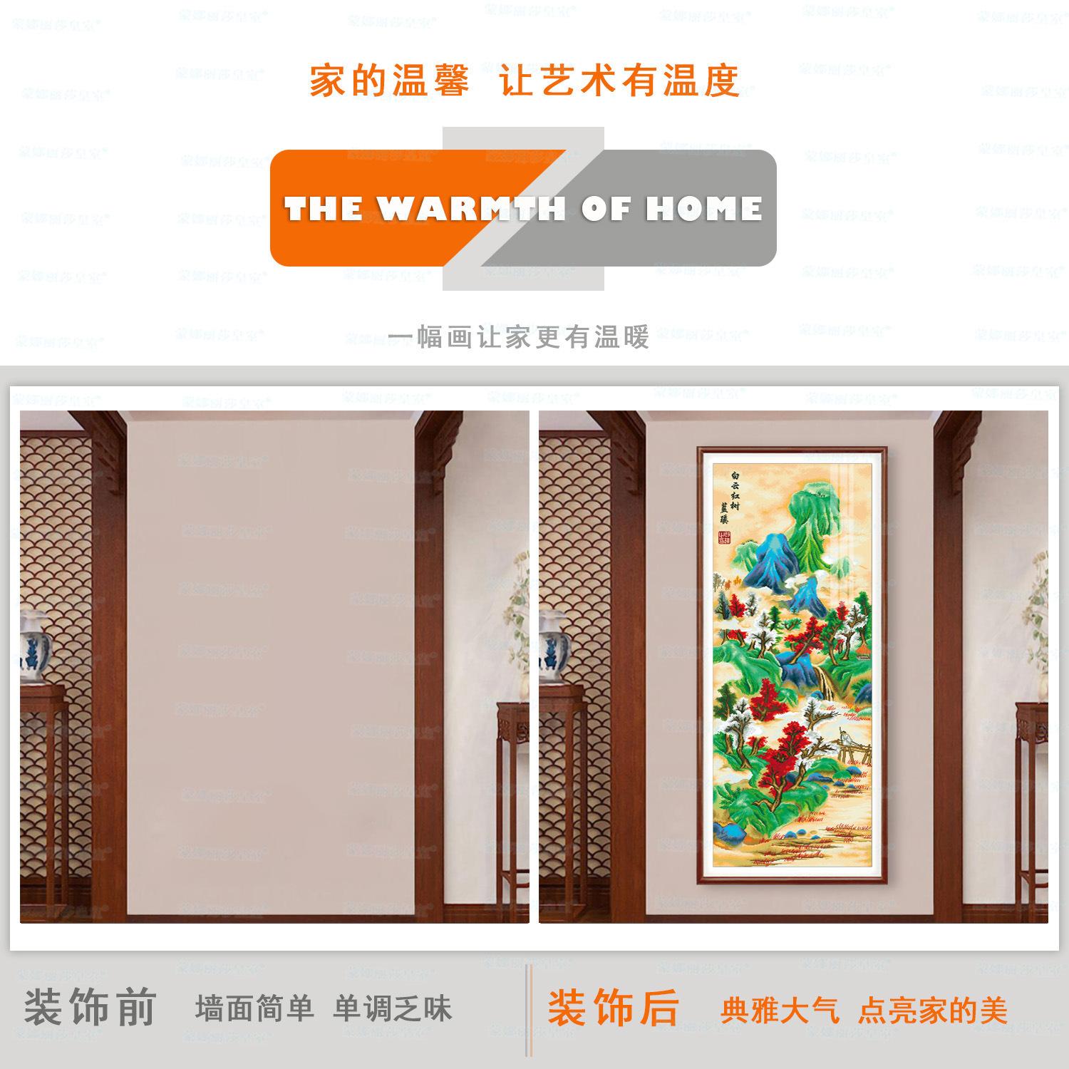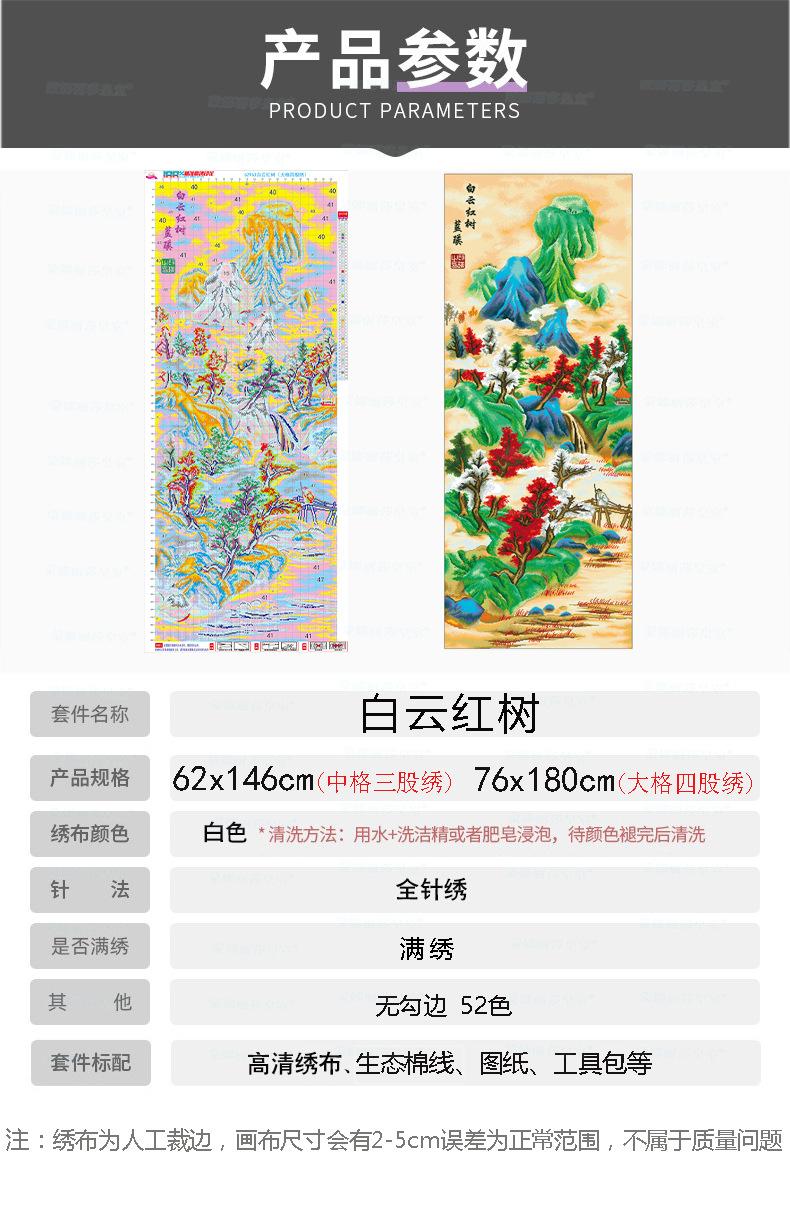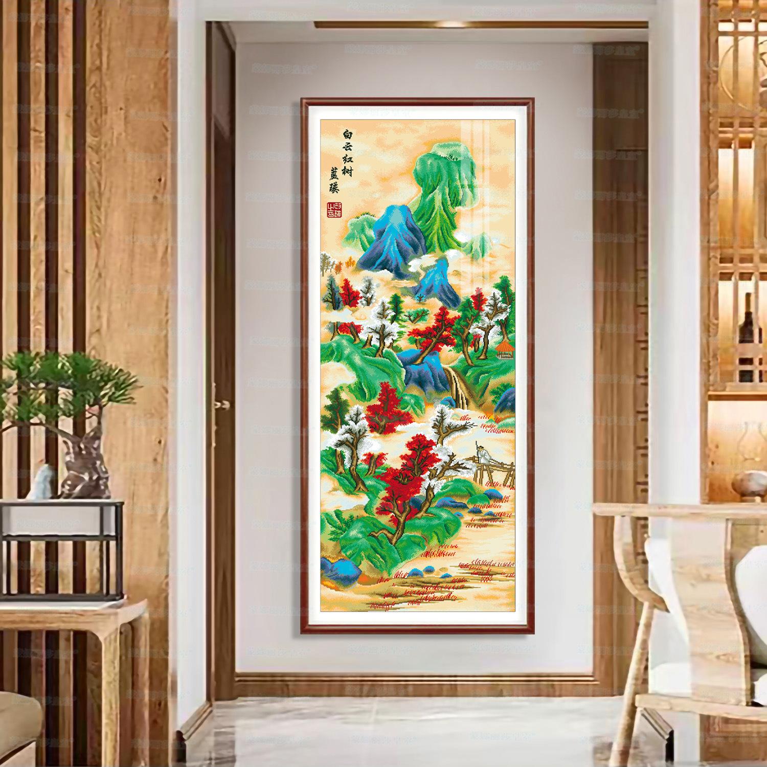 Monalisa Royal punto de cruz Nube Blanca Árbol Rojo Atmosférico Sala de estar Decoración de paisaje Bordado de hilo chino hecho a mano