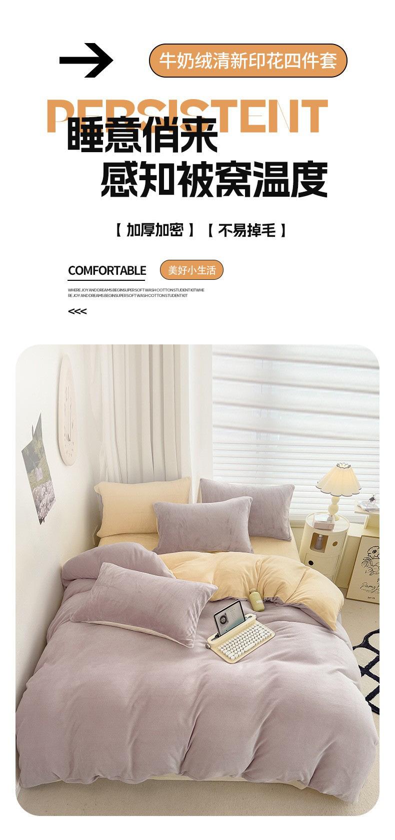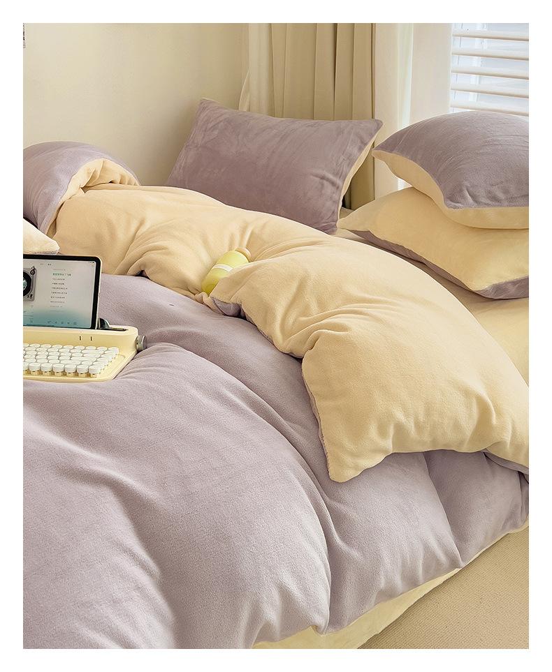 Juego de cama de invierno de terciopelo de leche de cuatro piezas, franela de terciopelo de doble cara, funda de edredón gruesa de terciopelo coral, sábana para dormitorio, juego de tres piezas