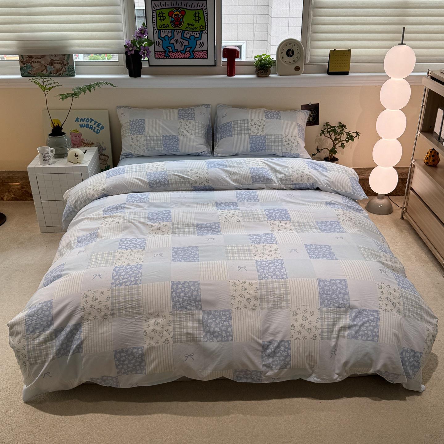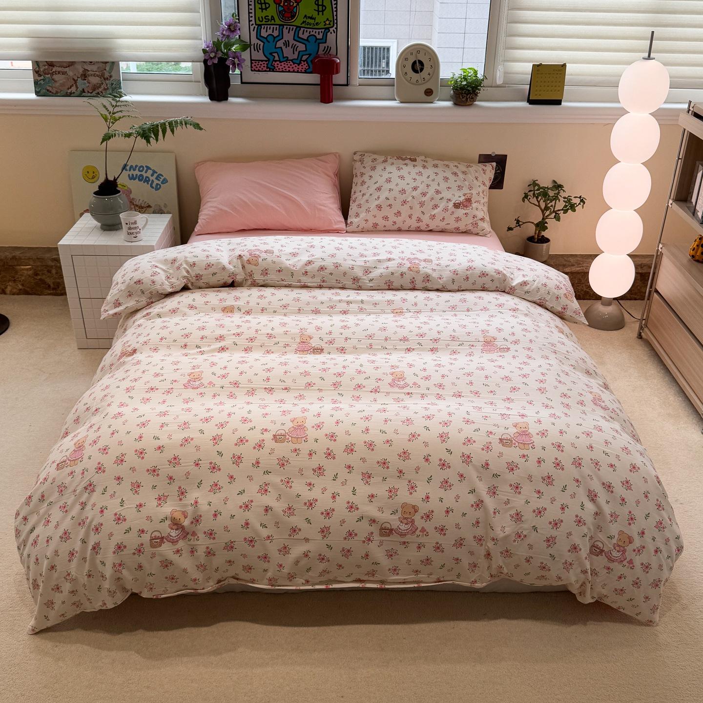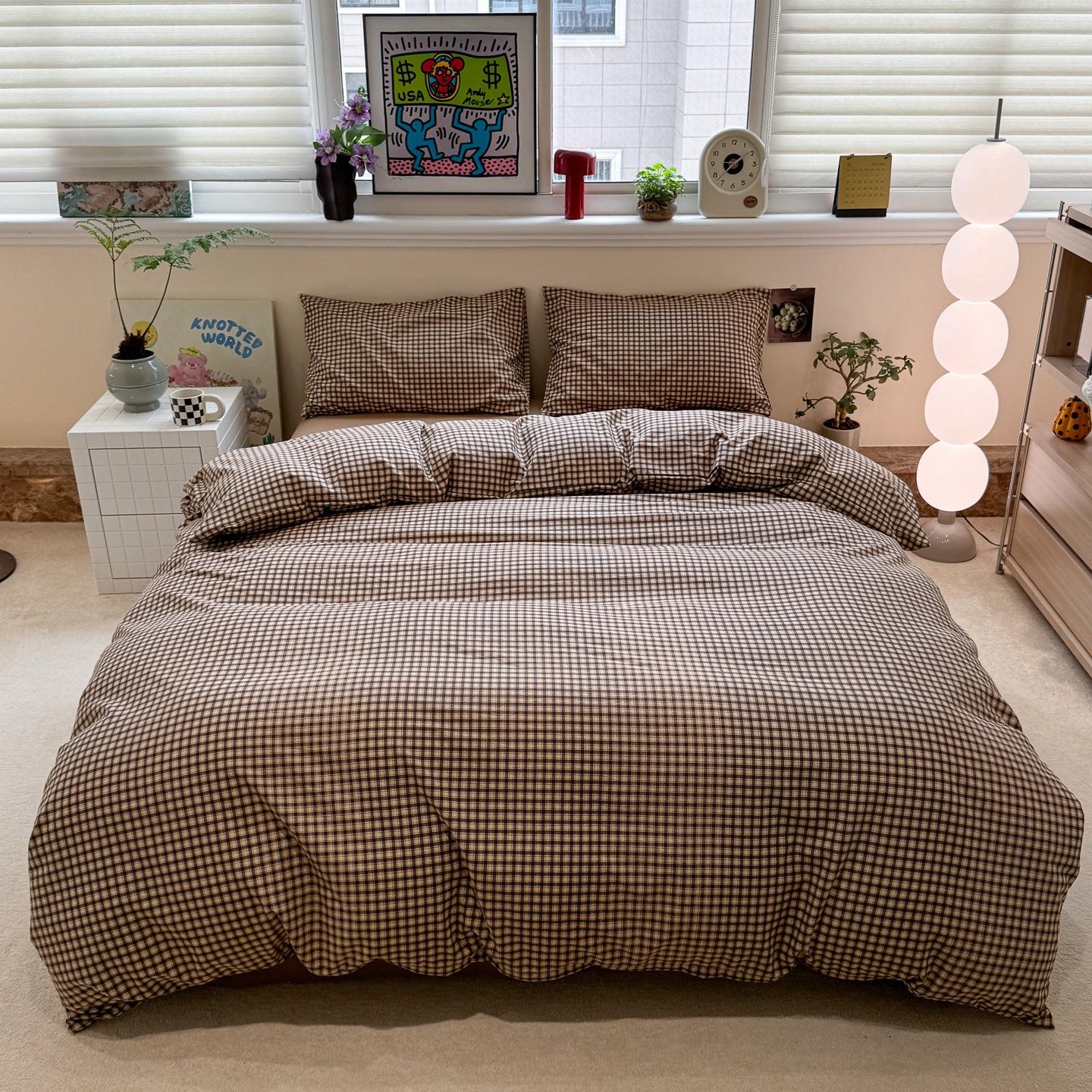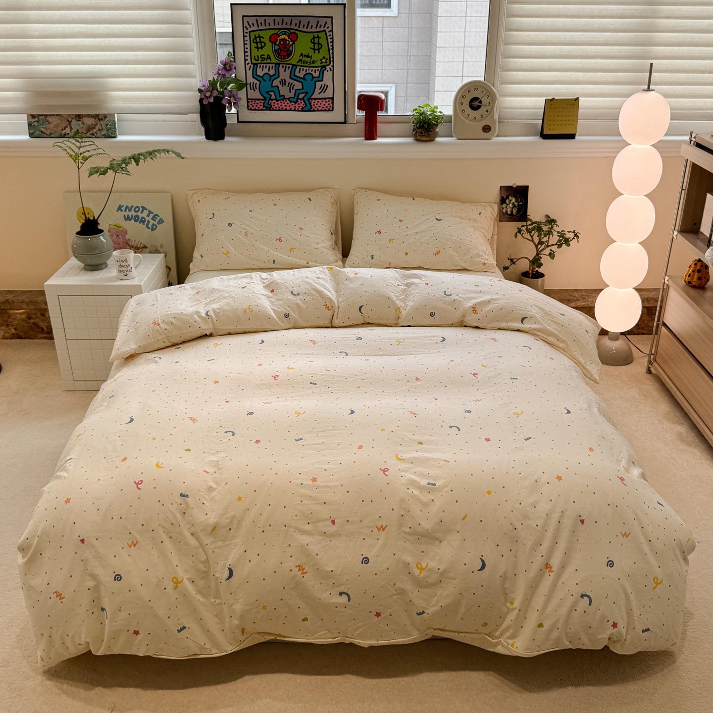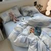 Categoría a Grado Materno e Infantil Algodón Lavado Juego de Cuatro Piezas para Cama Sábanas Ajustables Simples Estilo Ins Juego de Tres Piezas para Dormitorio Ropa de Cama Bolsa de Cama Lote