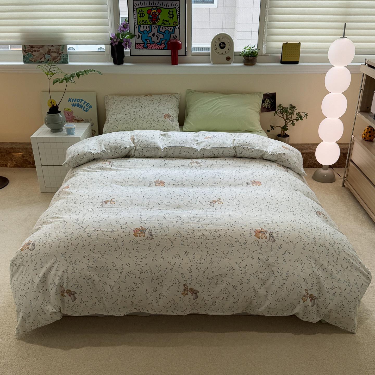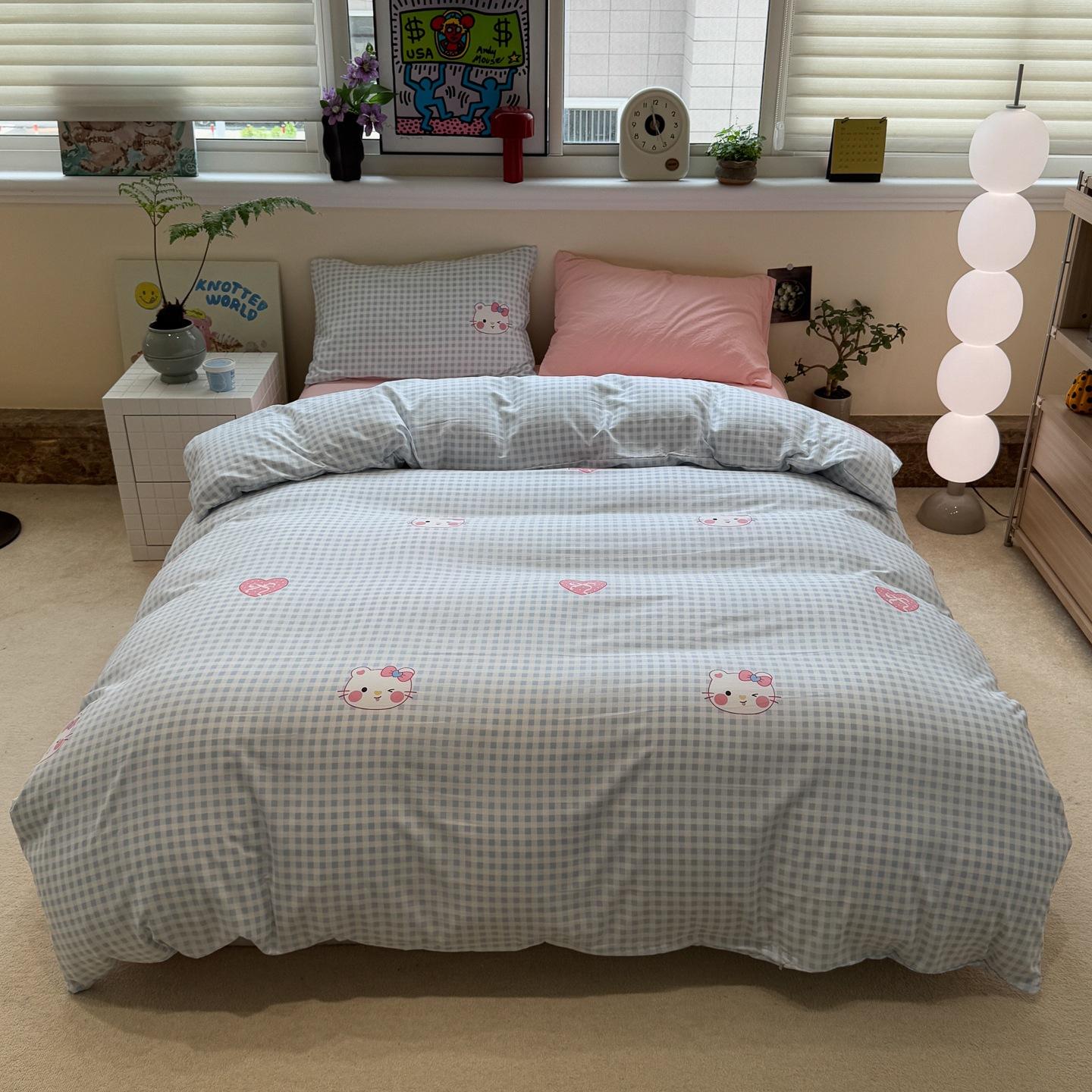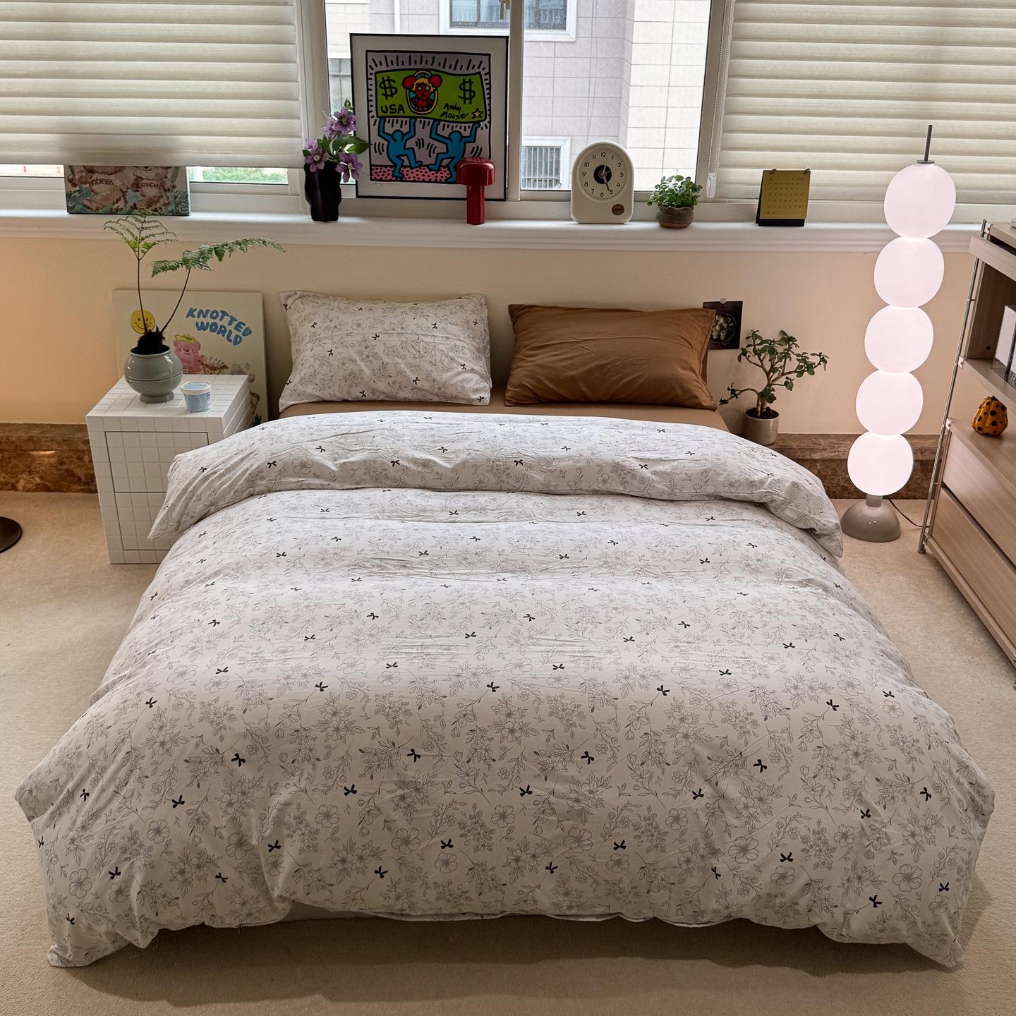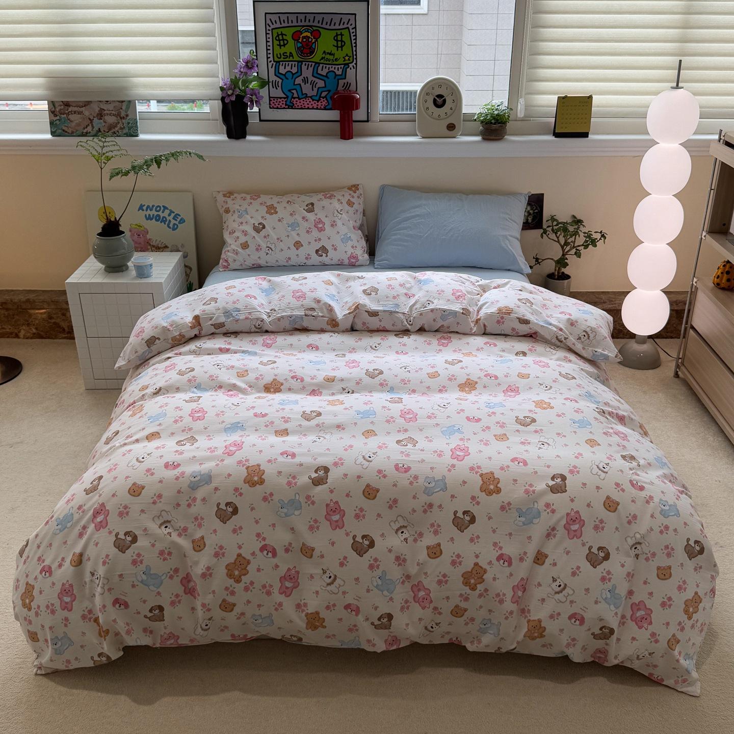 Categoría a Grado Materno e Infantil Algodón Lavado Juego de Cuatro Piezas para Cama Sábanas Ajustables Simples Estilo Ins Juego de Tres Piezas para Dormitorio Ropa de Cama Bolsa de Cama Lote