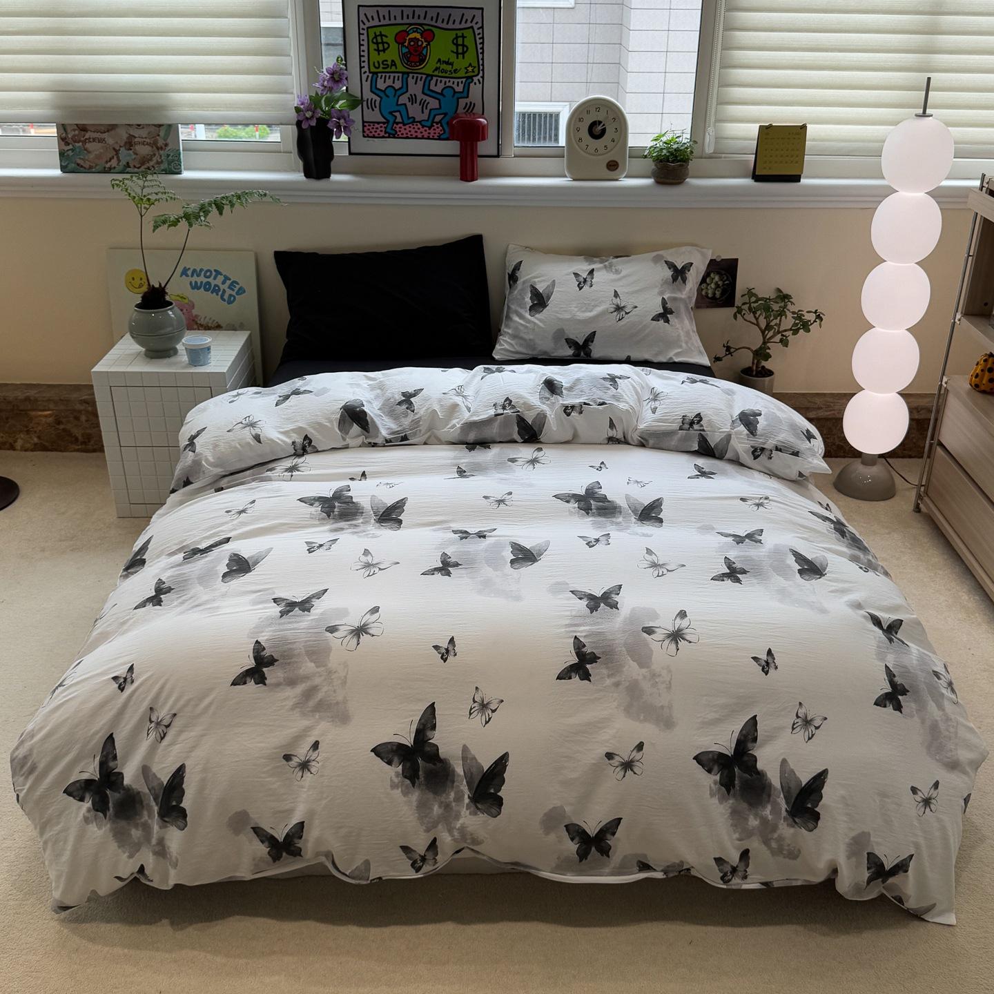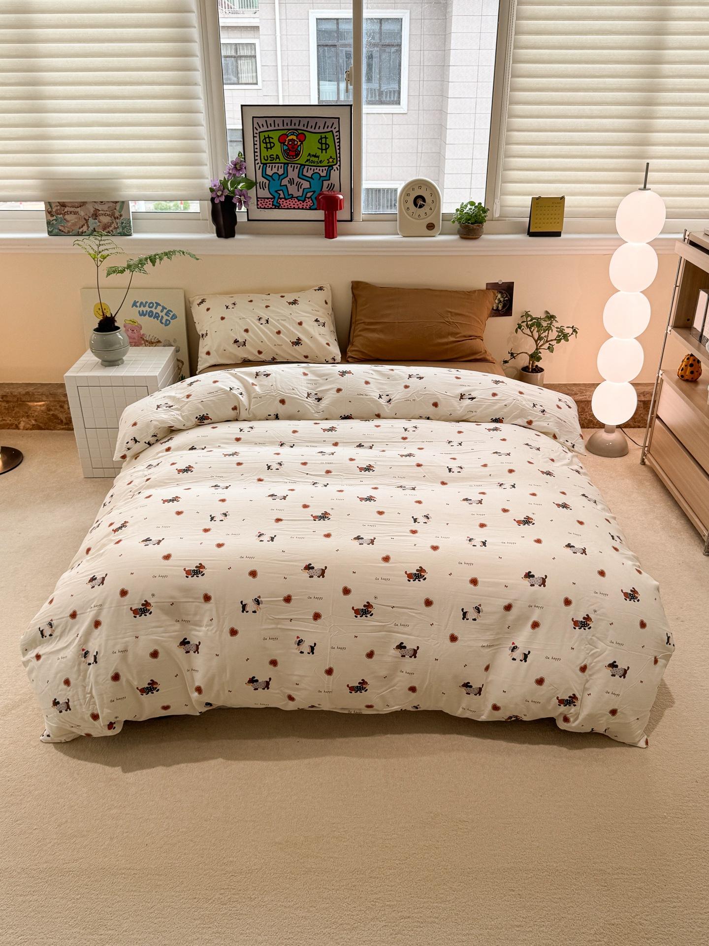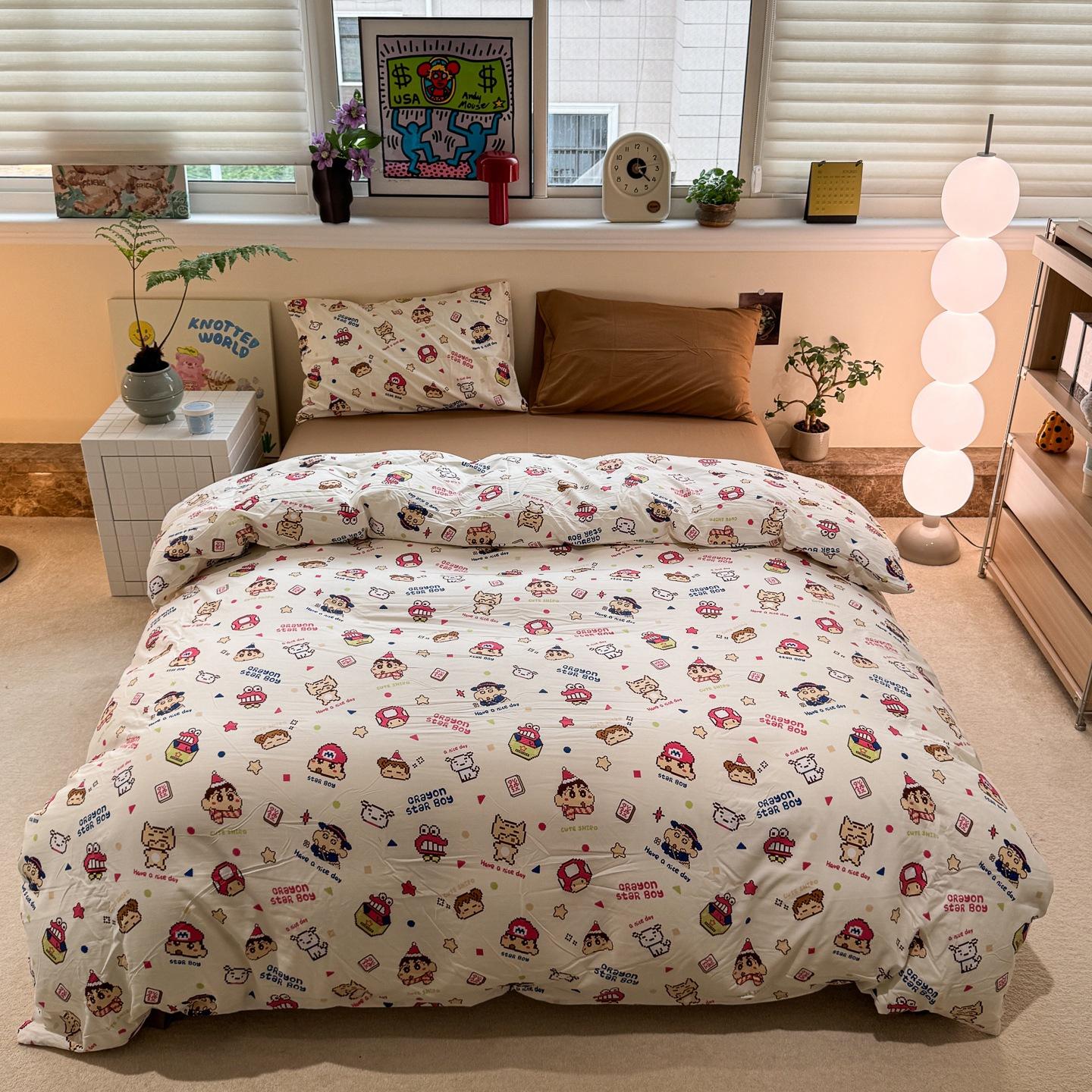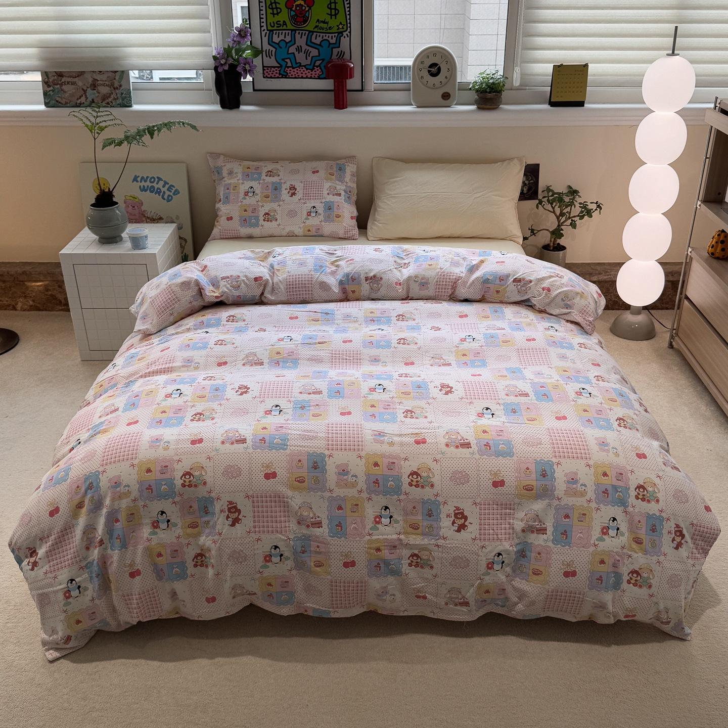 Categoría a Grado Materno e Infantil Algodón Lavado Juego de Cuatro Piezas para Cama Sábanas Ajustables Simples Estilo Ins Juego de Tres Piezas para Dormitorio Ropa de Cama Bolsa de Cama Lote
