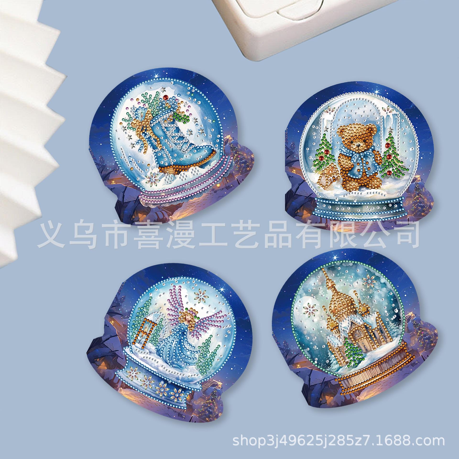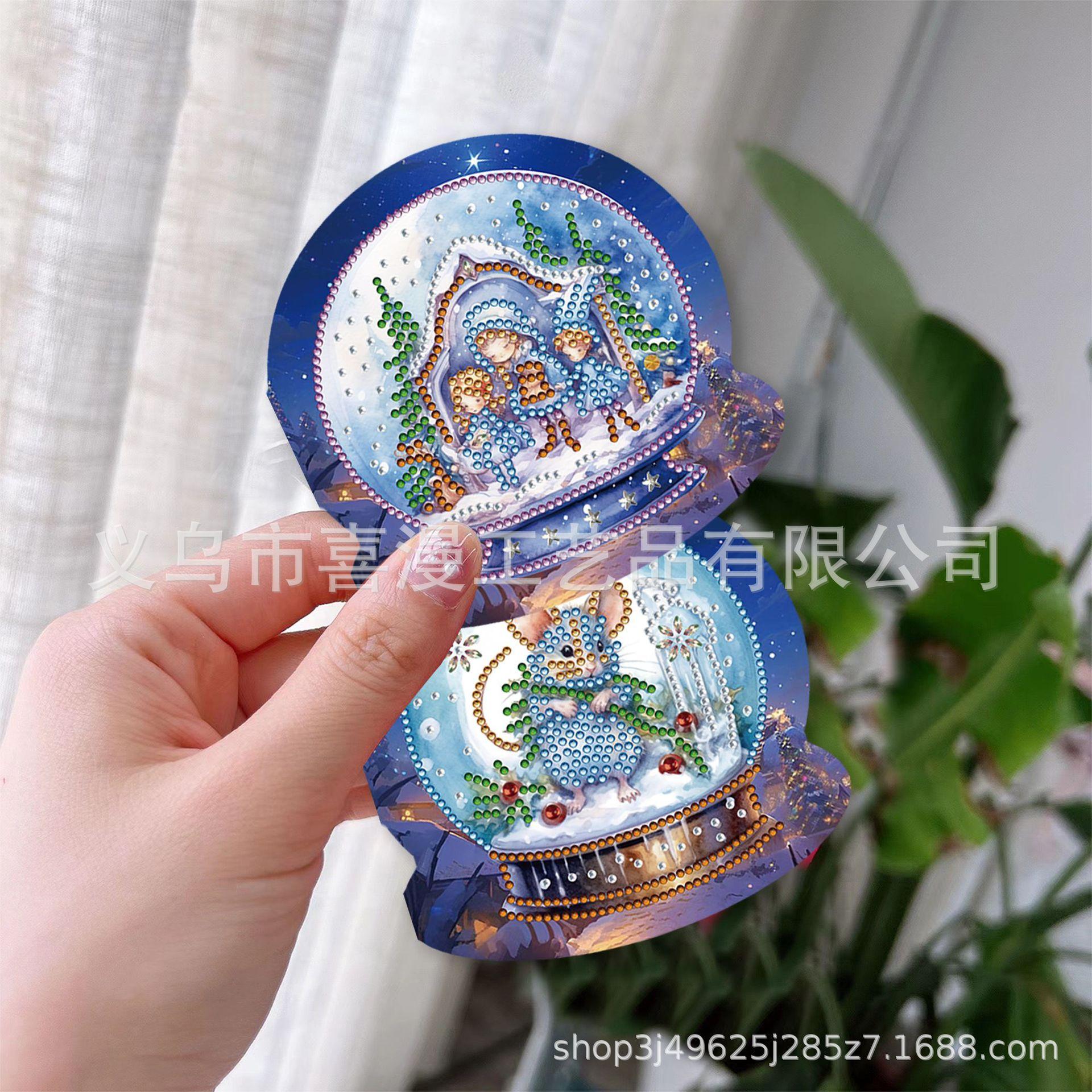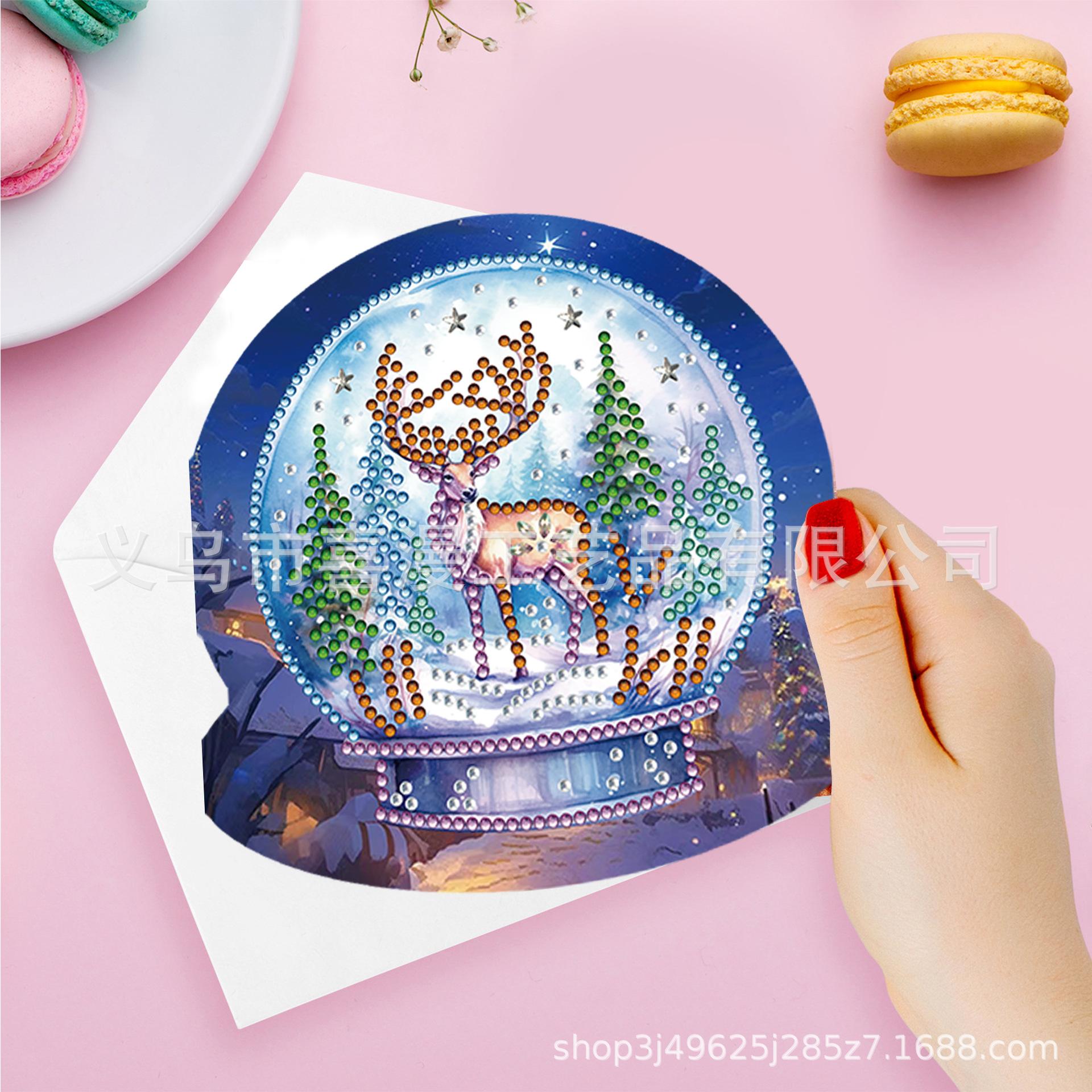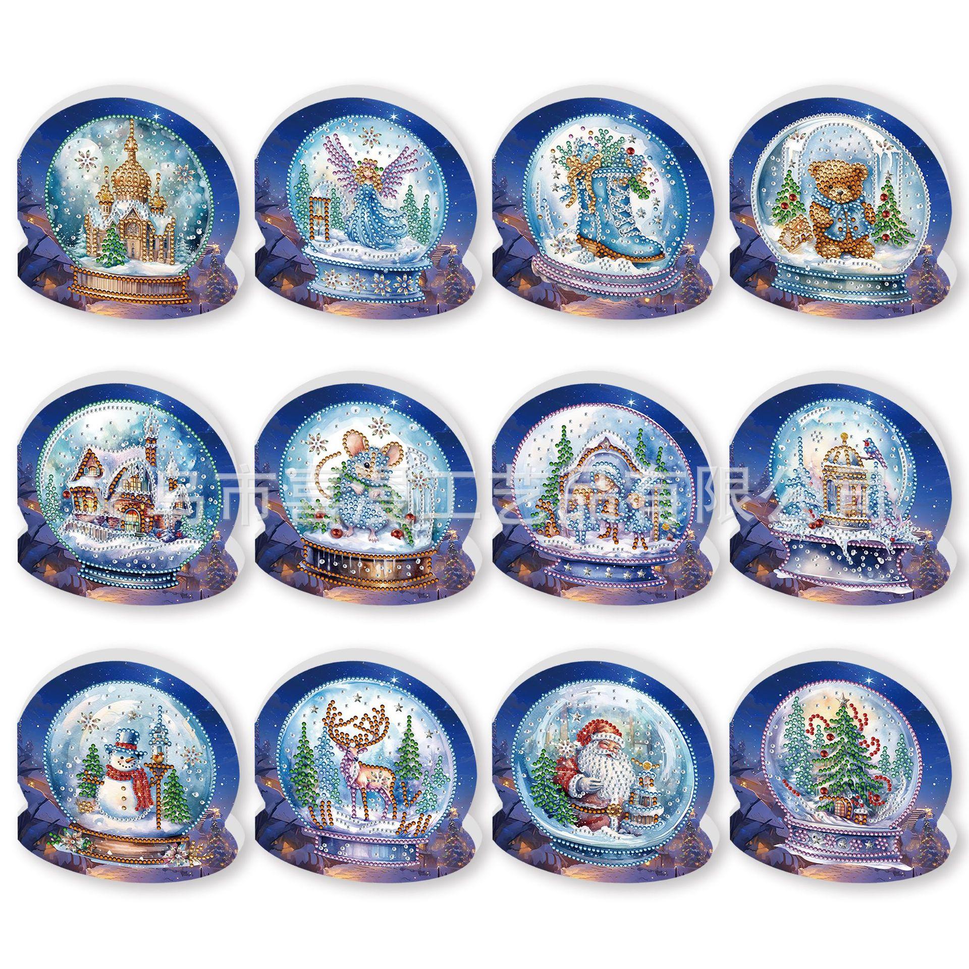 12 Piezas Serie Creativa Navideña Transfronteriza Estilo Bola de Cristal Tarjeta de Felicitación Pintura de Diamantes DIY Pegatinas Alienígenas Hechas a Mano