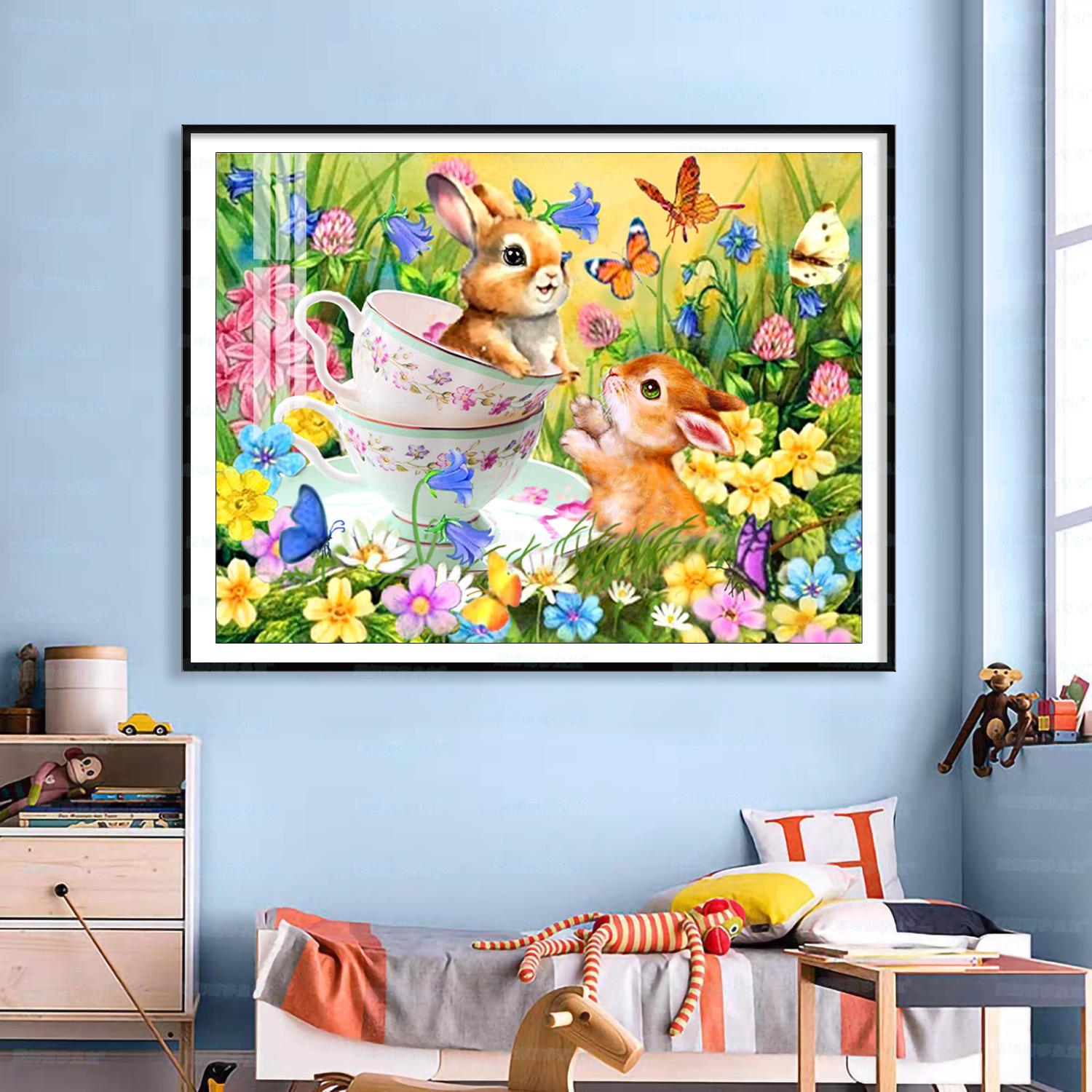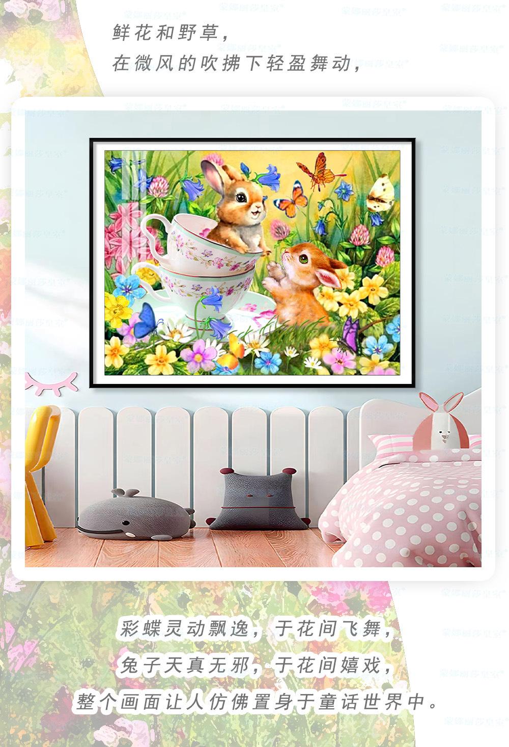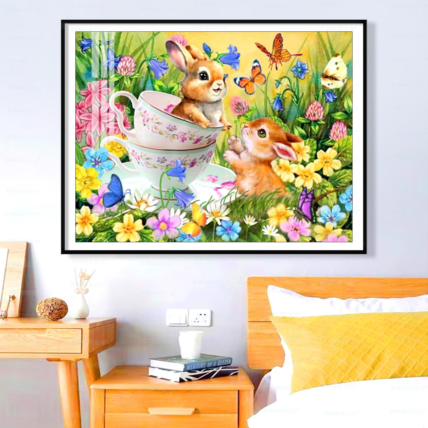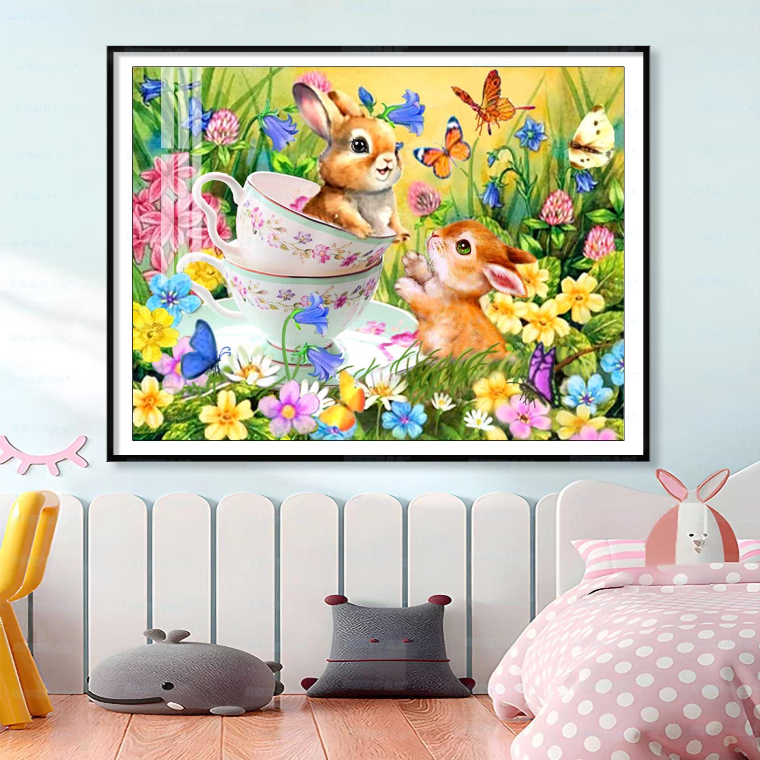 Monalisa Royal - Juego de punto de cruz con diseño de conejo y taza de té (2024), bordado de hilo hecho a mano, simple y bonito, serie curativa