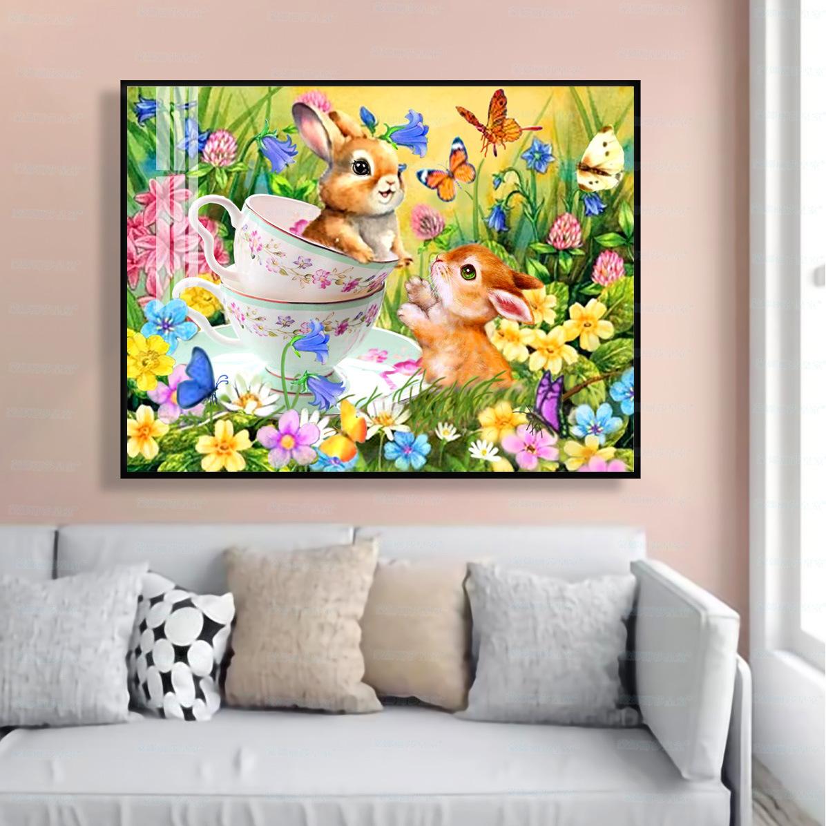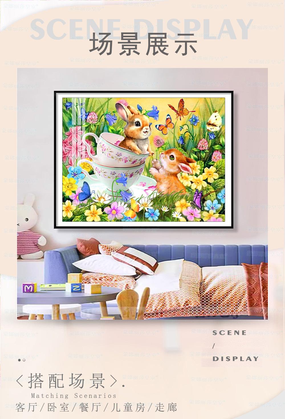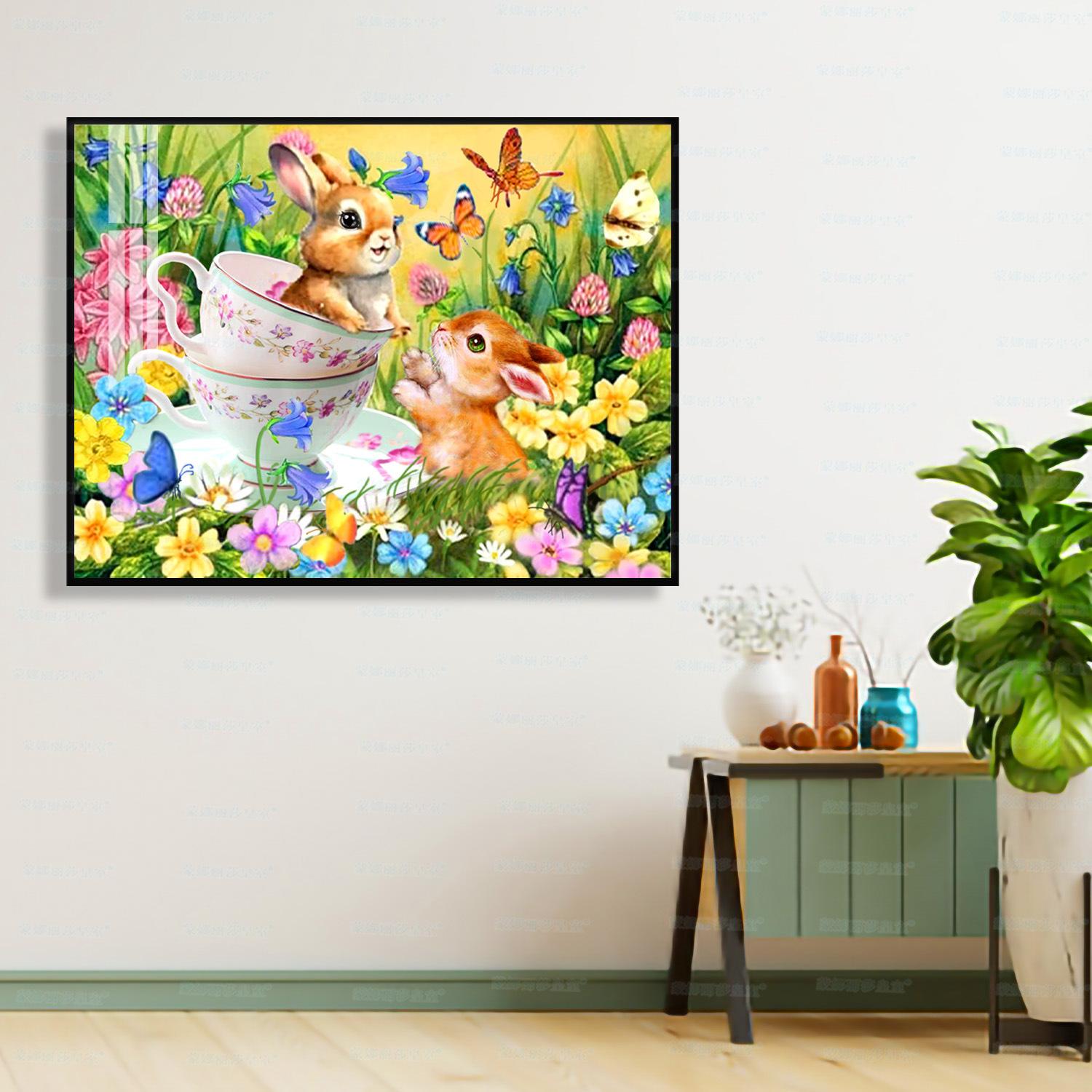 Monalisa Royal - Juego de punto de cruz con diseño de conejo y taza de té (2024), bordado de hilo hecho a mano, simple y bonito, serie curativa