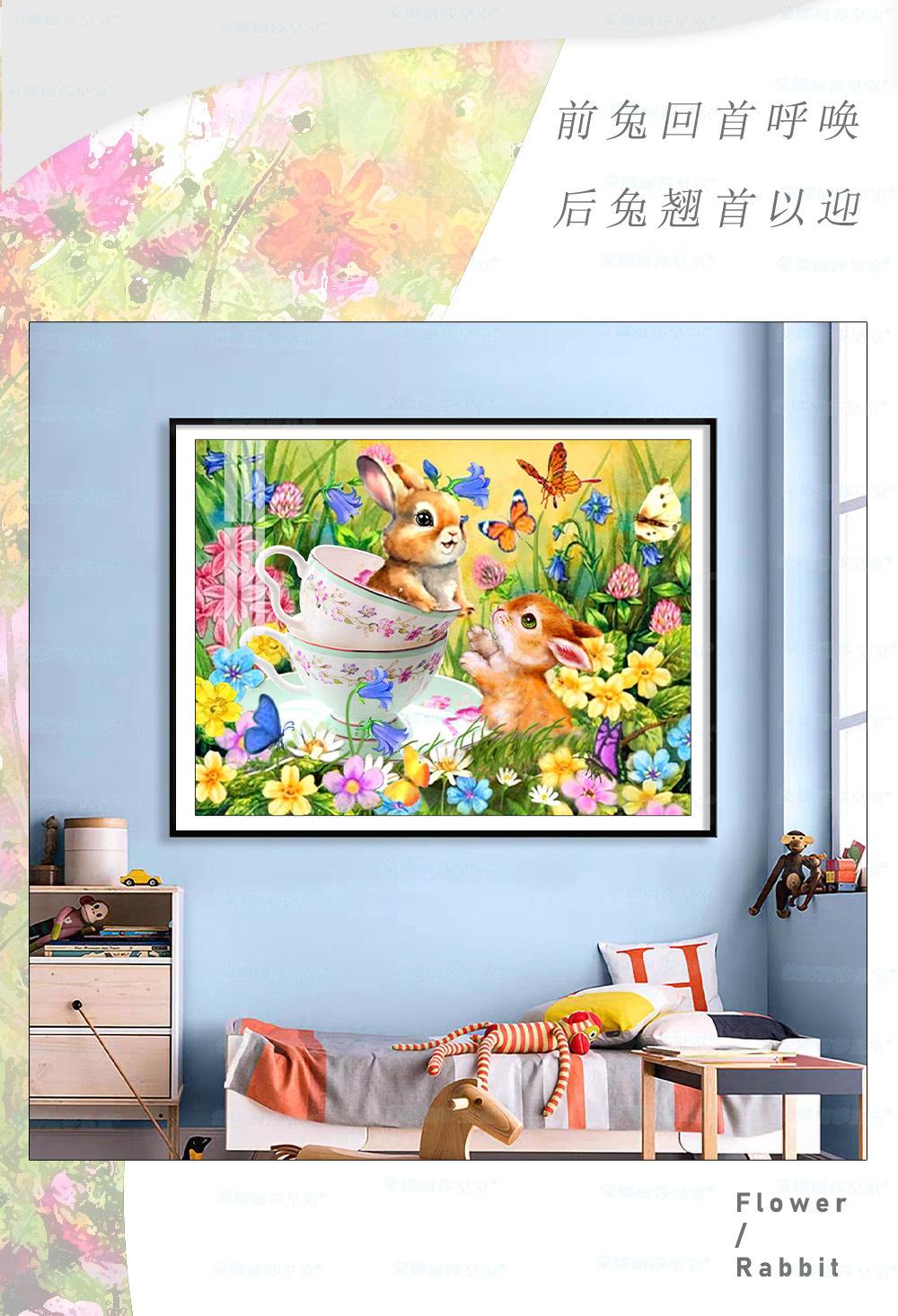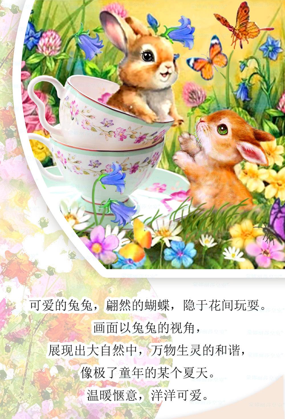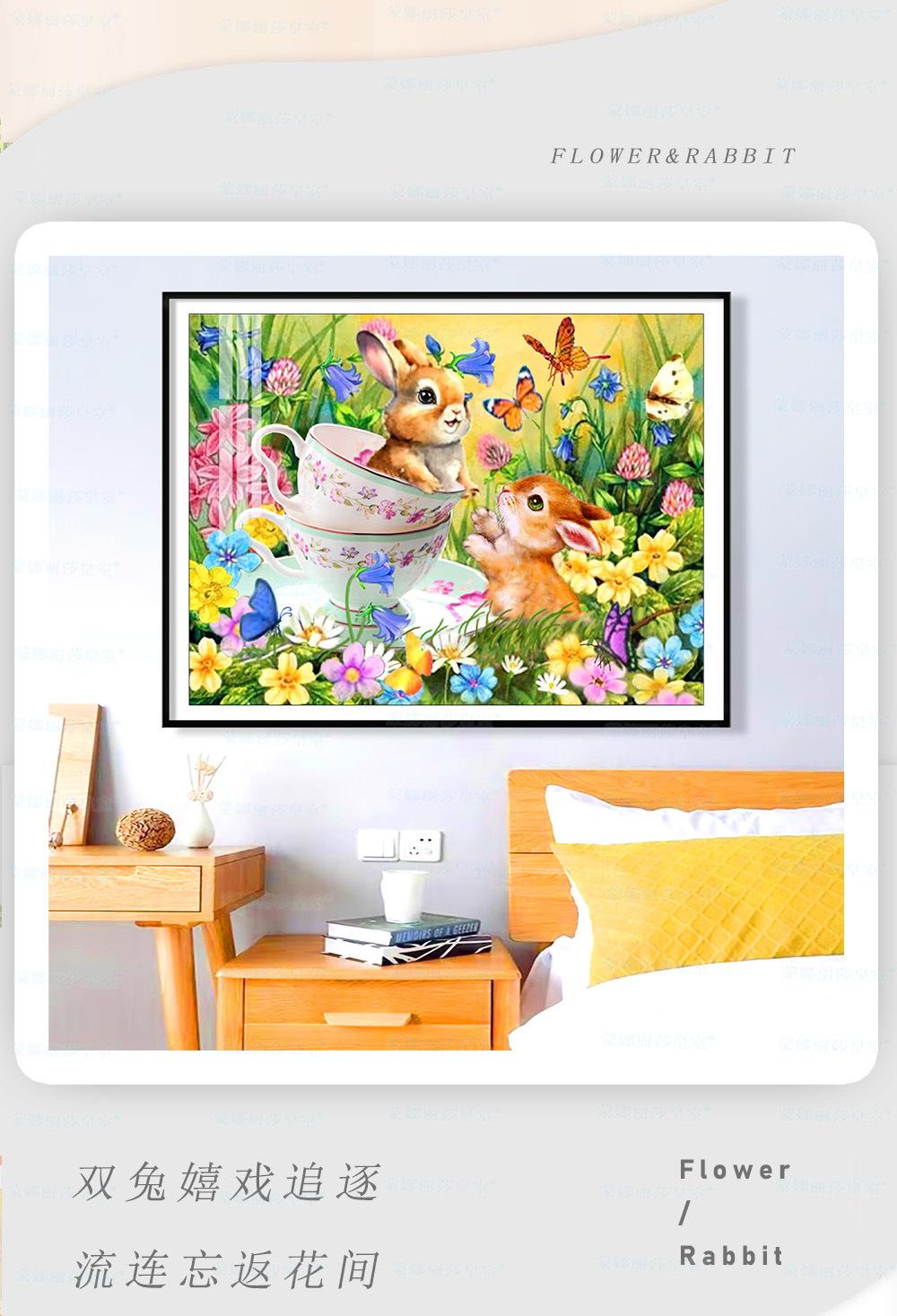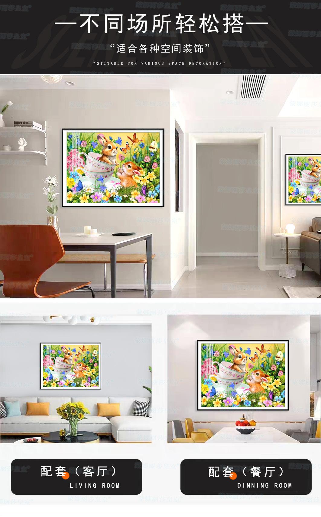 Monalisa Royal - Juego de punto de cruz con diseño de conejo y taza de té (2024), bordado de hilo hecho a mano, simple y bonito, serie curativa